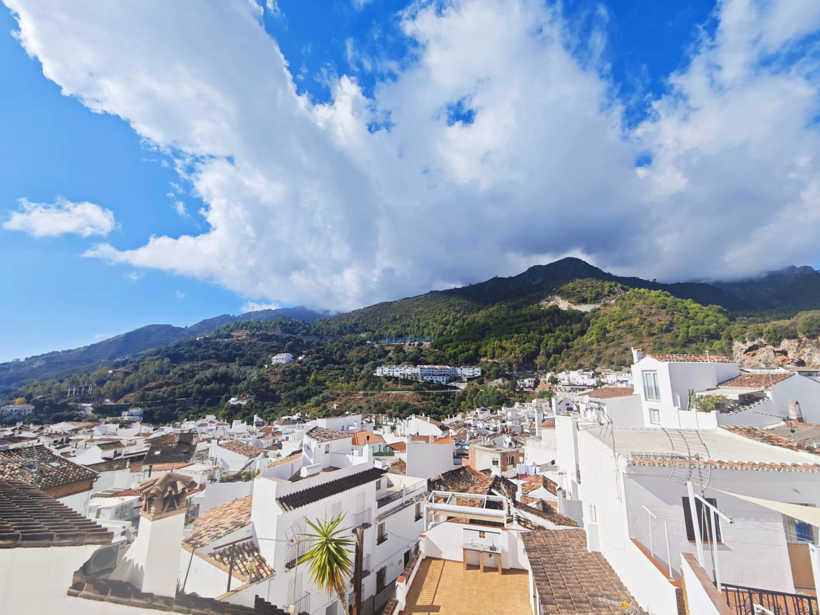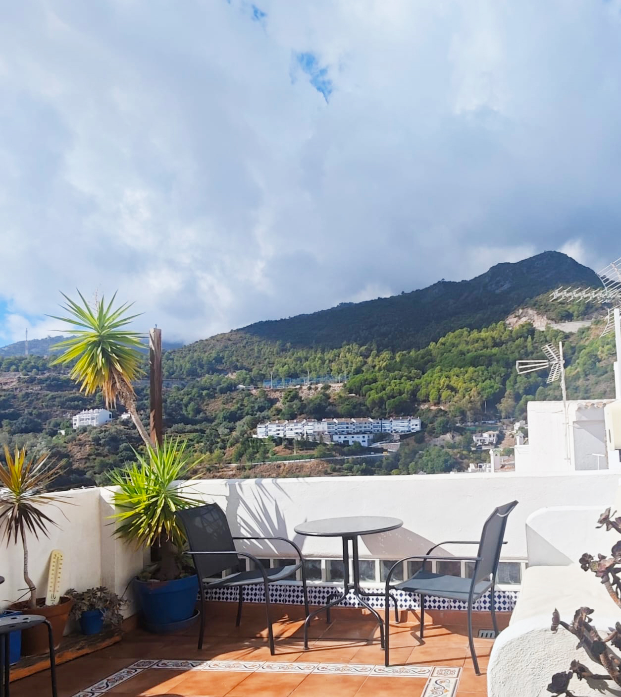Vivimos en el hermoso pueblo de montaña de Ojén, a solo 15 minutos de Marbella. Esta es la verdadera España donde la gente vive una vida normal, los lugareños son amables y acogedores. La casa parece pequeña desde su estrecha calle, pero se convierte en una gran casa de 4 plantas. La casa es bastante peculiar después de que la renovamos, colocando habitaciones en espacios que se sentían bien, de una manera más bien convencional. Hay un dormitorio en el pasillo y la cocina está en el segundo piso que conduce a un pequeño atrio donde tenemos un jacuzzi. Sobre el Atrio tengo una pequeña área de pintura si hay algún artista por ahí. Tenemos 2 terrazas en la azotea, una que conduce al dormitorio principal y otra que se extiende por la parte superior de la casa. Hay una cocina exterior y unas vistas impresionantes sobre los tejados hasta el mar. Somos de Gales y hemos vivido aquí durante más de 20 años.