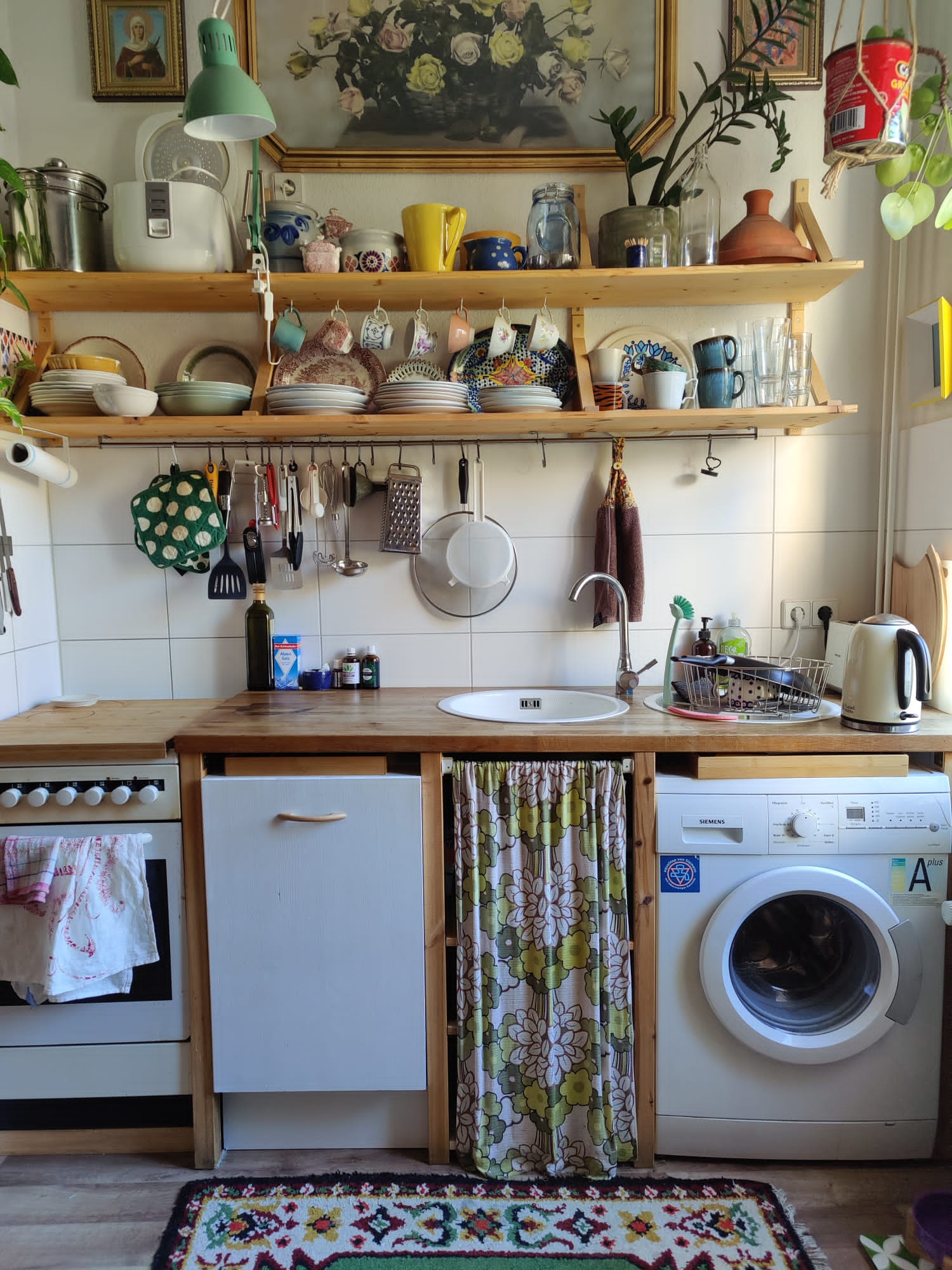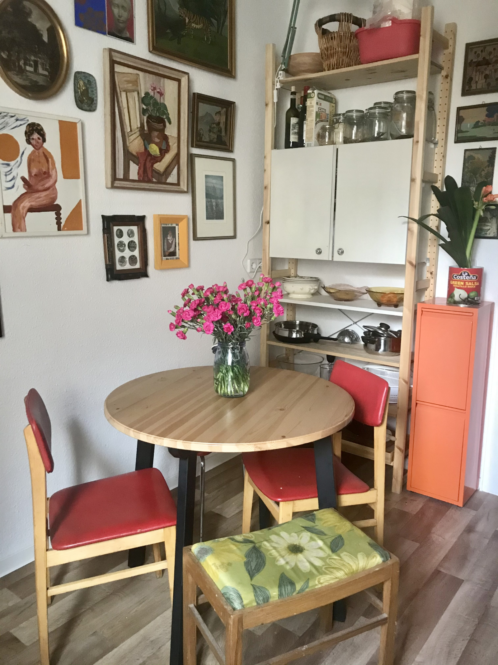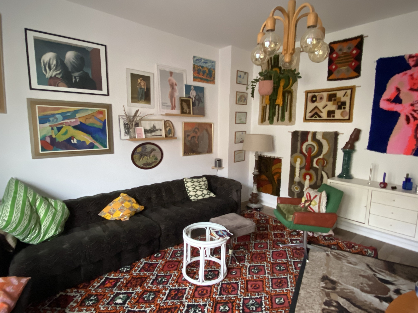 El apartamento está decorado eclécticamente con muebles vintage y una increíble selección de obras de arte y plantas que hemos coleccionado a lo largo de los años. Nuestra casa tiene un ambiente colorido y acogedor que los visitantes siempre comentan con alegría :) El balcón da a nuestra encantadora y vibrante calle con sus lindos cafés y pequeños cines independientes a solo unos pasos.