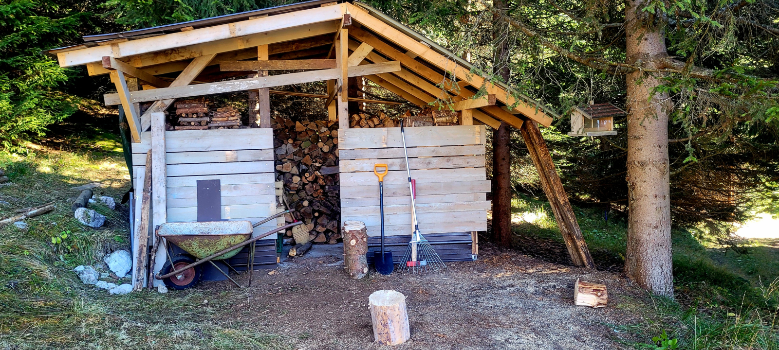 Puede estacionar su automóvil al final del camino forestal, justo debajo del cobertizo de madera; desde allí, solo hay unos pasos hasta la cabaña.