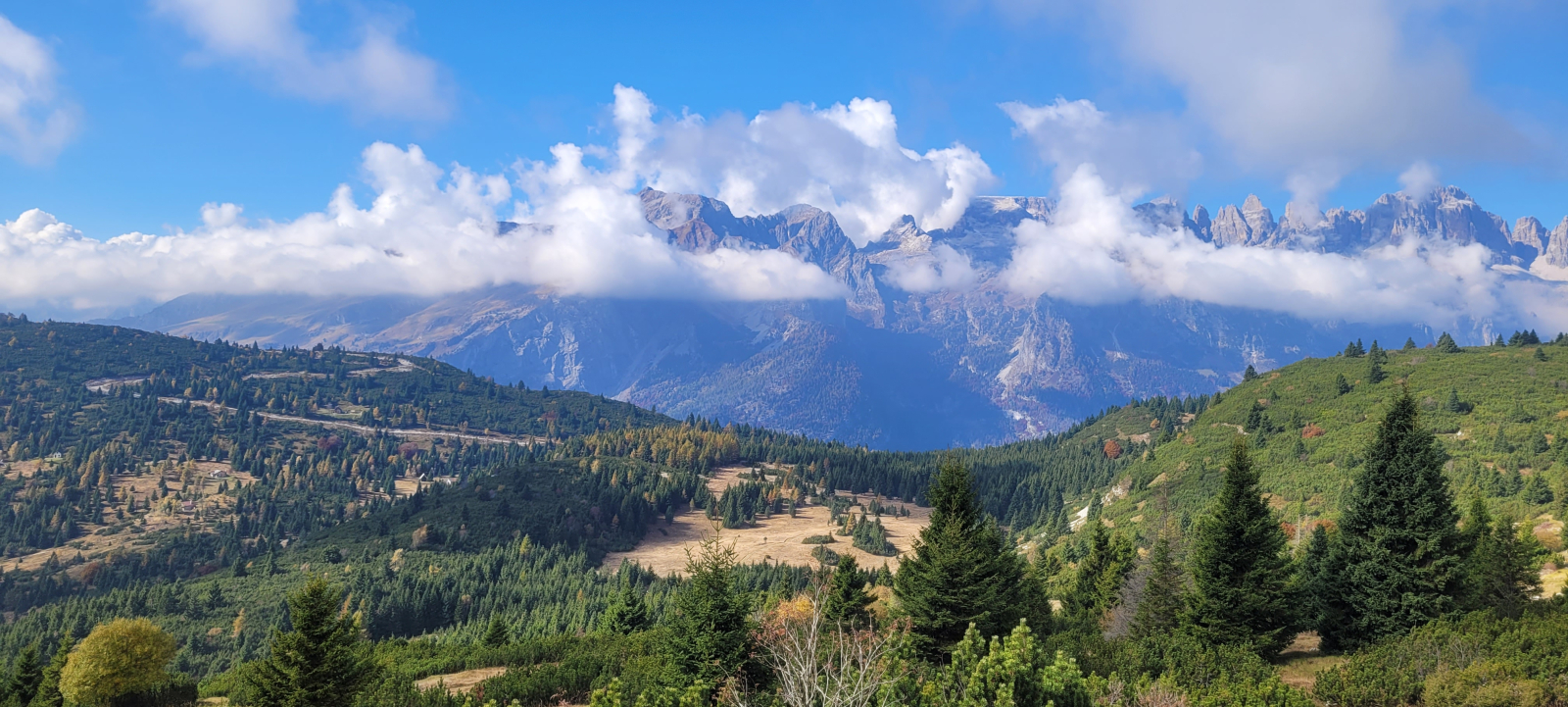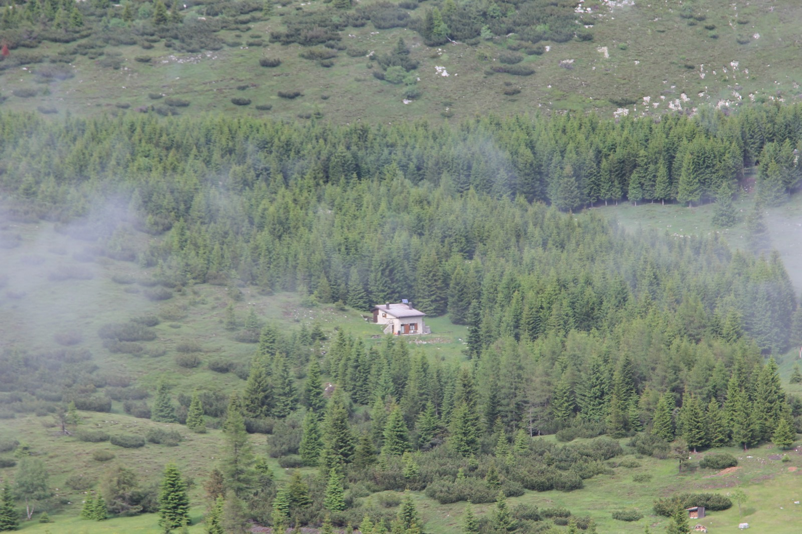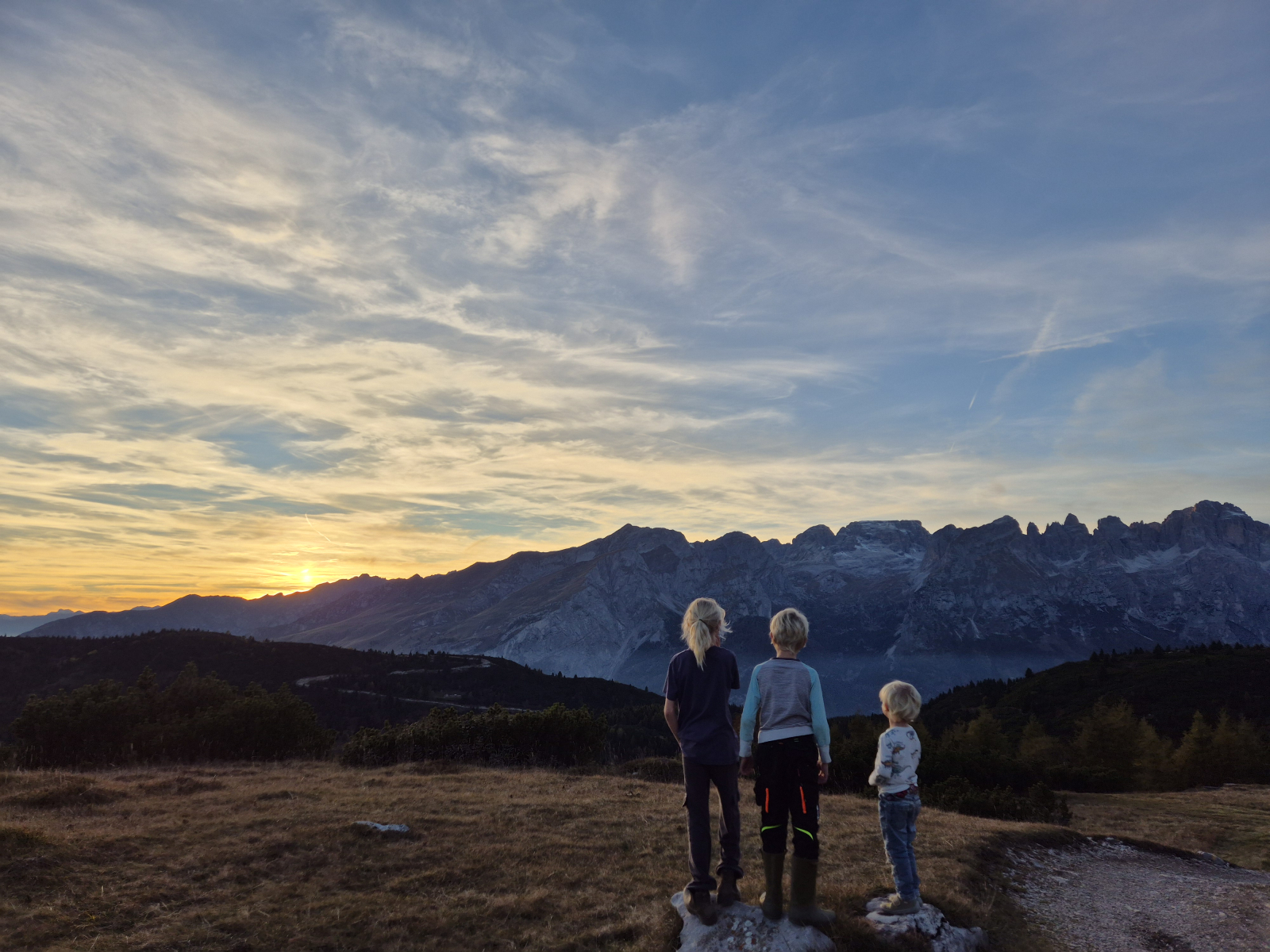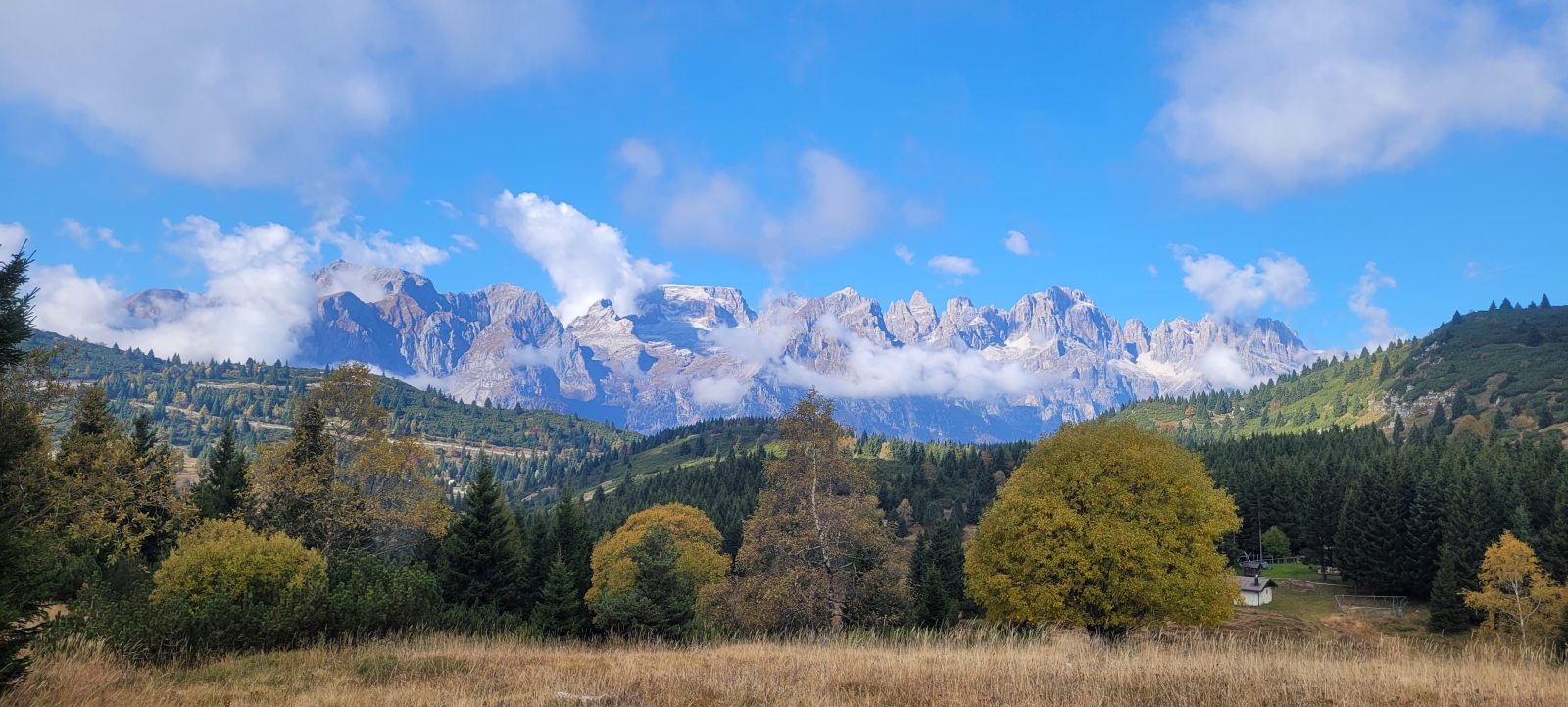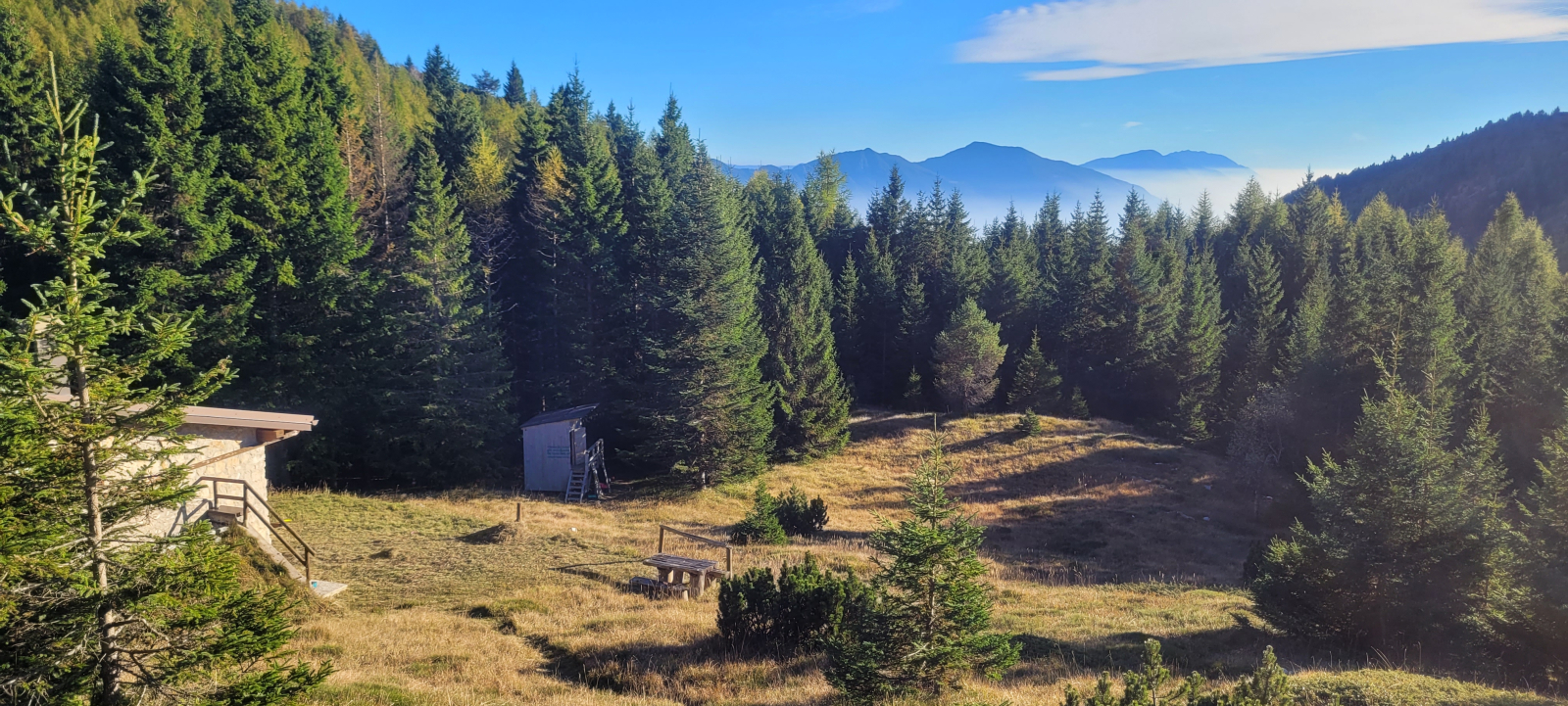 Nuestro pequeño refugio de montaña se encuentra en lo alto de las montañas de Paganella, cerca de Trient, en una tranquila meseta (alrededor de 1.700 m) con impresionantes vistas de los Dolomitas del Brenta. La zona está salpicada de pequeñas cabañas de verano propiedad de familias locales de los valles cercanos, animadas durante las vacaciones de verano, pero la mayoría de las veces maravillosamente tranquilas y tranquilas.