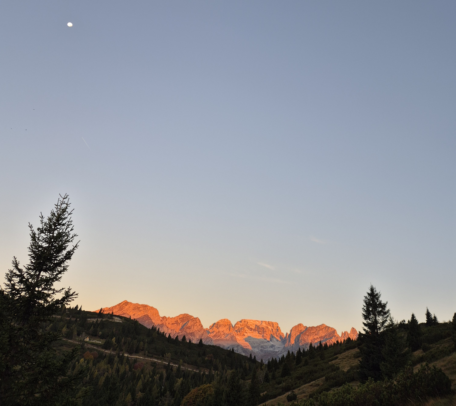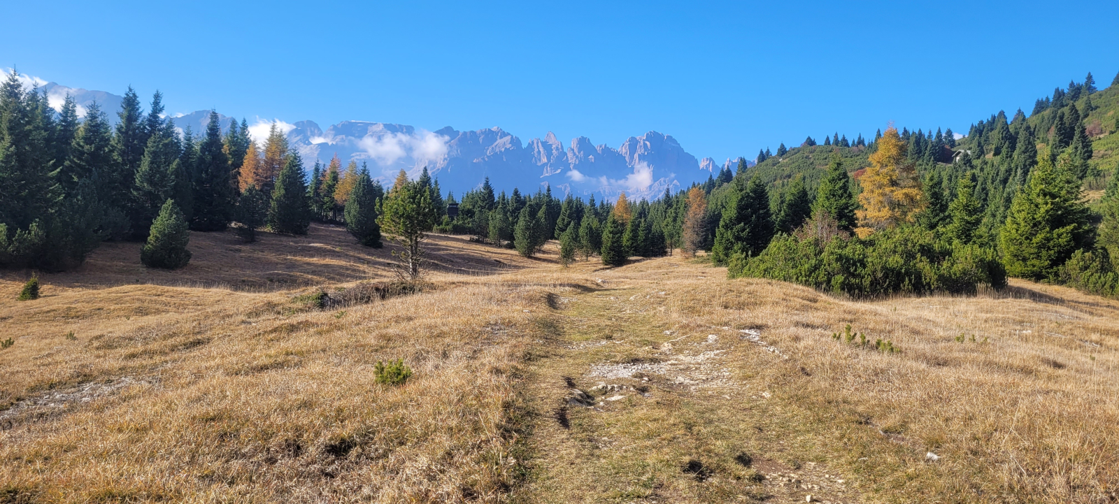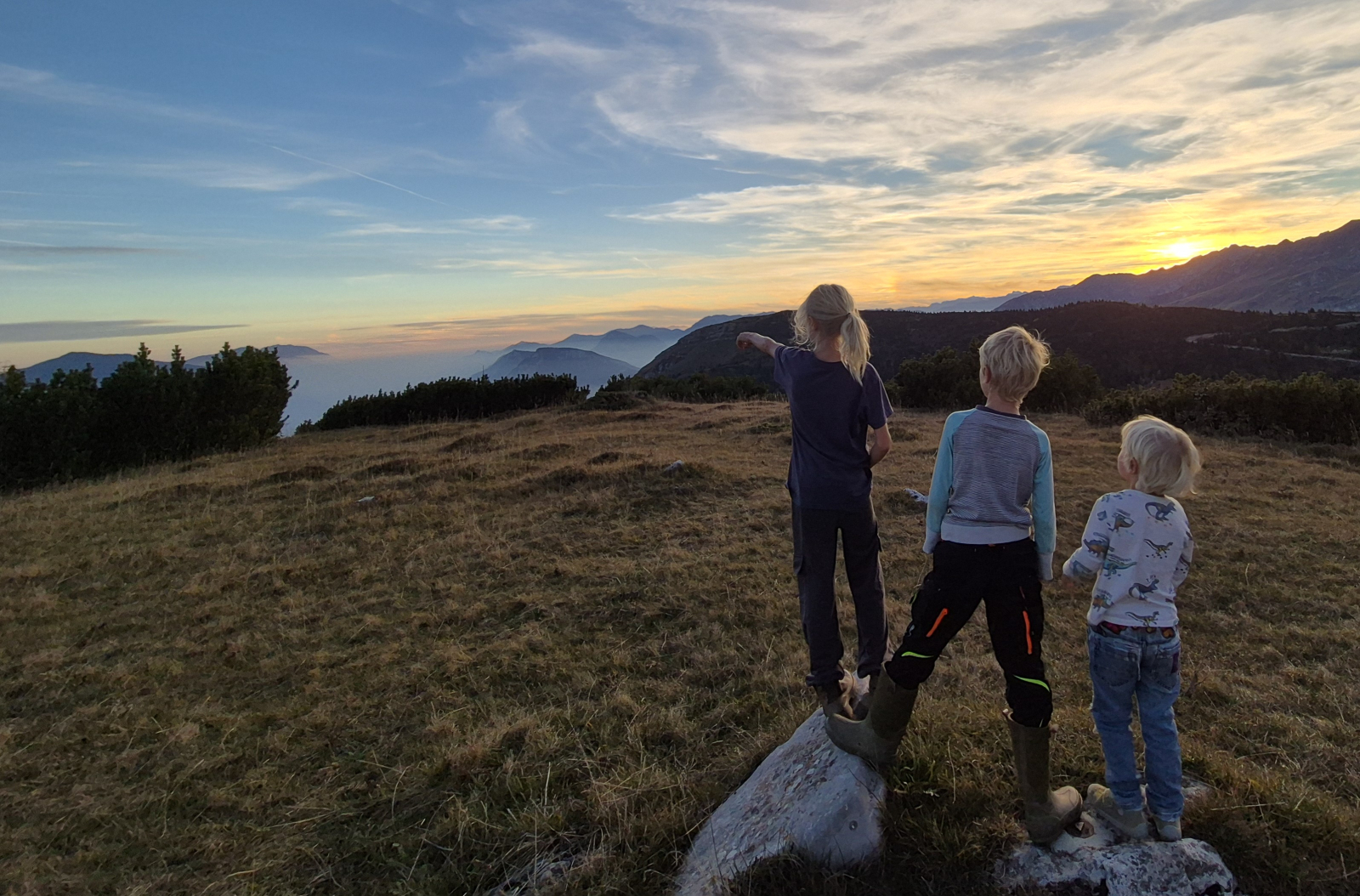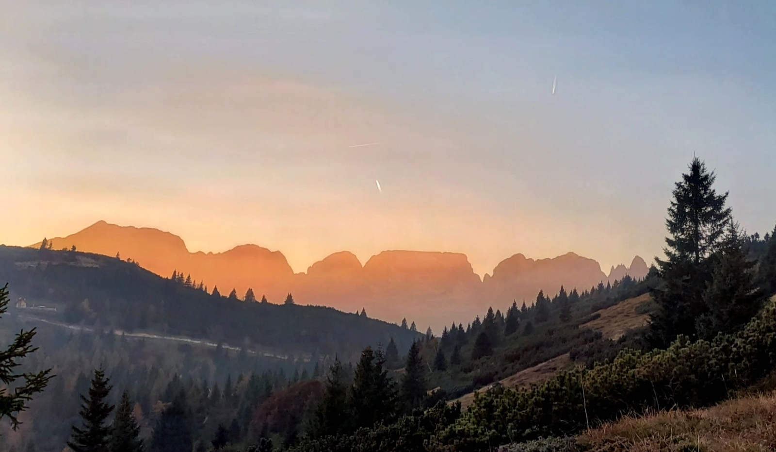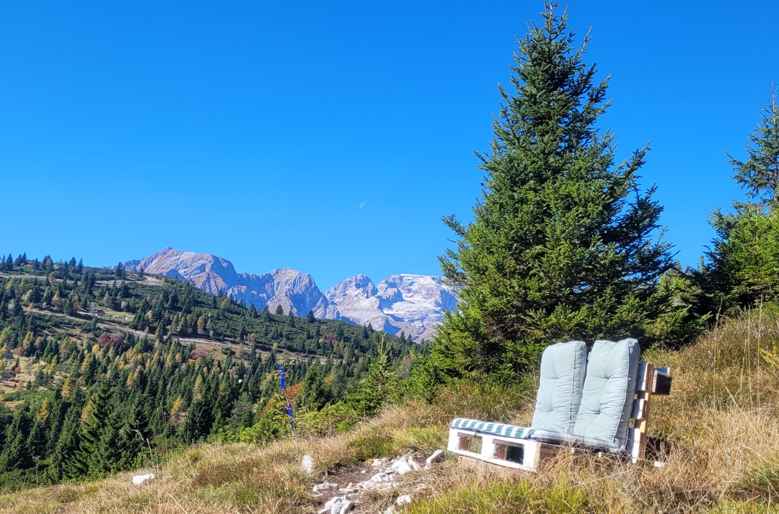Nuestro pequeño refugio de montaña se encuentra en lo alto de las montañas de Paganella, cerca de Trient, en una tranquila meseta (alrededor de 1.700 m) con impresionantes vistas de los Dolomitas del Brenta. La zona está salpicada de pequeñas cabañas de verano propiedad de familias locales de los valles cercanos, animadas durante las vacaciones de verano, pero la mayoría de las veces maravillosamente tranquilas y tranquilas.