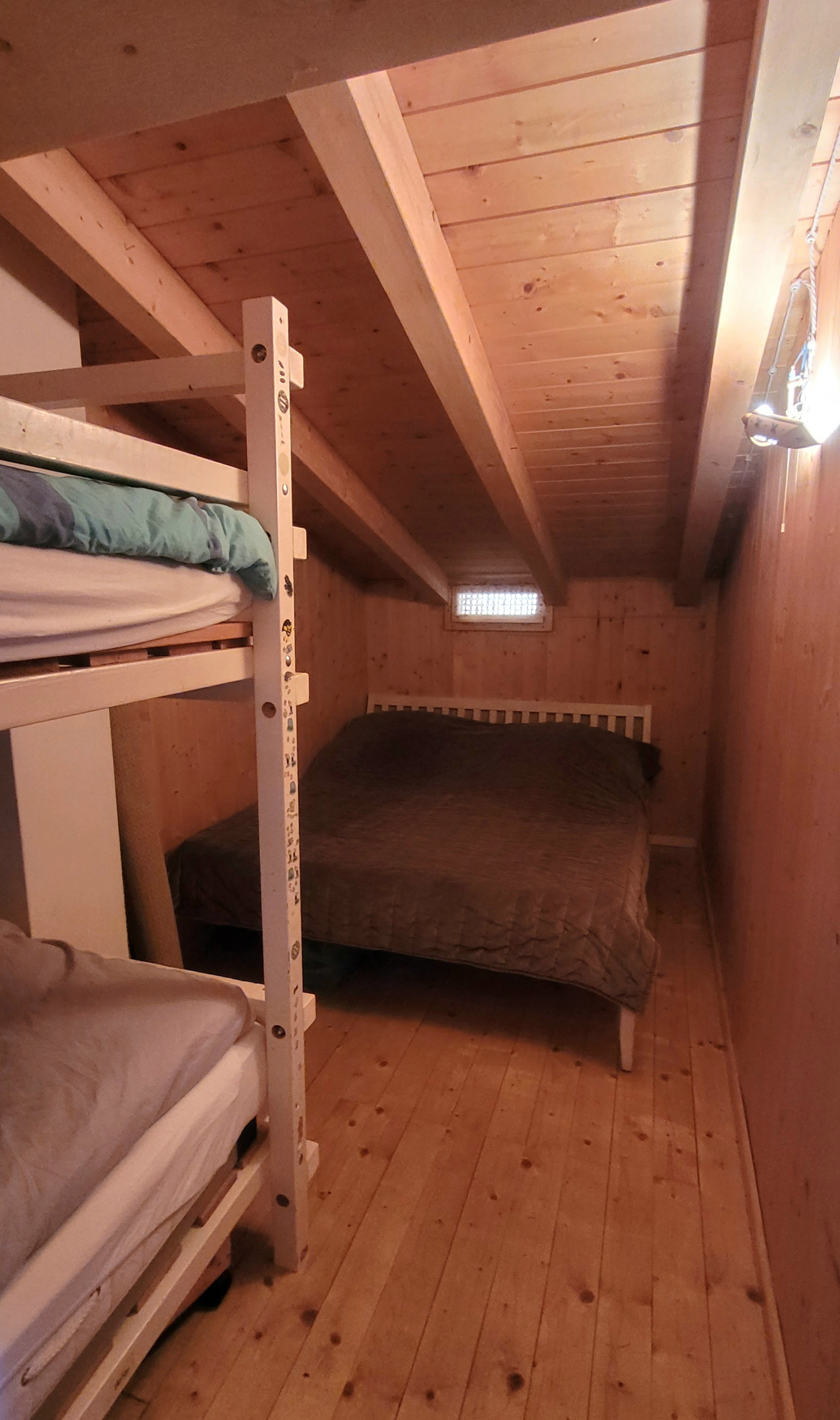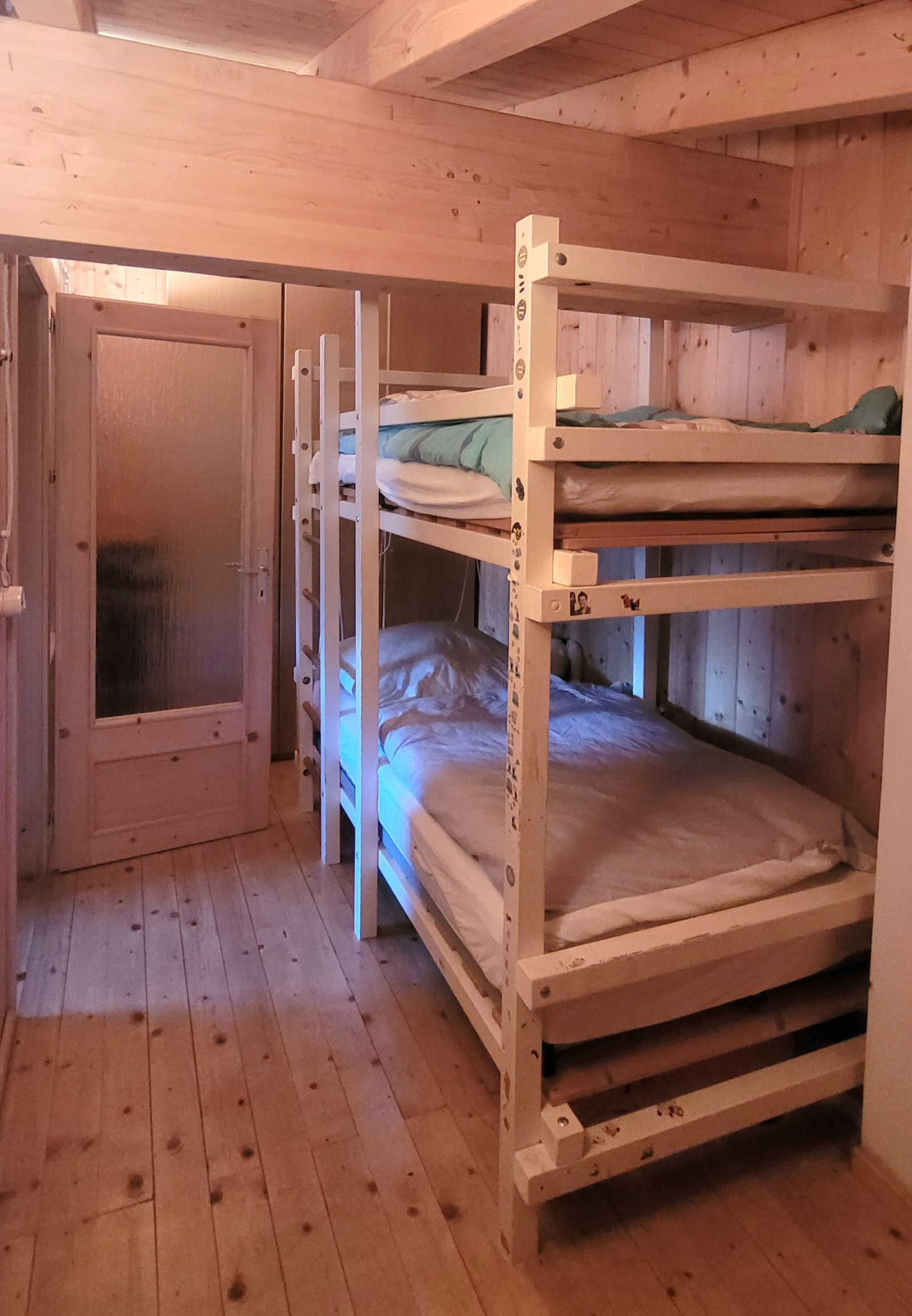 - 1 dormitorio con una cama doble (160×200 cm) y una litera (90×200 cm)