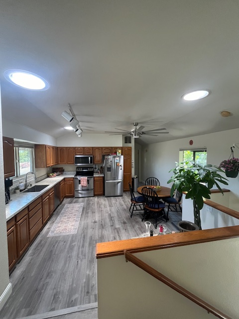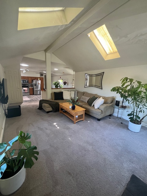 ¡Mi casa es luminosa, acogedora y pintoresca! Es una casa unifamiliar de 2 pisos con patio trasero. Tiene una planta abierta con una cocina espaciosa, con electrodomésticos nuevos de acero inoxidable, conectada a una sala de estar muy acogedora con un sofá en L, chimenea y smart TV con servicios de transmisión. Hay una vista parcial del océano desde la cocina y la sala de estar: ¡puede ver la puesta de sol desde la comodidad de nuestra casa! Hay 3 habitaciones grandes: una suite principal en el piso de arriba con un balcón con vista parcial al mar. Y 2 dormitorios en la planta baja que comparten un baño. ¡La casa es luminosa y está llena de plantas para que su estadía se sienta muy hogareña!