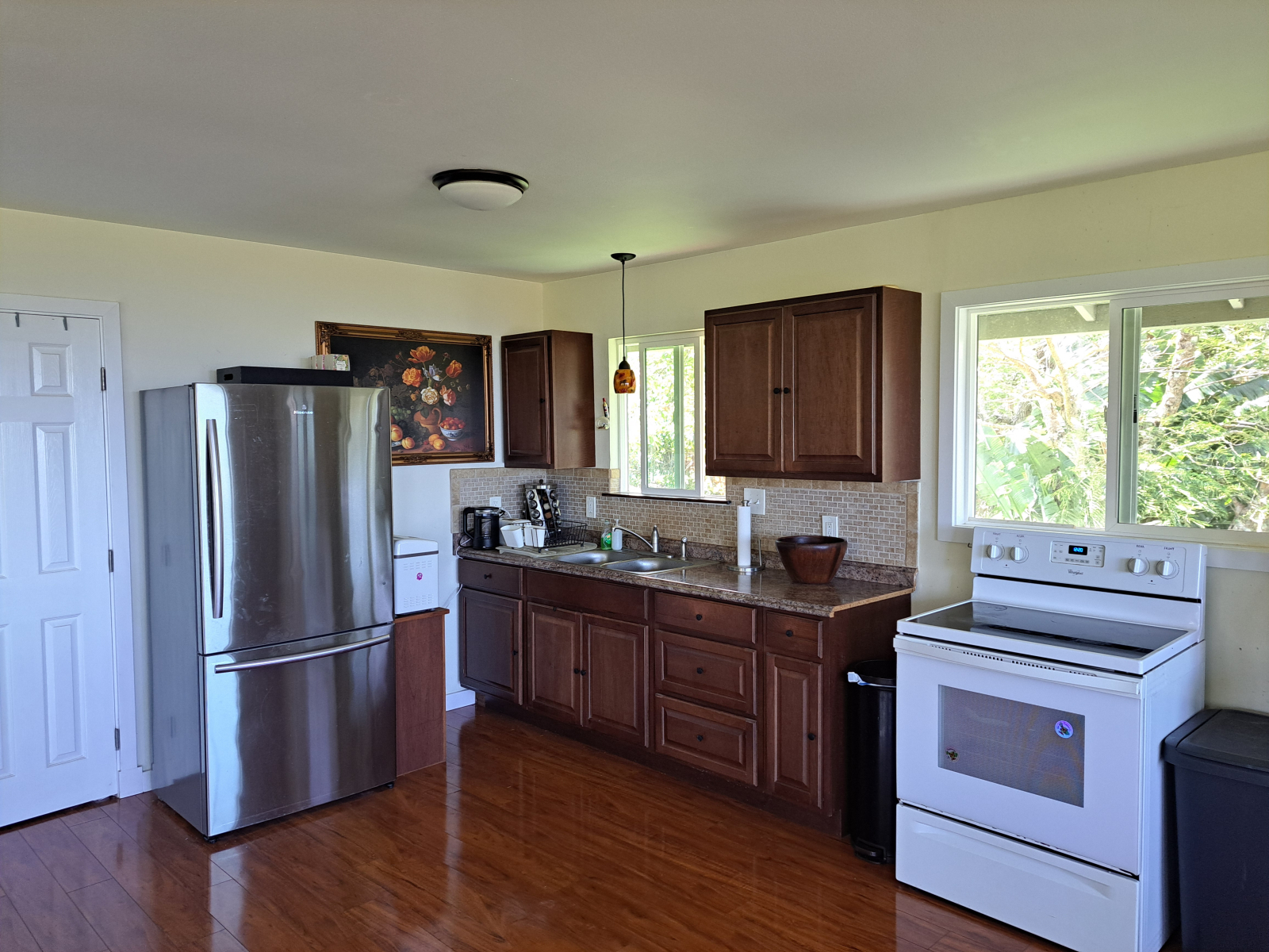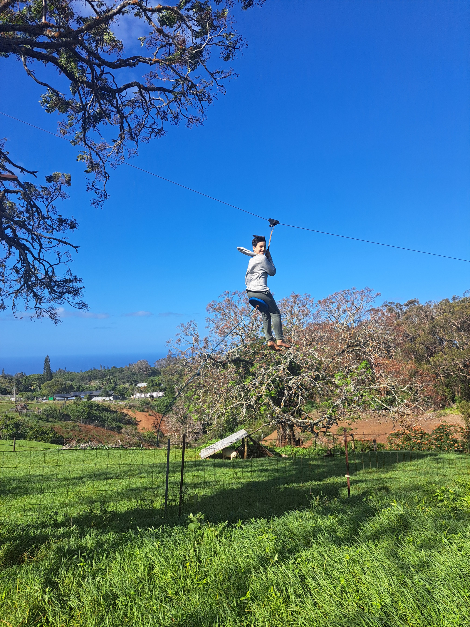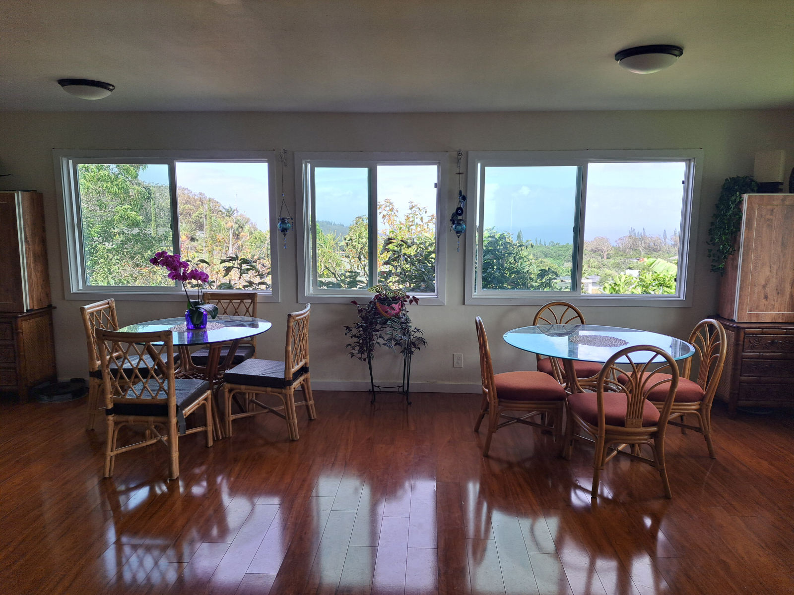 Relájate con toda la familia en este paraíso tranquilo en 2 acres con vistas al océano y a las montañas y árboles frutales. A los niños les encantará nuestra tirolina privada, un enorme trampolín, un columpio y una litera hecha a medida. Está situada al final de una pequeña calle privada sin tráfico. Estamos a solo 5 minutos del centro de Makawao.