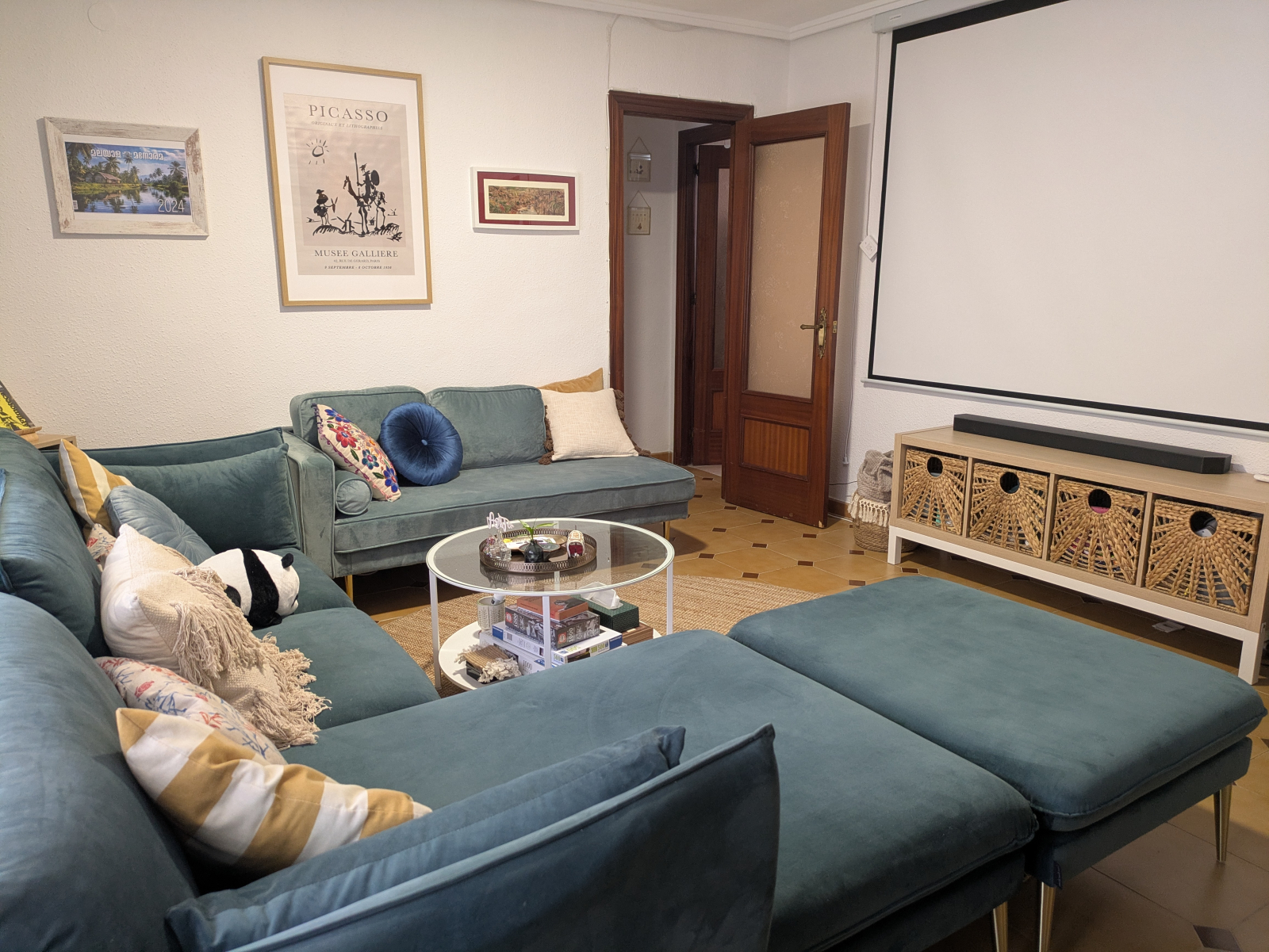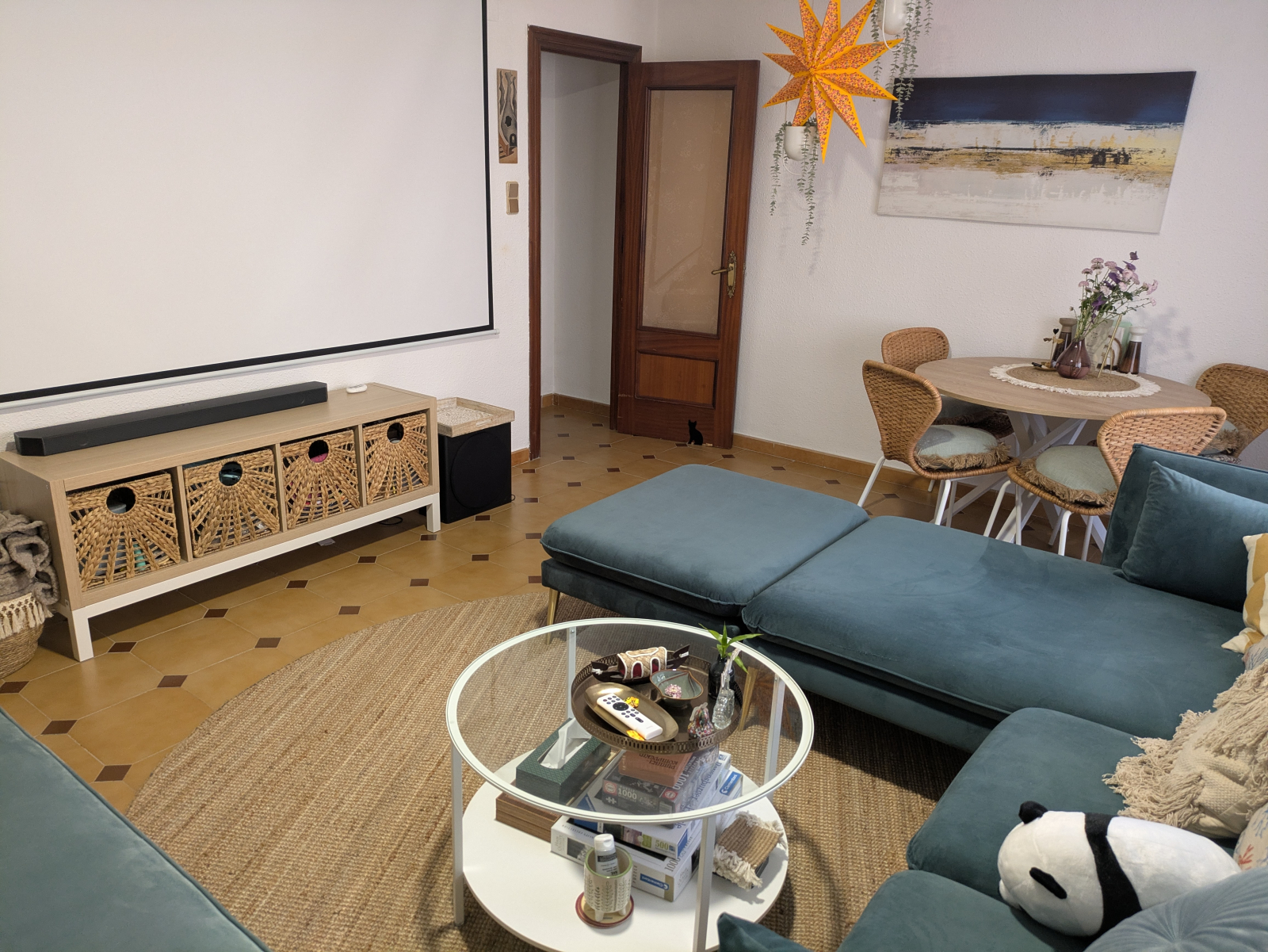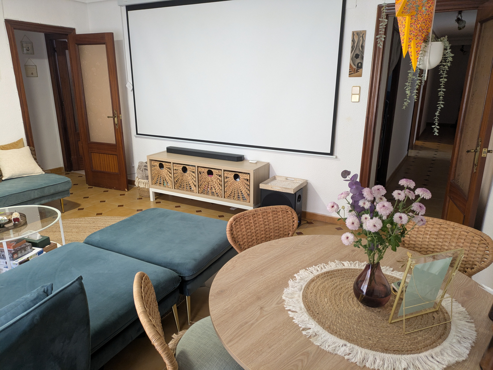 Nos encanta cocinar y ver películas, así que nuestra casa está bien equipada para estas actividades. Si llevas portátil, puedes conectarte a nuestro proyector y ver películas en nuestra pantalla de ~2 metros en el salón, con sonido envolvente y cortinas opacas si es necesario para ver durante el día.