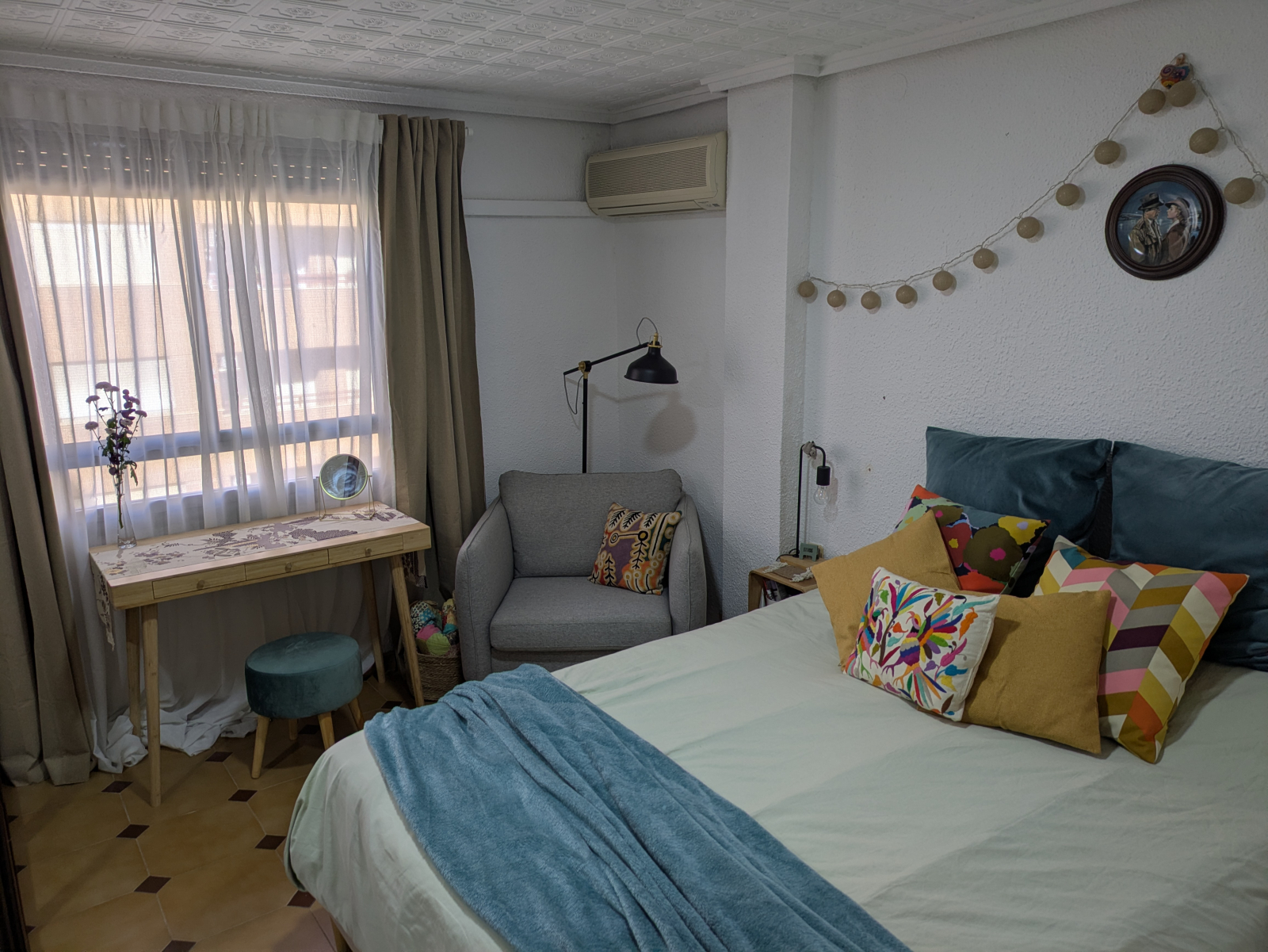 Luminoso y acogedor, 3+ dormitorios con 1 baño y un balcón soleado con espacio para descansar y tomar algo o comer fuera. Nuestra casa está en un barrio residencial con todas las comodidades locales, justo al lado del Turia, el parque más grande de Valencia, y a un fácil paseo de 15 minutos hasta el corazón del casco antiguo.