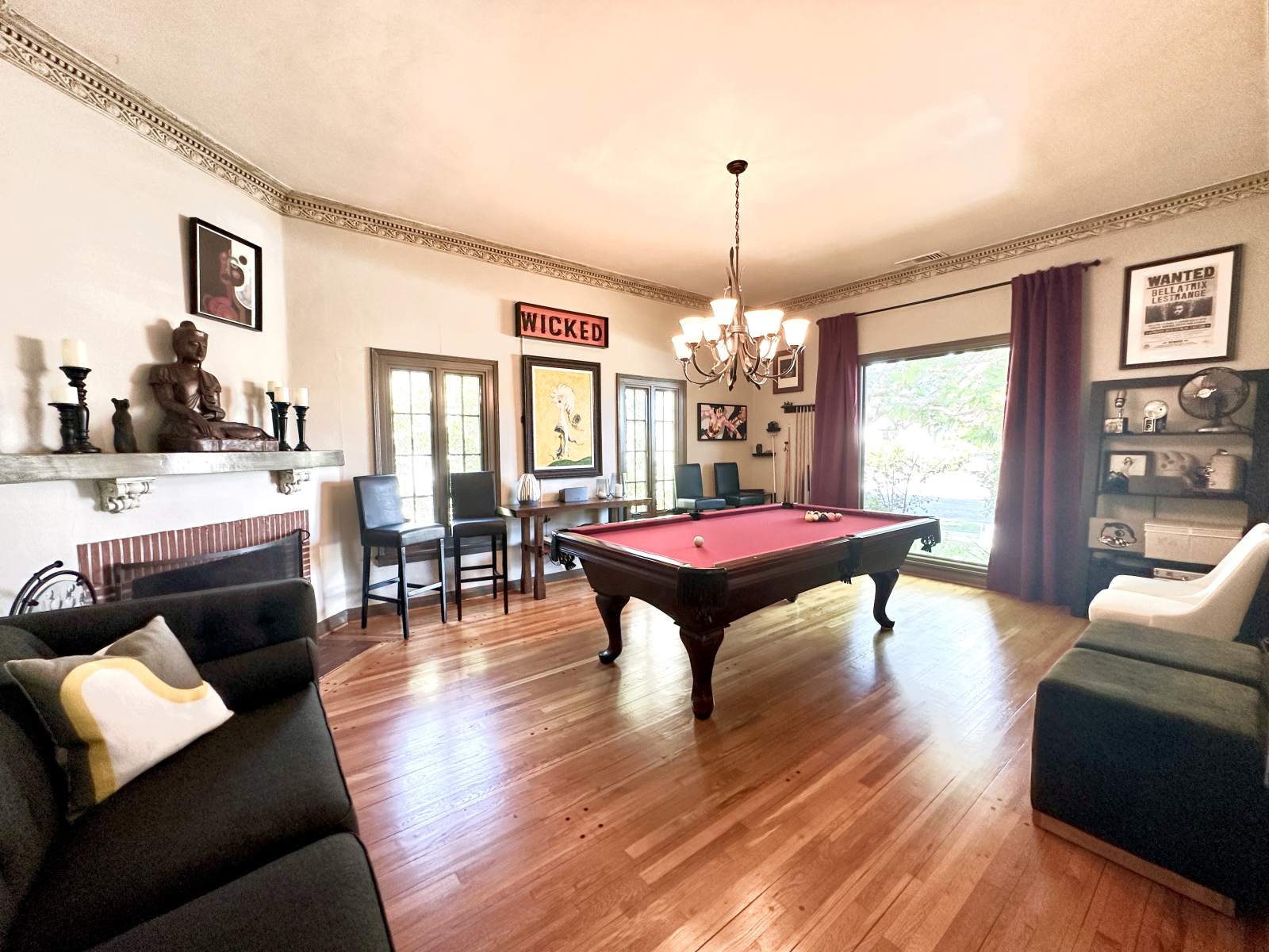 Usamos el salón/sala de televisión la mayor parte del tiempo en interiores y nuestro jardín trasero para la mayor parte de la comida y el descanso al aire libre. Todo está preparado para ser adecuado para 6+ personas. La sala de billar no se usa mucho a menos que juegues al billar.