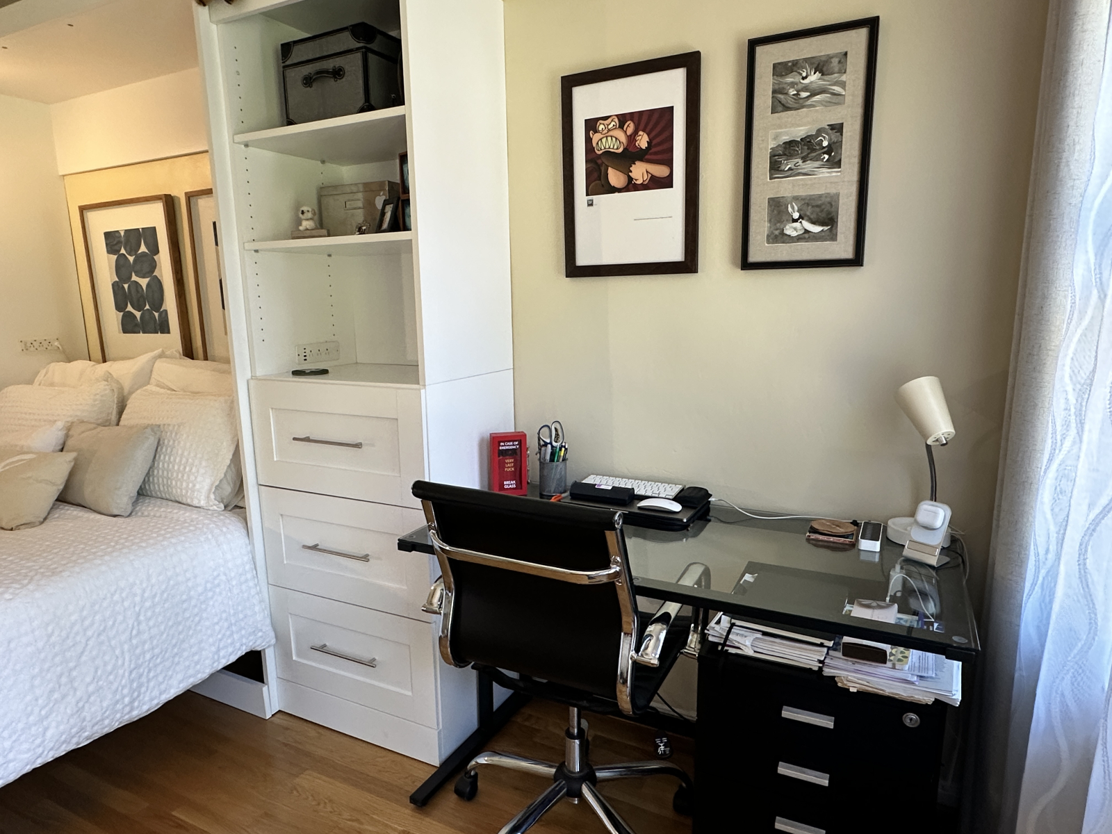 No siempre podemos llevar a nuestro gato con nosotros, pero es muy fácil de cuidar. Keller está parcialmente ciega, así que no saldrá corriendo por la puerta y es lenta y no llegará lejos si está fuera. Es fácil levantarla y volver a meterla dentro. Dale de comer 2-4 veces al día cuando estés en casa (no hace falta cambiar tu plan mientras la alimente al menos por la mañana y la noche). Le gusta tomar el sol fuera cuando estás en casa, jugar con bolas de mylar o dormir en el sofá cuando está dentro. Si de verdad le gustas, dormirá contigo en la cama. Hay un robot de arena, así que para estancias de más de una semana, la bolsa tendrá que cambiarse semanalmente.
