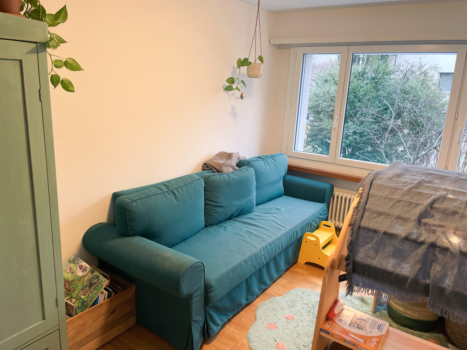 Nuestro acogedor apartamento de 4,5 habitaciones está situado en un tranquilo barrio periférico de Zúrich, justo al borde del bosque — un lugar donde la vida urbana y la naturaleza se unen de forma sencilla y natural. El piso es luminoso y espacioso, con un salón muy generoso y una chimenea que hace que el espacio sea especialmente acogedor por las noches. Hay un baño, un baño independiente y un balcón cubierto que funciona bien en cualquier estación.