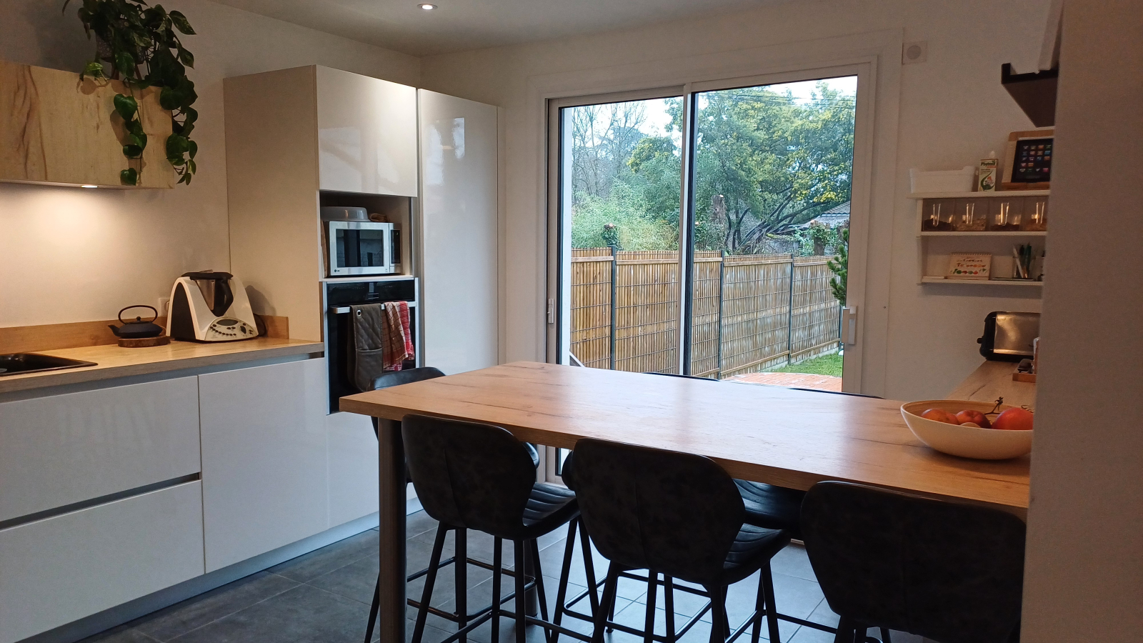 - Une grande cuisine où vous pouvez manger à 6 autour d'une table haute pour partager les repas en famille.
