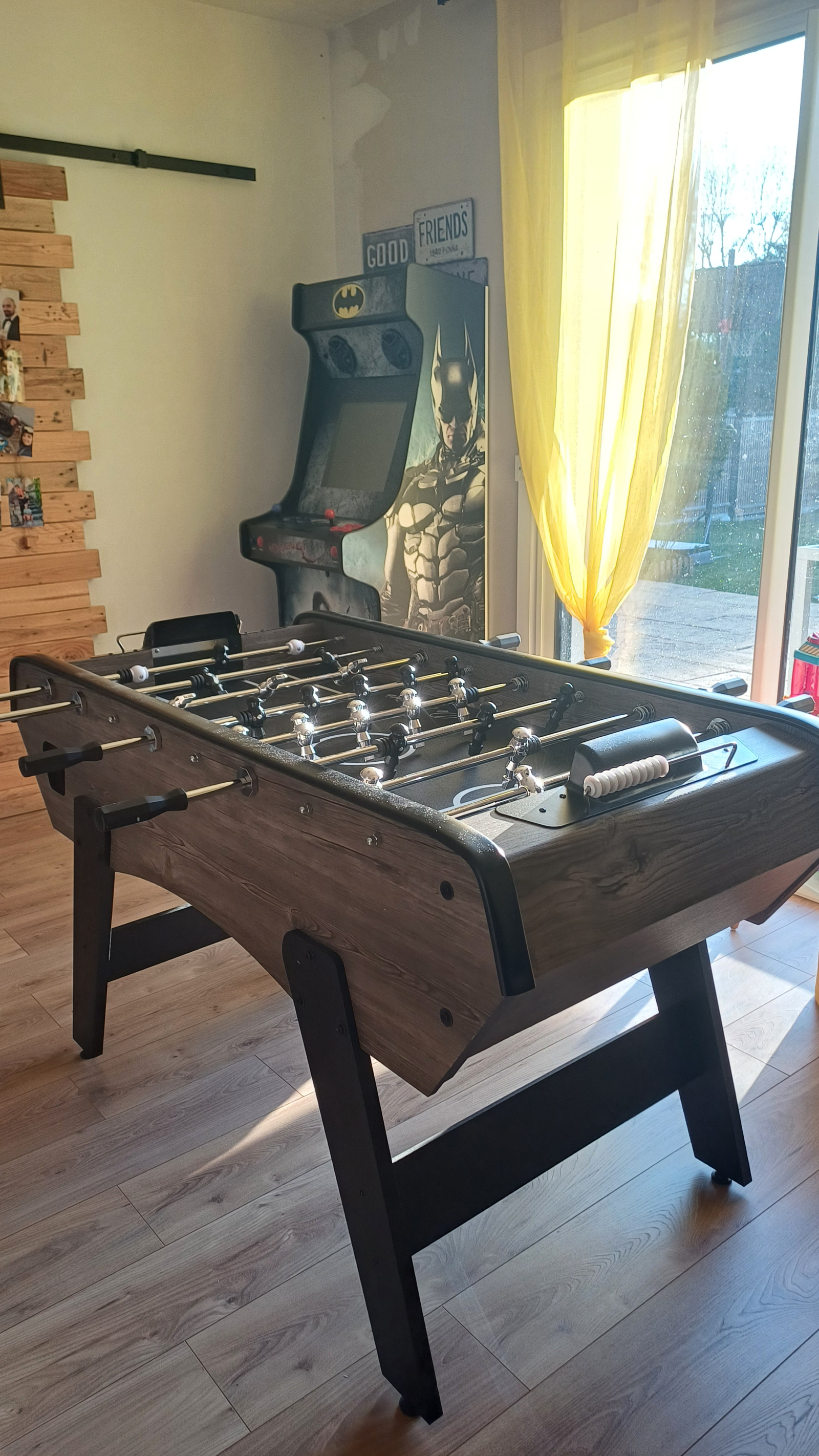 - Une grande pièce de vie de 60 m2 composée d'un salon, une salle à manger et salle de jeux avec baby-foot, borne arcade, jeux de fléchettes.
