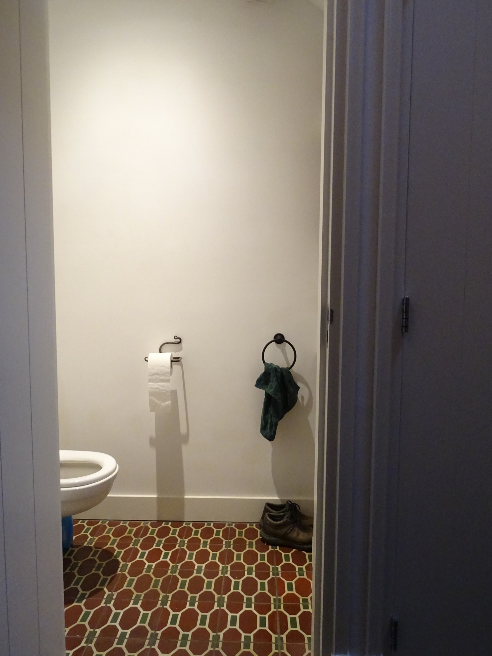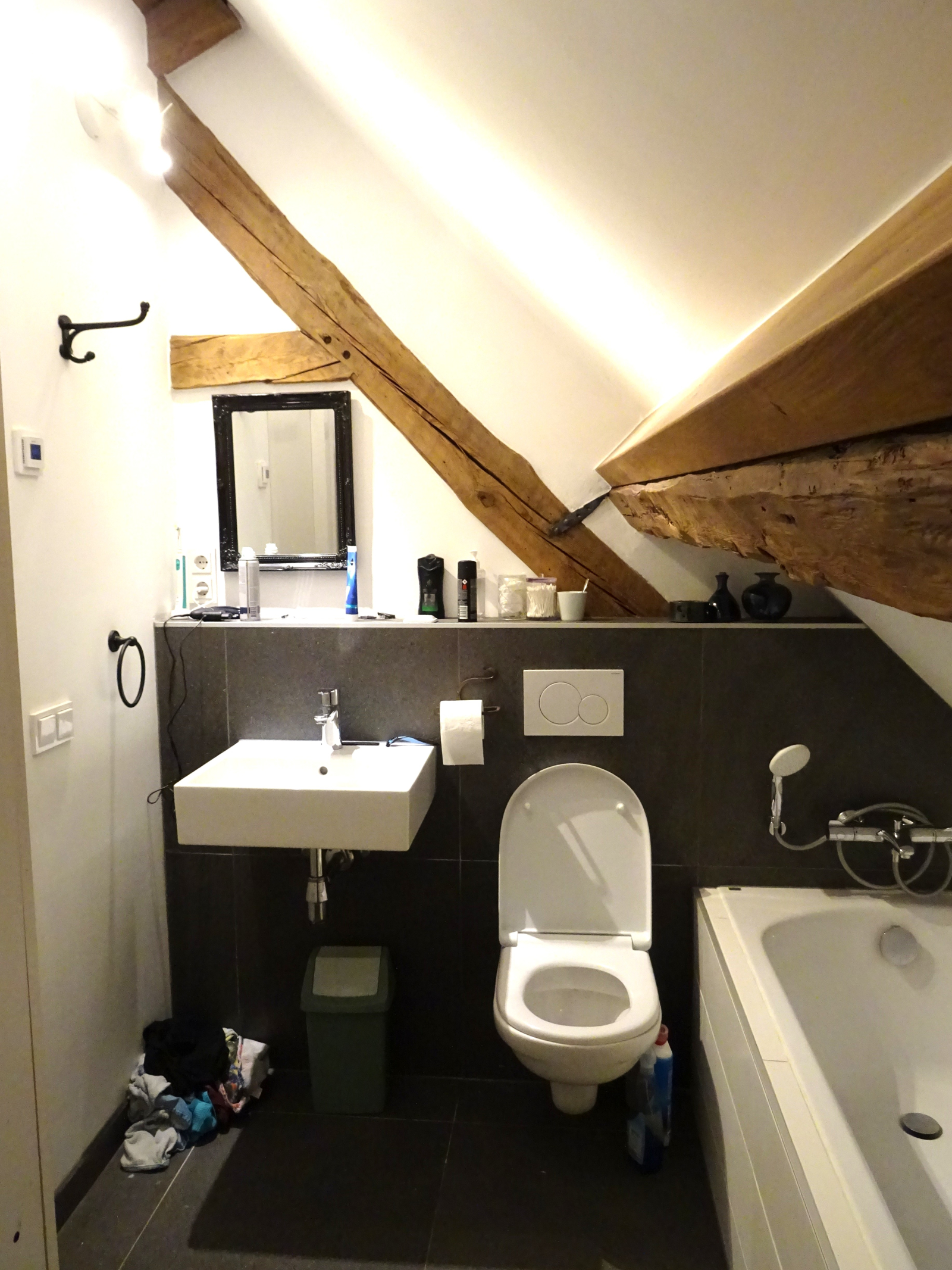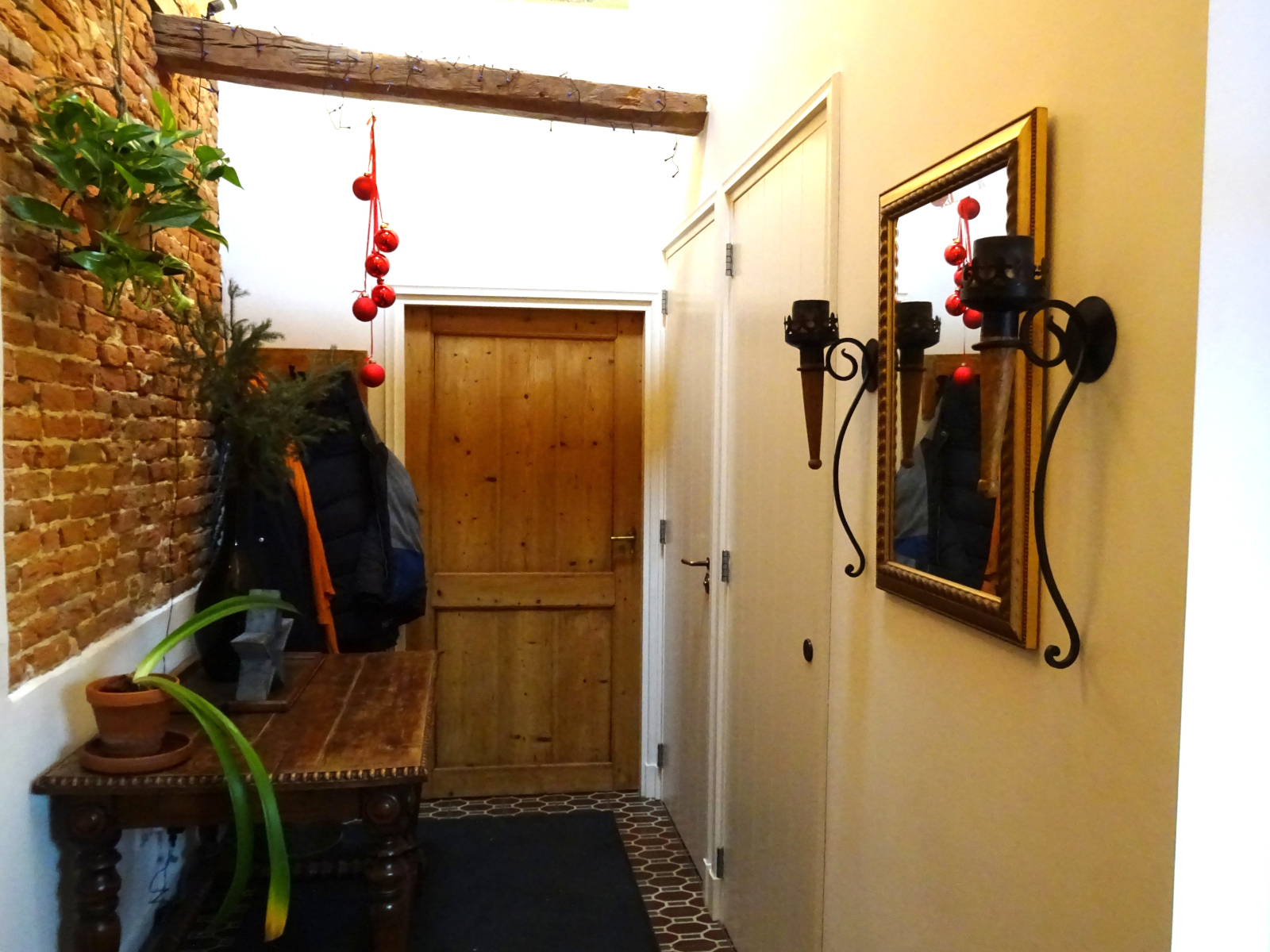 Karen adore cuisiner. Elle est professeure de cuisine à temps partiel. Vous pouvez donc trouver n’importe quel ustensile de cuisine que vous voulez. Près de la cuisine se trouve une cave. Aujourd’hui, c’est assez profond pour qu’on puisse s’y plonger. Dans les fermes de la province du Brabant, on trouve souvent des caves semi-profondes avec une pièce au-dessus. Le bicolore des années 1850. On appelle cela une « chambre à l’étage ». La ferme est un monument municipal.