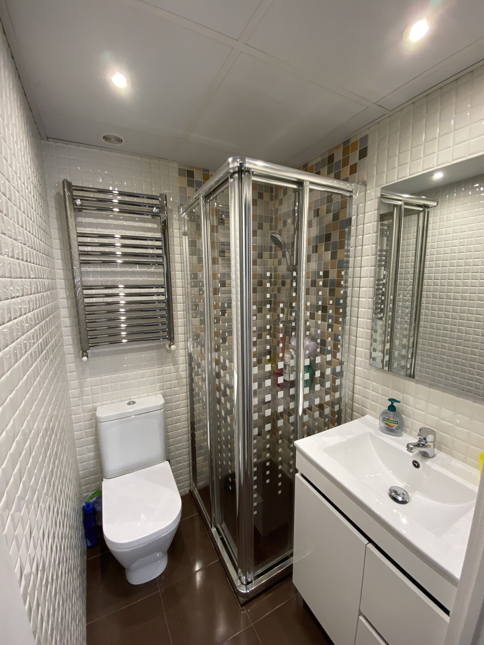 L’appartement dispose de deux chambres doubles avec un lit de 1,35 cm, chacune avec deux salles de bains avec douche, dont une à l’intérieur de la pièce.