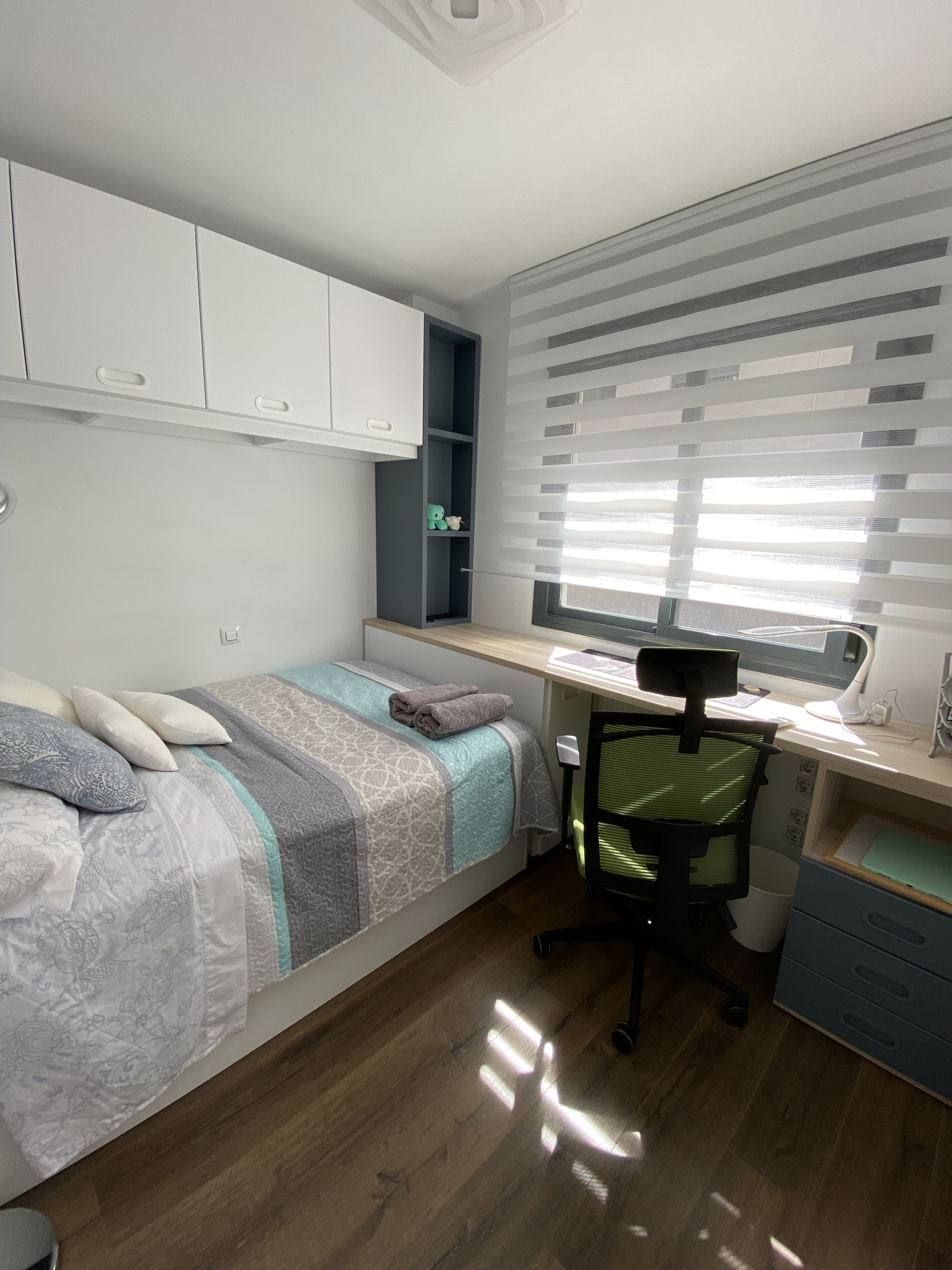 L’appartement dispose de deux chambres doubles avec un lit de 1,35 cm, chacune avec deux salles de bains avec douche, dont une à l’intérieur de la chambre.