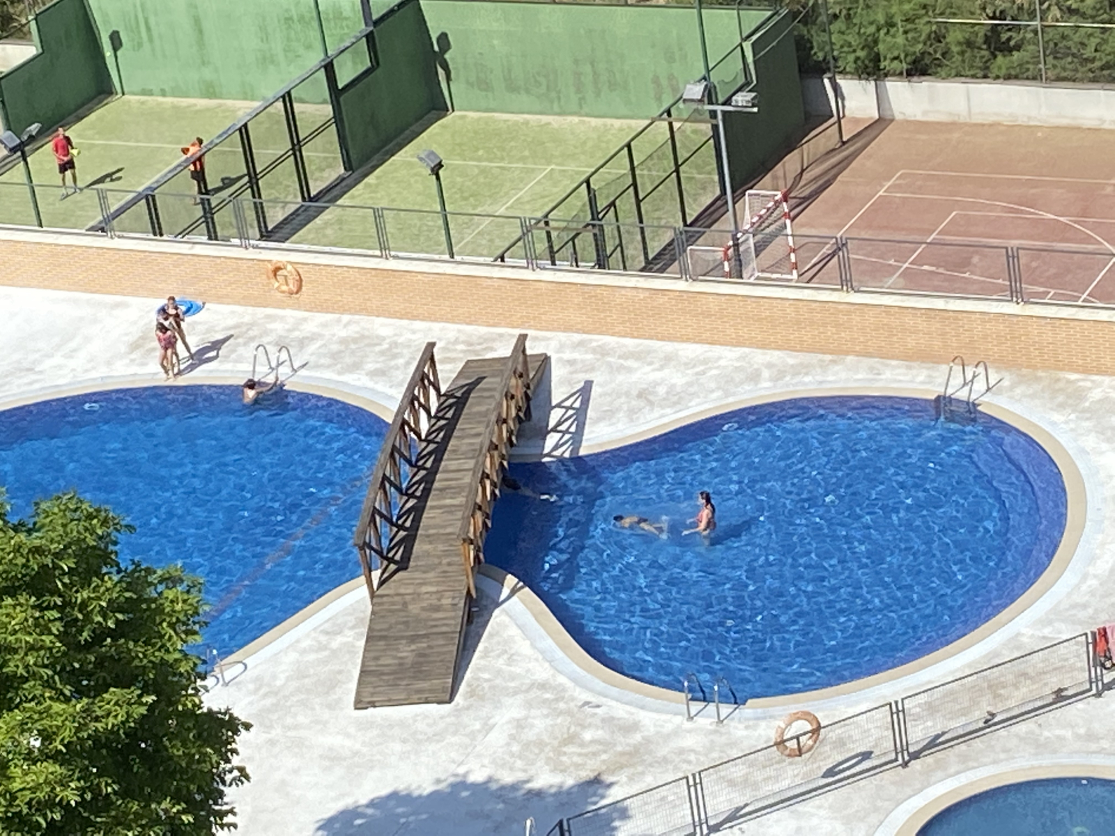 Je vis dans une urbanisation privée avec un portier ouvert 24h/24, avec piscine (été), salle de sport, 2 courts de paddle tennis, basket-ball, football et parcs.