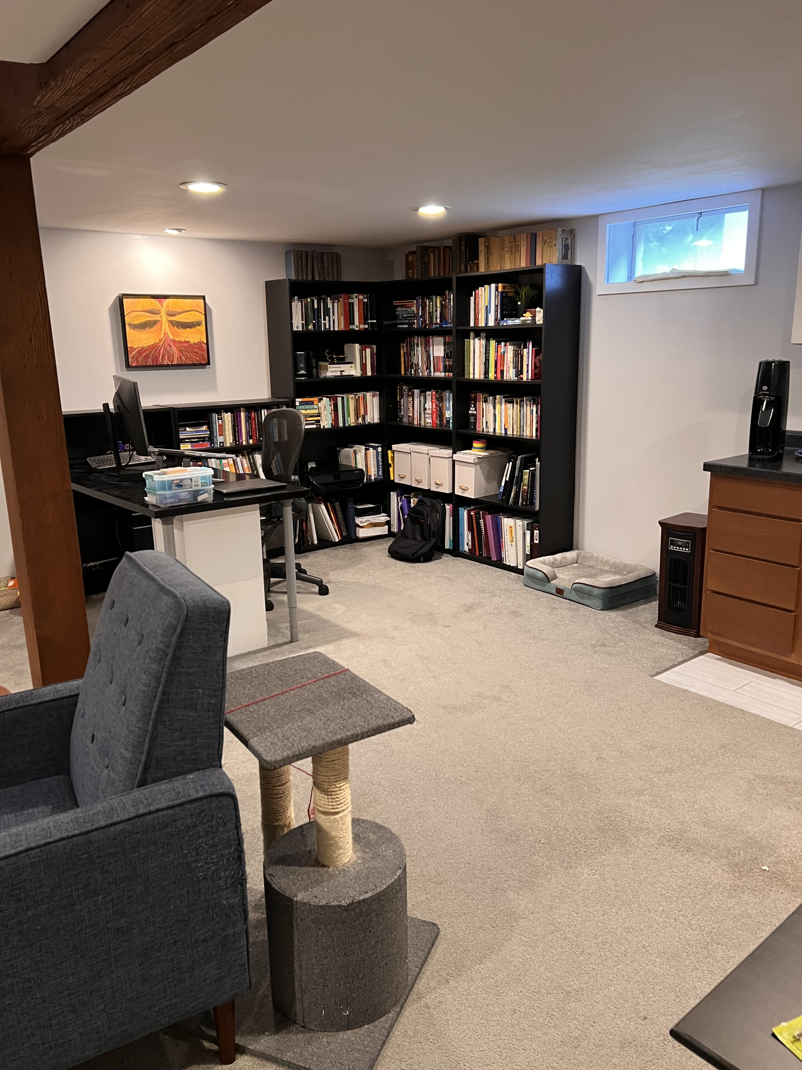 Le sous-sol aménagé dispose d’un salon avec salle de bain attenante et d’un matelas pneumatique en option pour 1 à 2 personnes, d’une salle familiale, d’un coin bureau avec deux bureaux, d’un bar et d’une buanderie. Le niveau principal dispose d’une table à manger extensible pour 6 personnes, d’un salon, d’une cuisine, d’une salle de bains avec baignoire chauffée et de deux chambres. Nous avons une cour arrière clôturée avec table extérieure / 4 chaises.