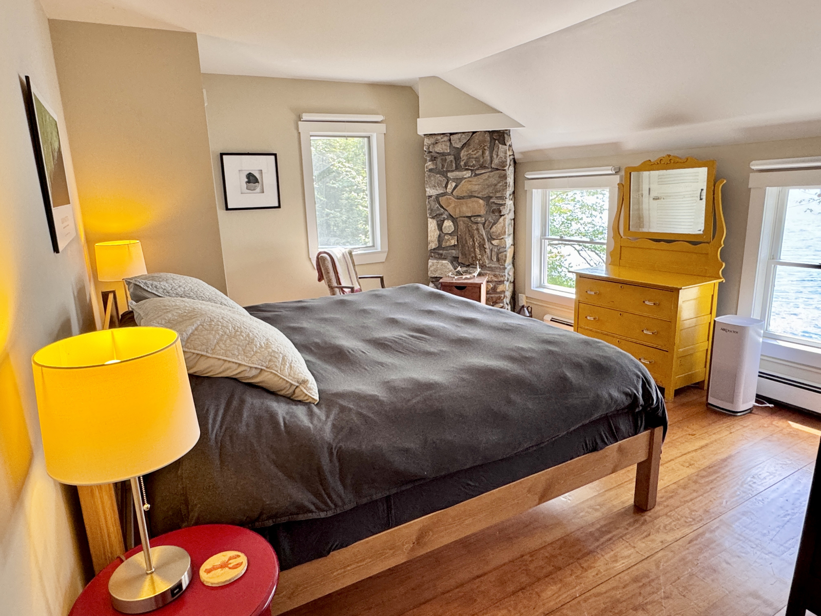 C’est le Maine rural. Nous avons quelques voisins que vous pouvez voir à travers les arbres ou lorsque vous êtes sur le quai.