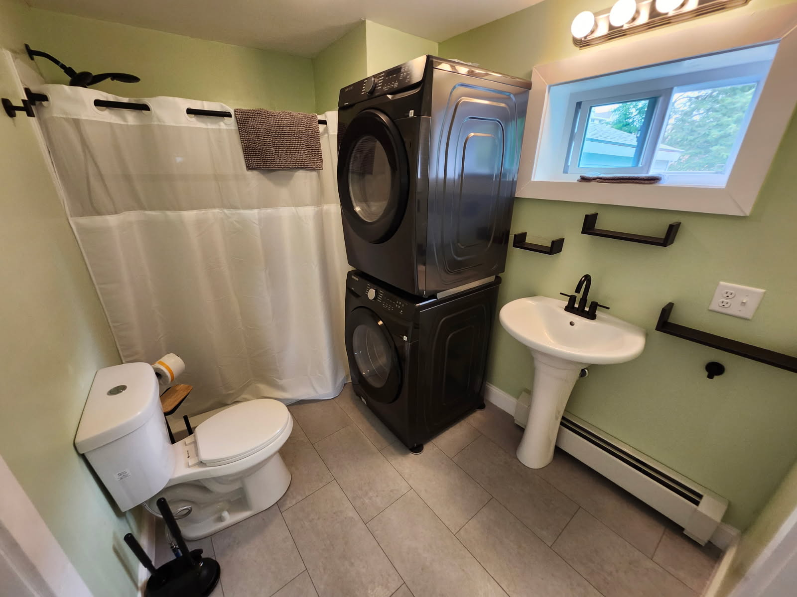 Il s’agit d’une chambre à coucher avec un lit king size, une salle de bain avec douche et une laveuse et une sécheuse dans l’unité. Il y a une cuisine complète avec des appareils en acier inoxydable mis à jour. Le réfrigérateur dispose d’un distributeur d’eau et d’une machine à glaçons.
