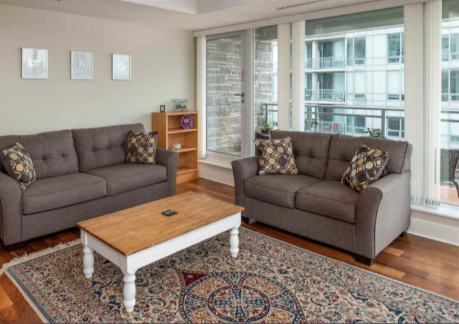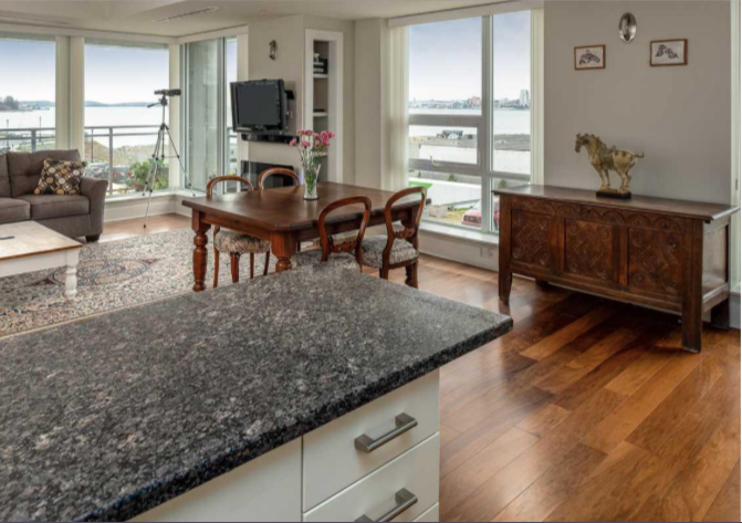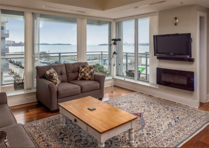 Condo 2 chambres en bord de port au centre-ville, avec une vue magnifique sur la silhouette d’Halifax. Une grande disponibilité !