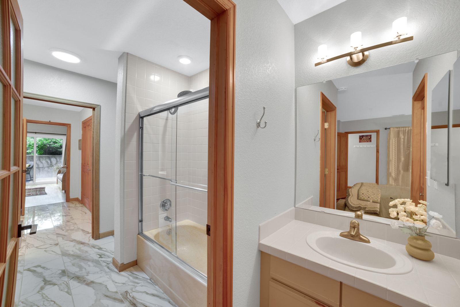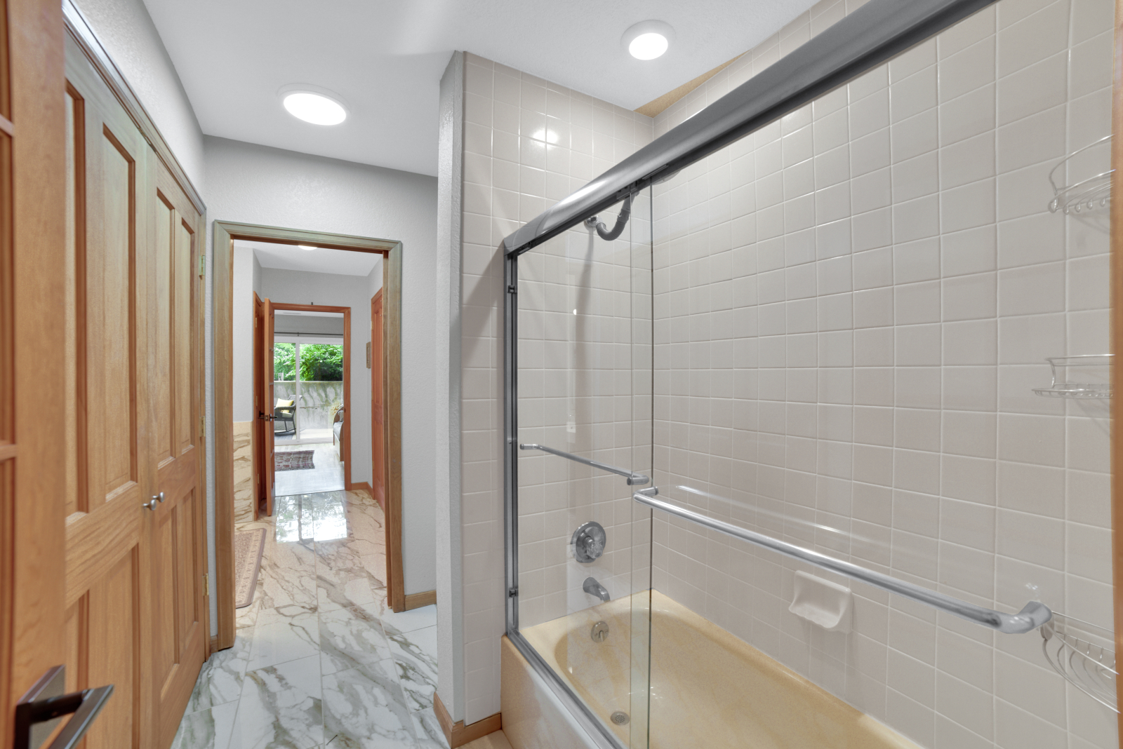 Le lit escamotable fonctionne comme un lit queen et les rideaux des portes vitrées sont occultants, donc dormir dans cette zone n’est pas un problème. La salle de bains dispose de deux dressings séparés, de meubles-lavabos et de placards, ce qui permet d’être suffisamment privé si nécessaire. Mais il n’y a qu’une seule salle de bain.