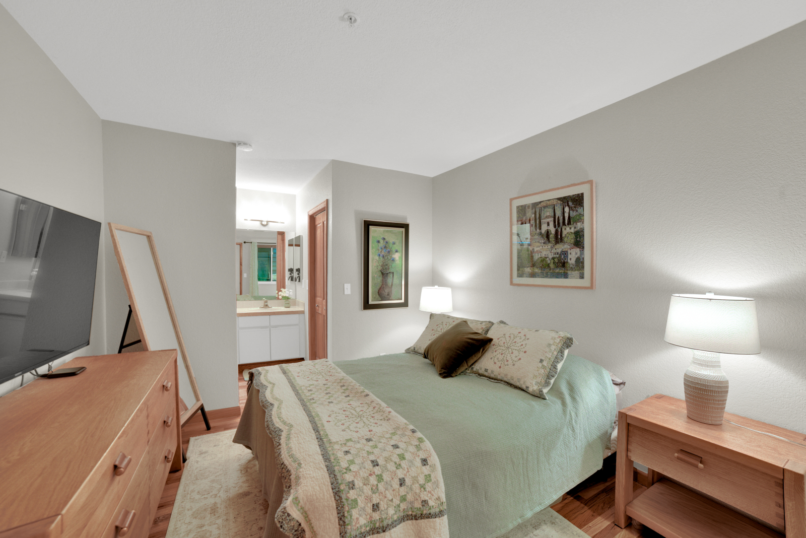 Une chambre avec un lit queen (petite chambre) et le deuxième lit est un lit escamotable dans le bureau. La chambre et le bureau sont reliés par un long placard/buanderie/salle de bain (plusieurs portes pour préserver l’intimité). Le salon avec foyer et la salle à manger sont à aire ouverte. La cuisine a presque tout ce que vous voudriez. Boulder a de superbes restaurants, mais les marchés frais sont incroyables si vous voulez cuisiner à la maison.
