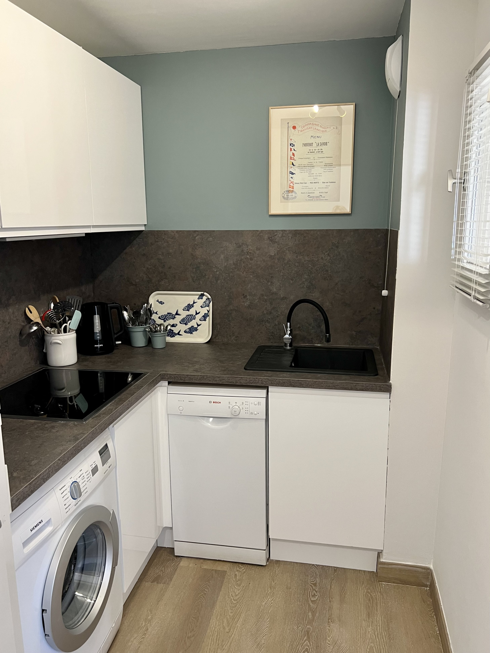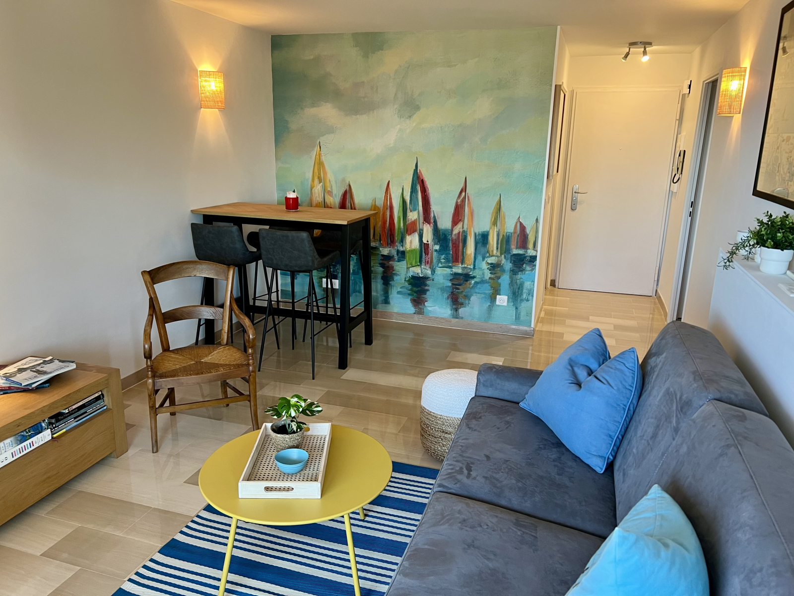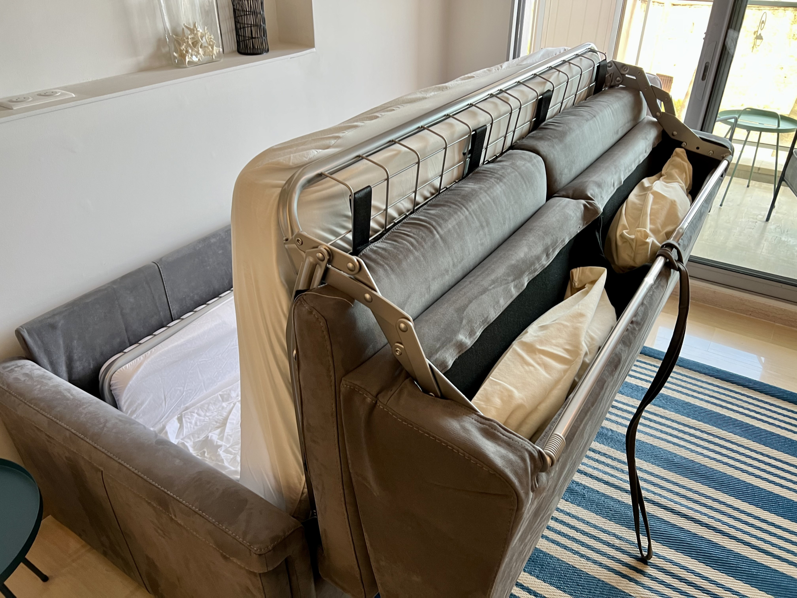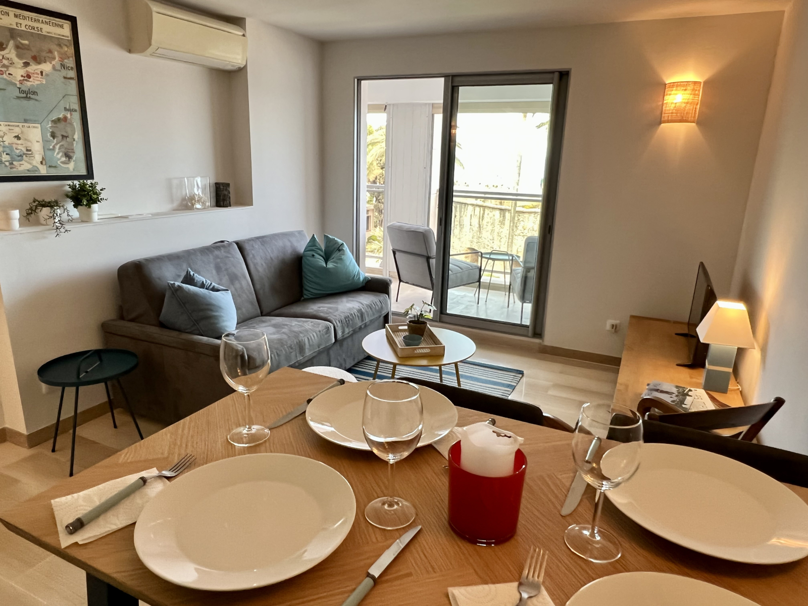 C’est un refuge parfait pour profiter d’Antibes. L’appartement mesure environ 50 mètres carrés, y compris un grand balcon couvert avec des fauteuils rembourrés et une table à manger extérieure pour 4 personnes. Pour dormir le groupe, il y a une chambre principale séparée et un canapé convertible dans le salon. Le WIFI par fibre optique et une grande télévision à écran plat sur le mur offriront votre confort (surf et visionnage). Il y a un WC séparé à côté de la salle de bain avec douche / baignoire. La cuisine est équipée de tout l’équipement de cuisine nécessaire, y compris un réfrigérateur / congélateur, un four à convection / micro-ondes, un lave-vaisselle, un lave-linge. Le chauffage/climatisation mural est géré individuellement par télécommande.