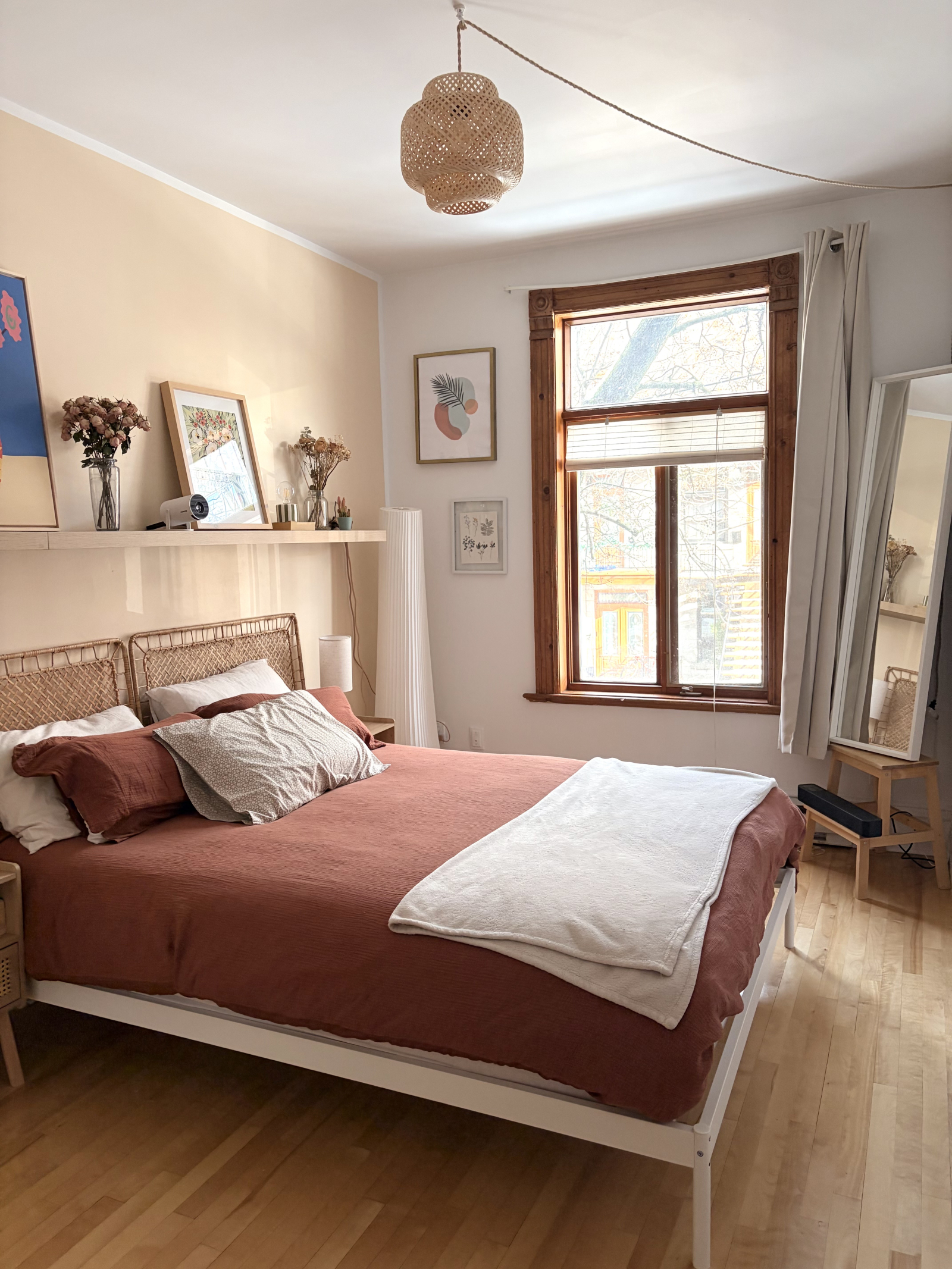Our apartment is located right in the heart of Le Plateau, one of Montreal’s most vibrant and charming neighborhoods. We’re surrounded by everything you could possibly need: local fruit stands, cafés, restaurants, bakeries, and cozy bars, all just steps away. And yet, despite how lively the area is, the apartment sits on a quiet one-way street with a peaceful green pedestrian alley on the balcony side, so you really get the best of both worlds.