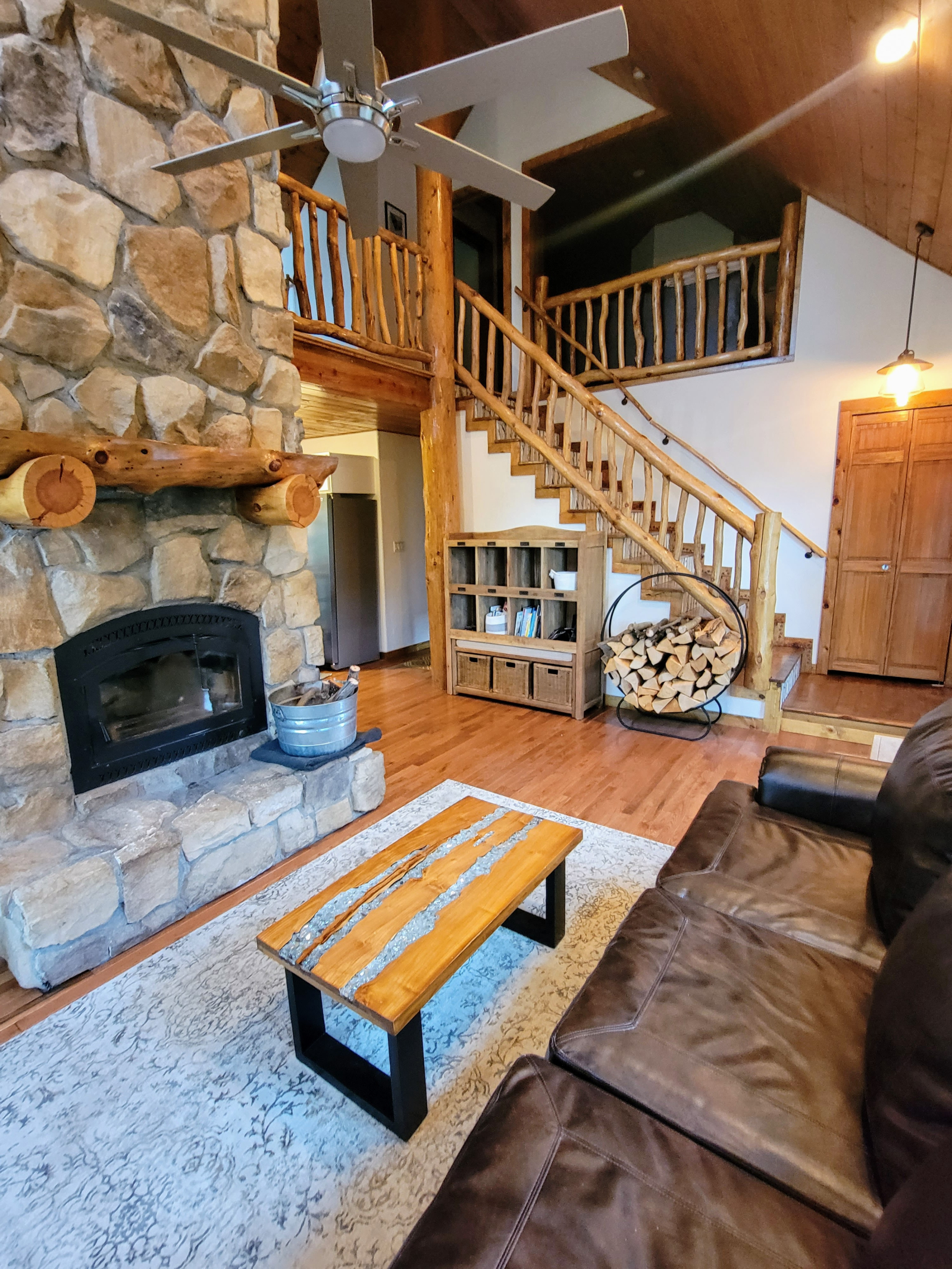 VIE INTÉRIEURE : TV avec Amazon Firestick (pour diffuser des émissions pré-téléchargées à partir de vos appareils), lecteur DVD + collection de DVD et câble HDMI, cheminée à bois, livres et jeux de société. Le sous-sol (presque, mais assez fini) dispose d’une table de hockey sur air et d’une table de shuffleboard ! Veuillez noter que la seule télévision de la cabine se trouve dans le grenier près de la grande chambre en mezzanine (et ouverte), il est donc recommandé que quiconque est susceptible de rester éveillé le plus tard à regarder la télévision dorme dans cette pièce voisine.