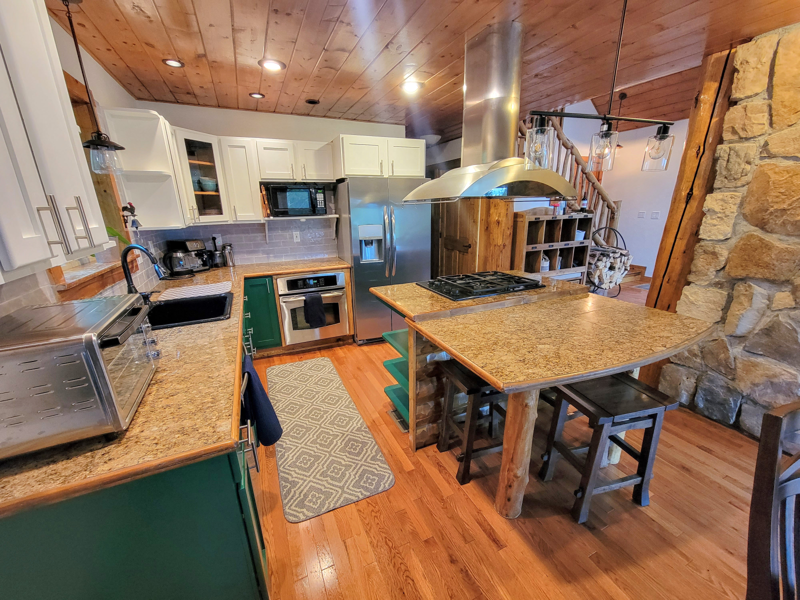 Une véritable expérience de montagne avec une vue infinie sur les trembles colorés et les vues panoramiques. Cette cabane de 3 chambres est dotée d’une cuisine ouverte et d’un salon avec des plafonds voûtés et des poutres apparentes. Dirigez-vous vers une immense terrasse enveloppante pour profiter du soleil et de la vue. Il y a trois chambres (2 lits queen, 2 lits jumeaux superposés et 1 lit king) et deux salles de bains (une douche en pierre avec pomme de pluie et une baignoire sur pattes avec pomme de douche), ainsi qu’un salon et un coin télévision en mezzanine. Le sous-sol est actuellement non aménagé, mais dispose d’une laveuse/sécheuse, si nécessaire. Vous trouverez toute la paix et la joie que vous recherchez lors de cette escapade en montagne.