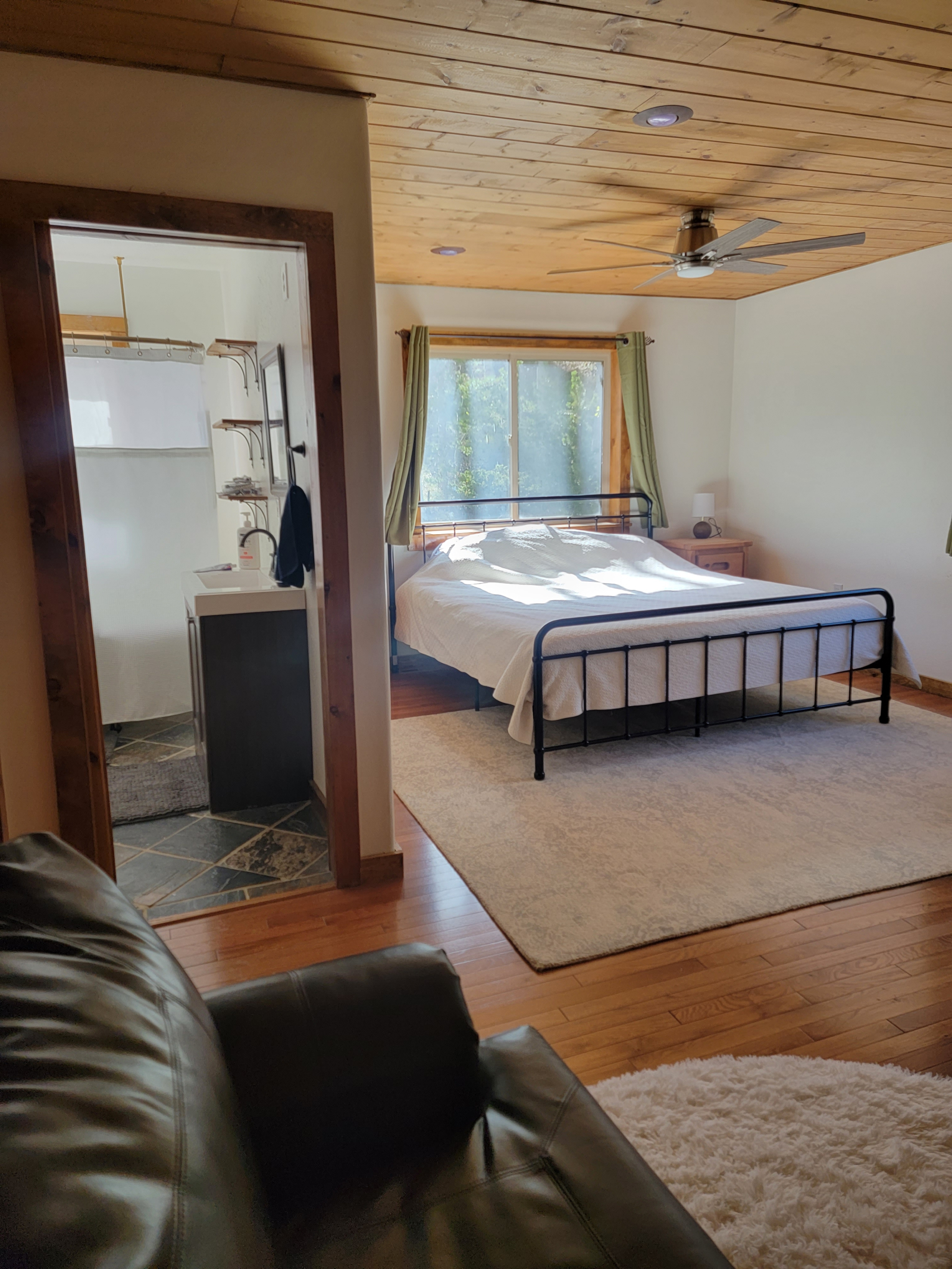Chambre 1 : Lit King (cette chambre en mezzanine a une porte mais est autrement ouverte pour donner sur le salon - personne ne peut vous voir dans le lit, mais ce n’est techniquement pas entièrement fermé)