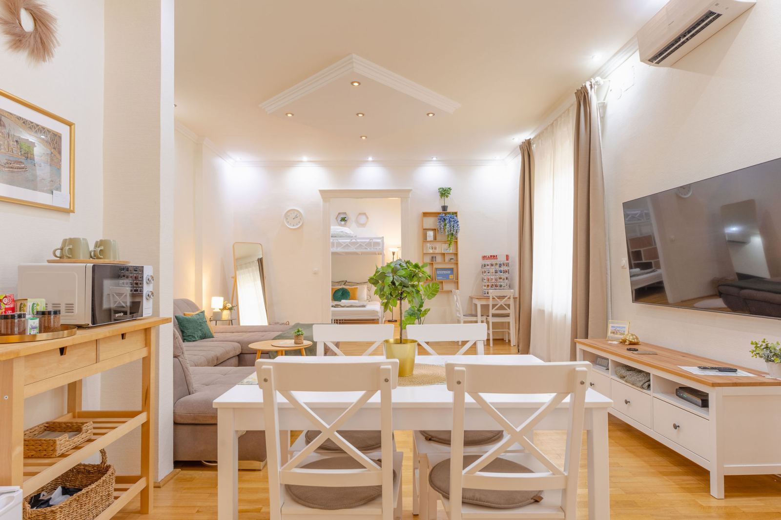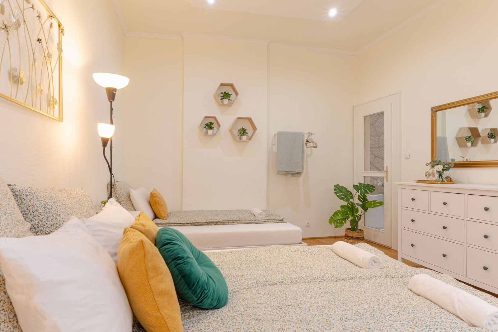 Bienvenue à l’Oasis du centre de Budapest, votre chez-soi parfait au cœur du quartier historique des palais de Budapest. Idéalement situé près de la Grande Synagogue, du bar Szimpla Kert Ruin et de l’intersection d’Astoria, il y a beaucoup à faire et à voir en une courte promenade. Avec l’arrêt de bus Urania à quelques pas de notre porte, notre emplacement rend l’exploration de la ville facile. Que vous soyez ici pour des vacances en famille ou pour un séjour prolongé en télétravail, notre espace est conçu pour répondre à vos besoins.