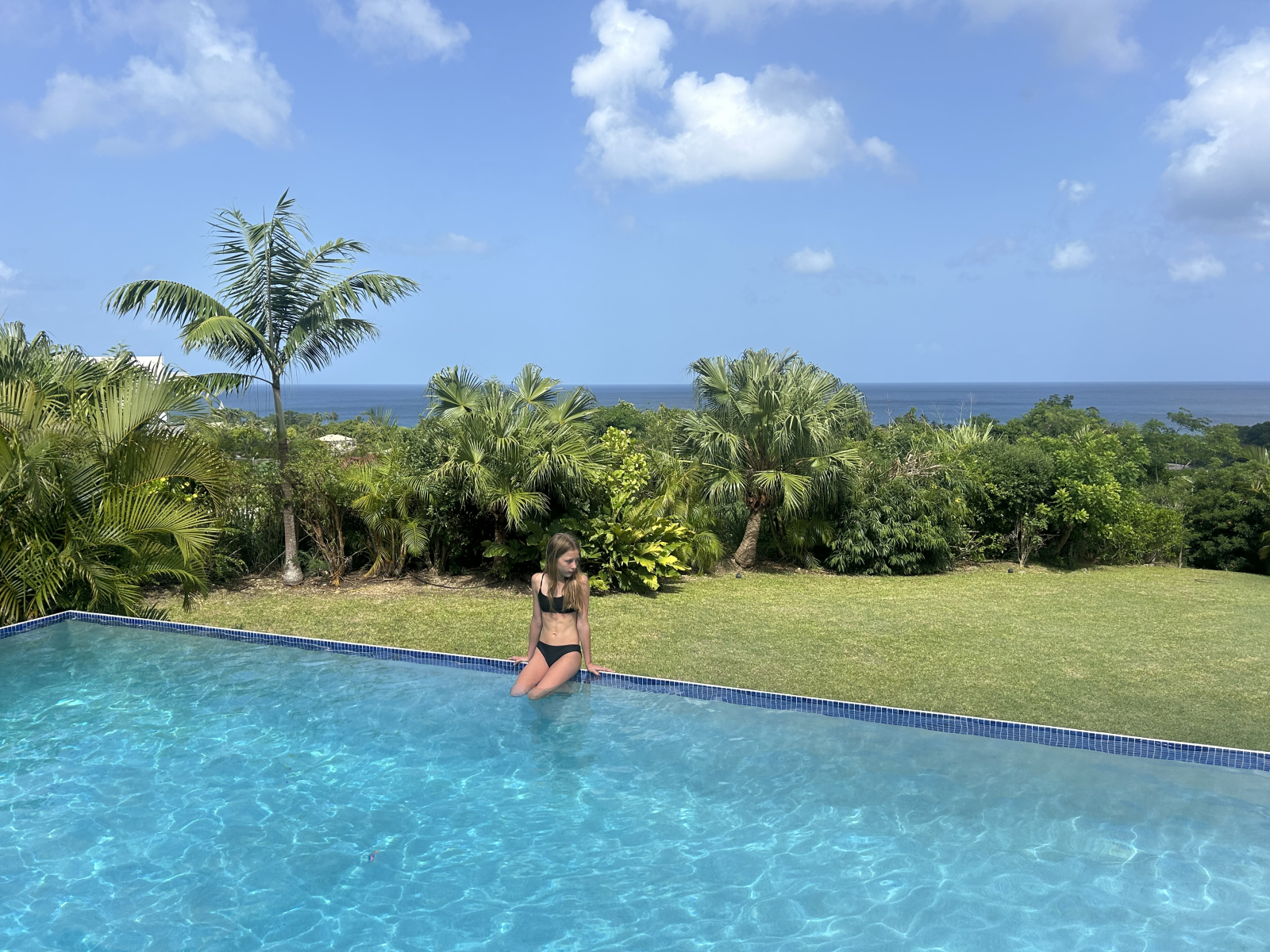 Notre maison nouvellement achetée, Azure Horizon sur la côte ouest de la Barbade, est une retraite de vacances offrant des vues panoramiques spectaculaires sur la côte de platine à couper le souffle. Conçue à la fois pour la détente et le plaisir en famille, la villa comprend une chambre pour adolescents et jeunes adultes avec quatre lits (deux lits superposés), un coin salon TV confortable et une salle de bains privative. Avec un total de quatre chambres avec salle de bains, un salon spacieux et de vastes patios couverts qui s’ouvrent sur une grande piscine privée, la villa capture l’essence de la vie élégante des Caraïbes.
