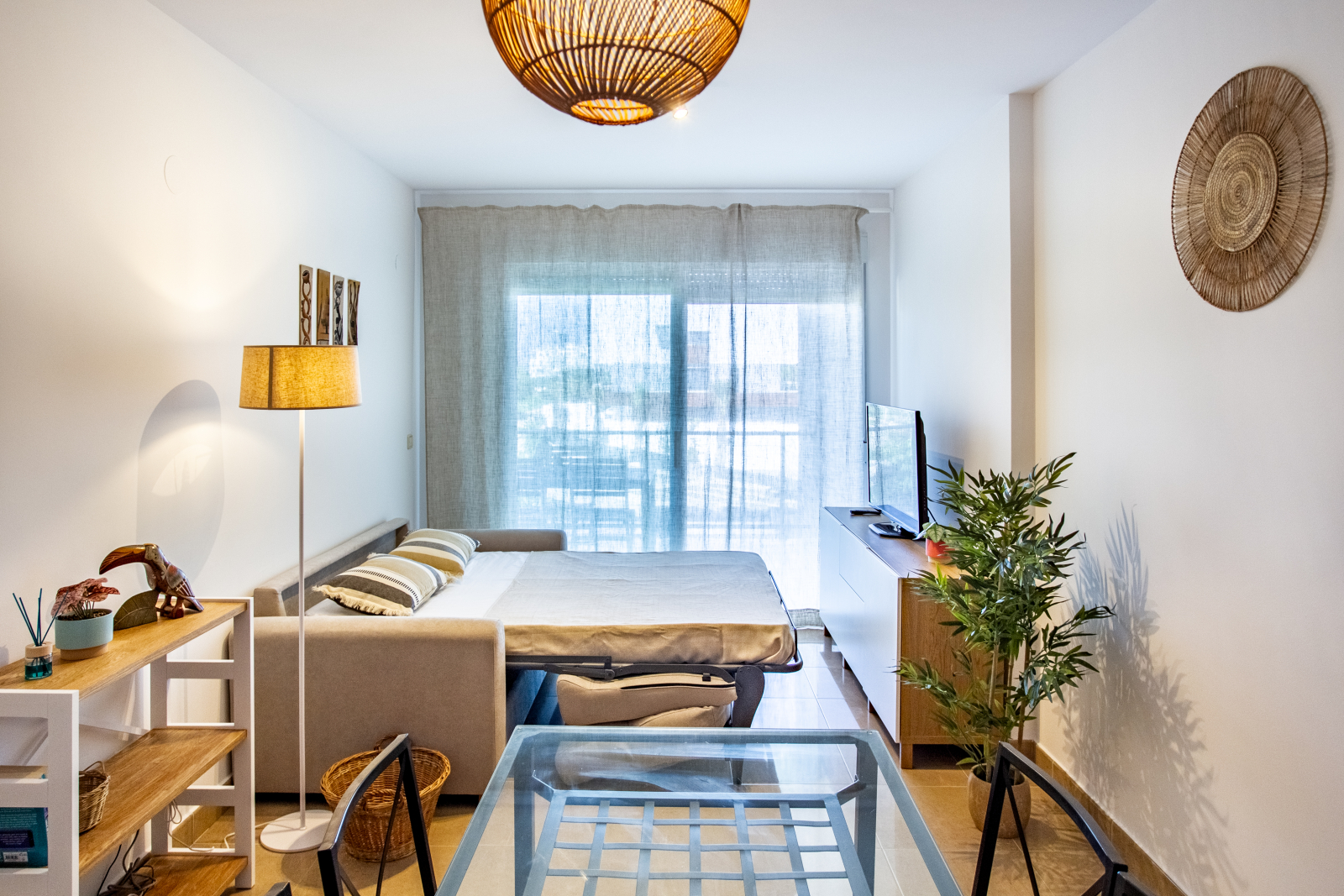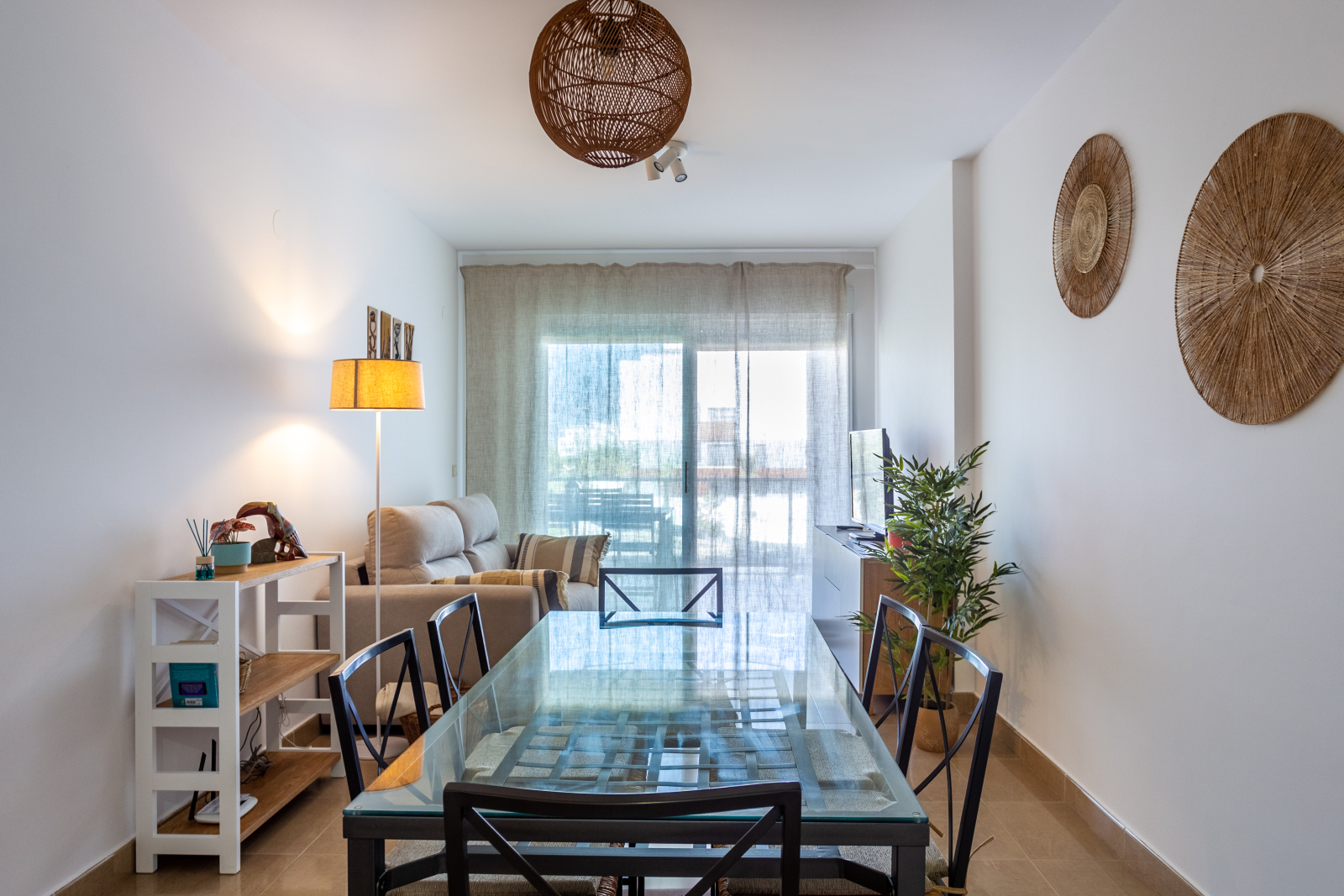 Notre appartement est situé dans la paisible région du golf Oliva Nova, entouré par la nature et de beaux paysages. Il est très lumineux et dispose d’une terrasse spacieuse où vous pourrez profiter de couchers de soleil à couper le souffle sur le golf et les montagnes.