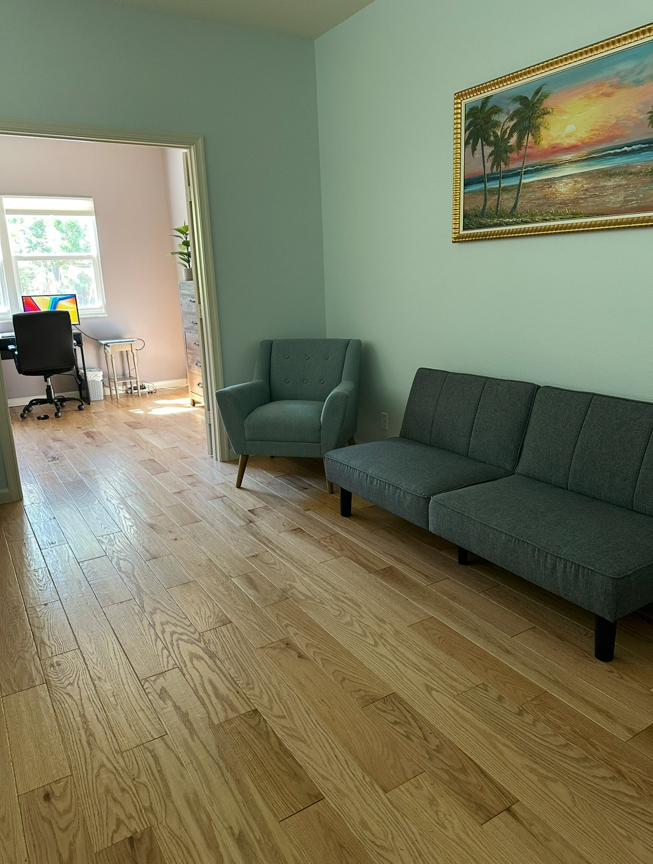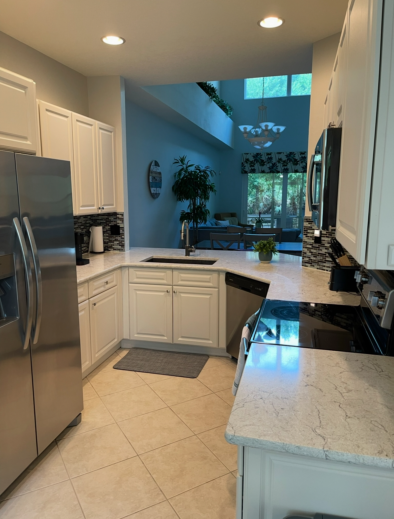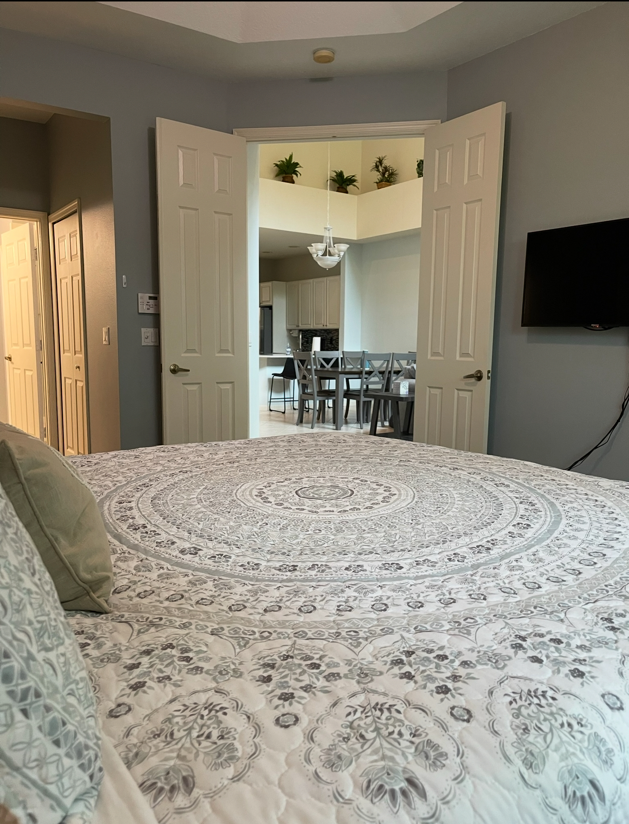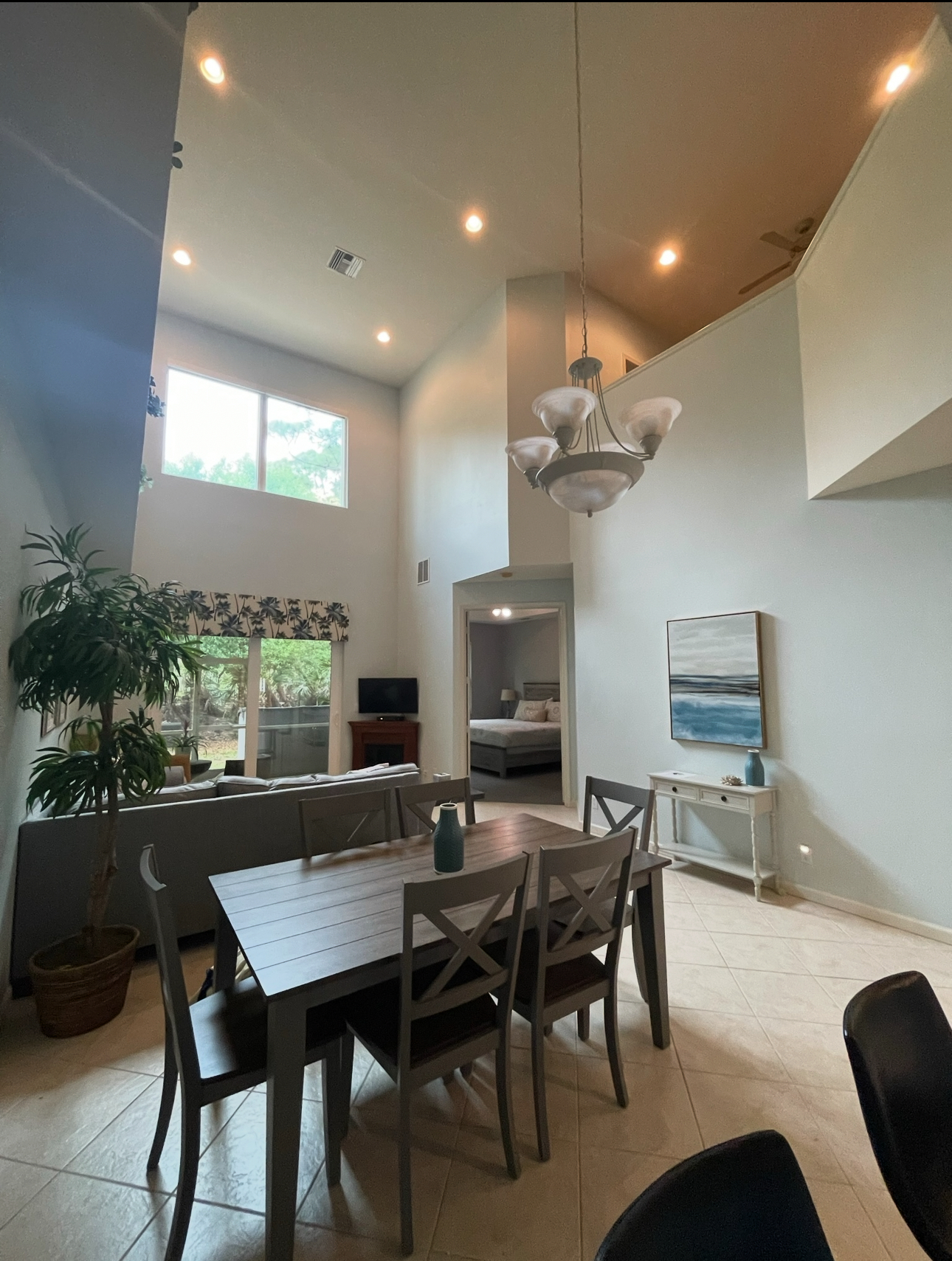 Notre maison est très confortable pour une famille ou des couples. La chambre principale se trouve au premier étage et dispose de tout ce dont vous avez besoin sans utiliser d’escaliers. Le deuxième étage dispose de deux chambres supplémentaires et de notre bureau qui peut également être utilisé comme chambre à coucher. Il y a une aire de jeux à l’étage avec un système de jeu et un assortiment de jouets et de livres pour les enfants. Il y a un patio arrière fermé qui fait face au magnifique feuillage tropical de la Floride