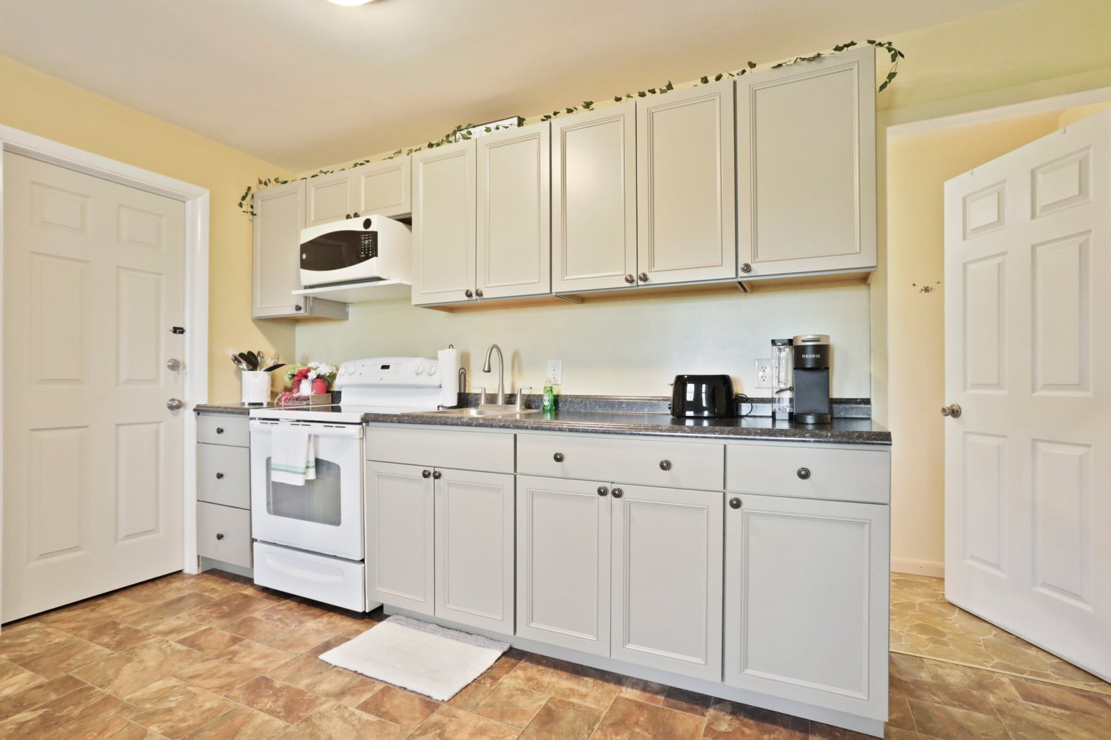 Vous entrerez par votre entrée privée le long de l’allée, avec seulement trois marches jusqu’à la porte.