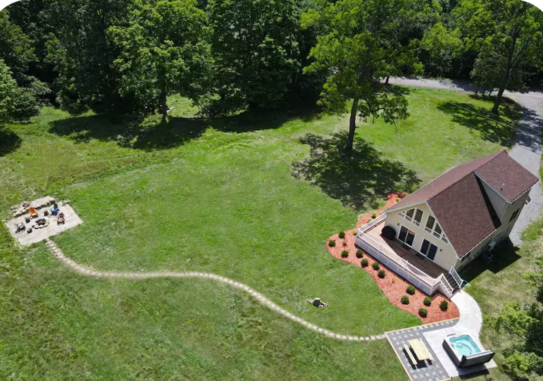 Twin Creeks a été construit en décembre 2023, situé en privé sur 32 acres qui était autrefois un terrain de camping des Girl Scouts. Il reste encore une cabane d’origine de ce campement sur la propriété. Il y a un jacuzzi pour 7 personnes, un WiFi à fibre optique et un coin foyer séparé. Ce que nous aimons vraiment, c’est observer la faune – cerfs, renards, tamias, dindons, et tant d’espèces d’oiseaux. Le ciel nocturne est aussi incroyable pour observer les étoiles.