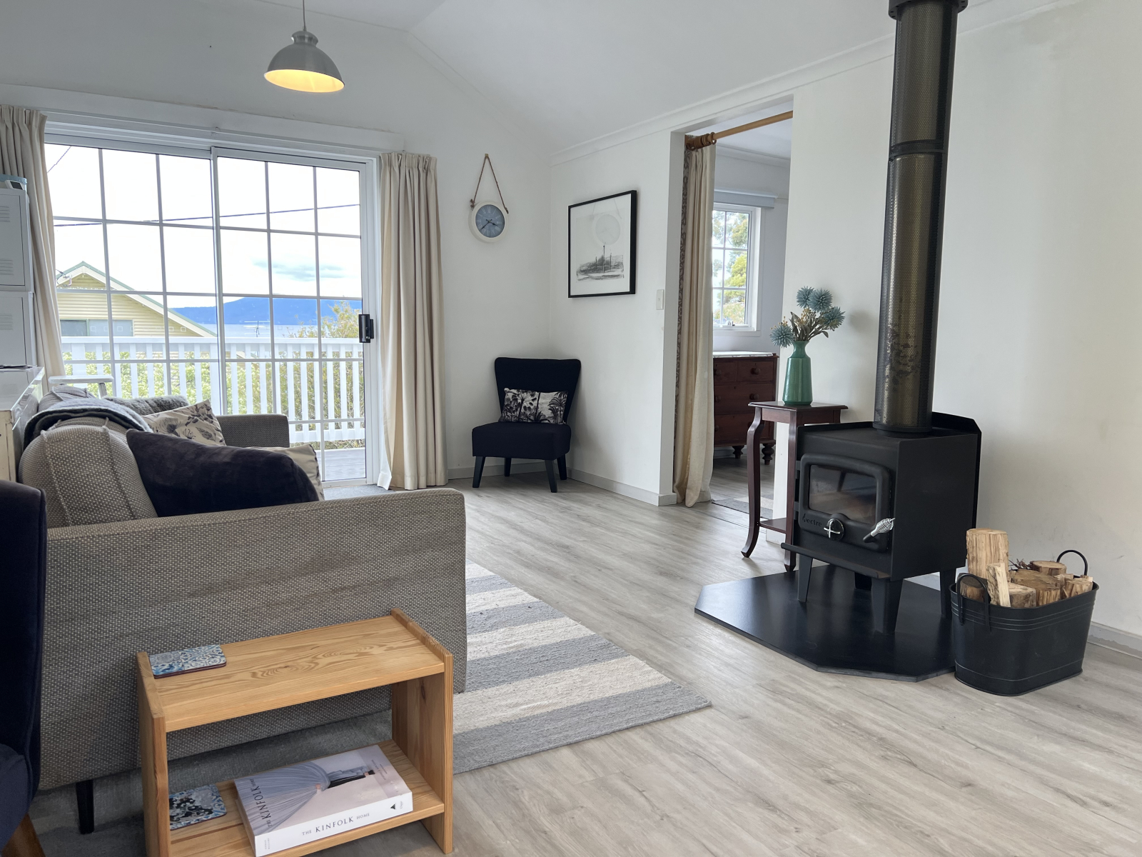 C’est l’échappatoire tasmanienne parfaite ! La maison a cette ambiance classique de cabane côtière : un soleil doux et lumineux, une vue panoramique sur l’eau bleue et une chaleur vécue qui vous fait instantanément vous sentir chez vous. C’est confortable sans être exigu, simple sans être nu, mais si agréablement confortable que vous n’aurez jamais envie de partir !