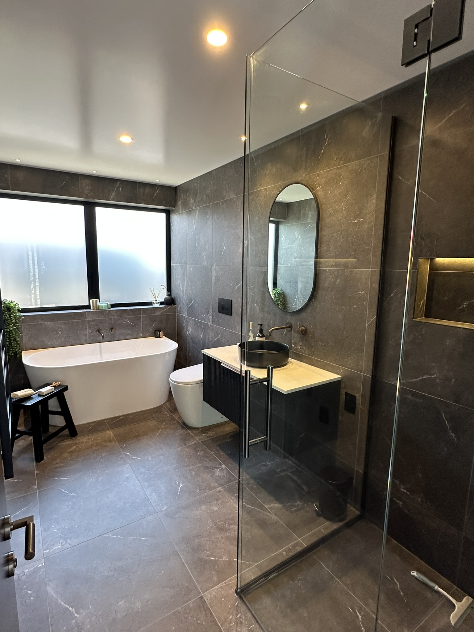 Les salles de bains sont modernes et finies de haut niveau, offrant une excellente pression d’eau, un confort sous le sol et une esthétique paisible.