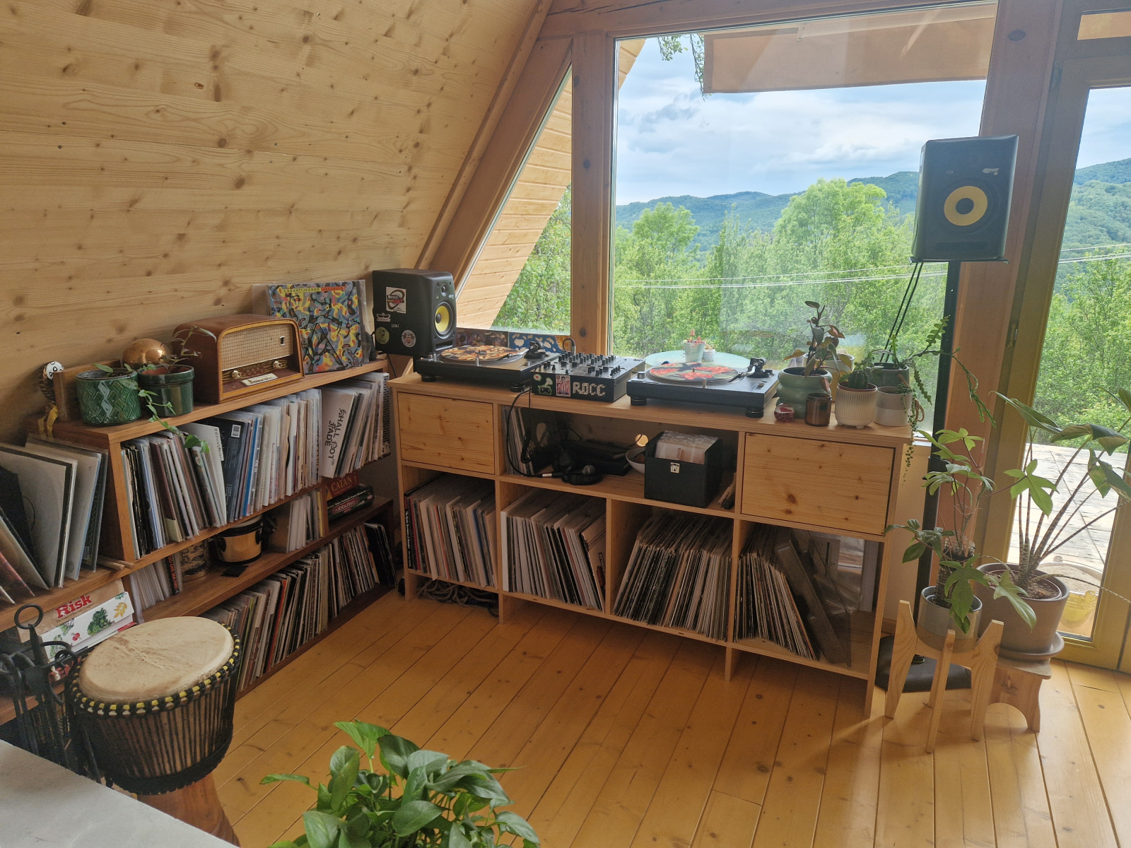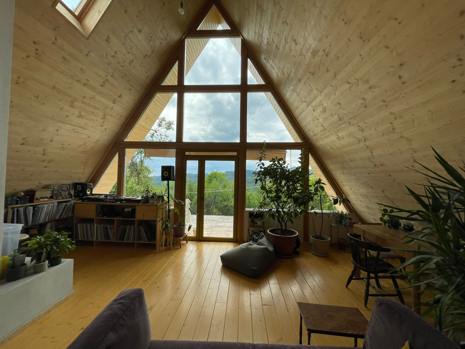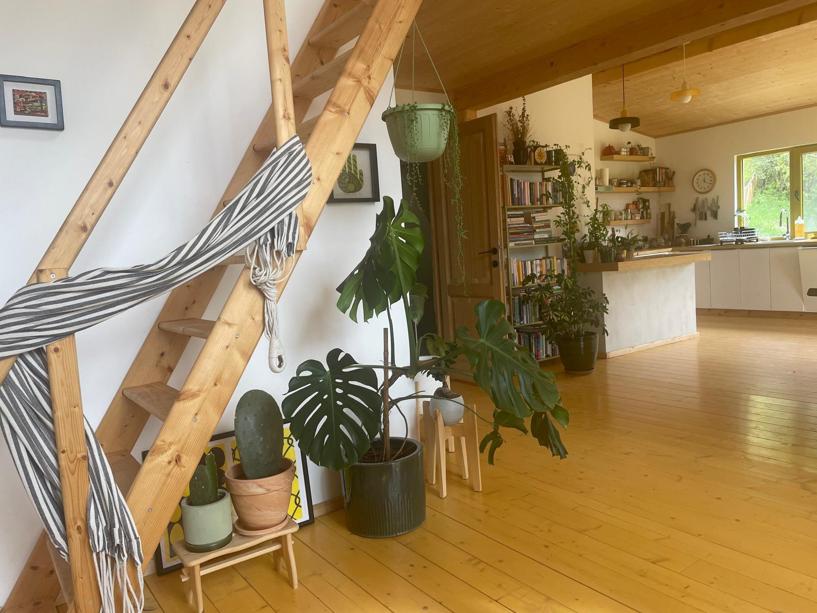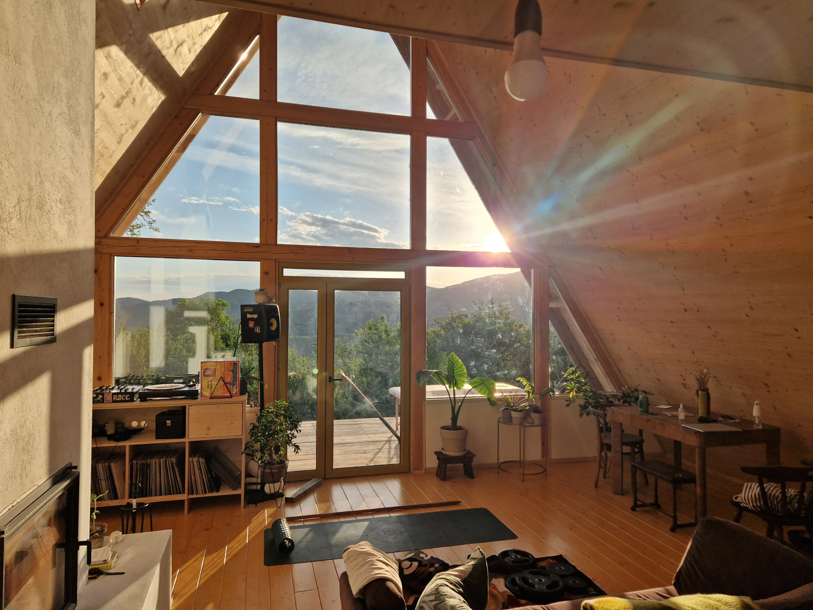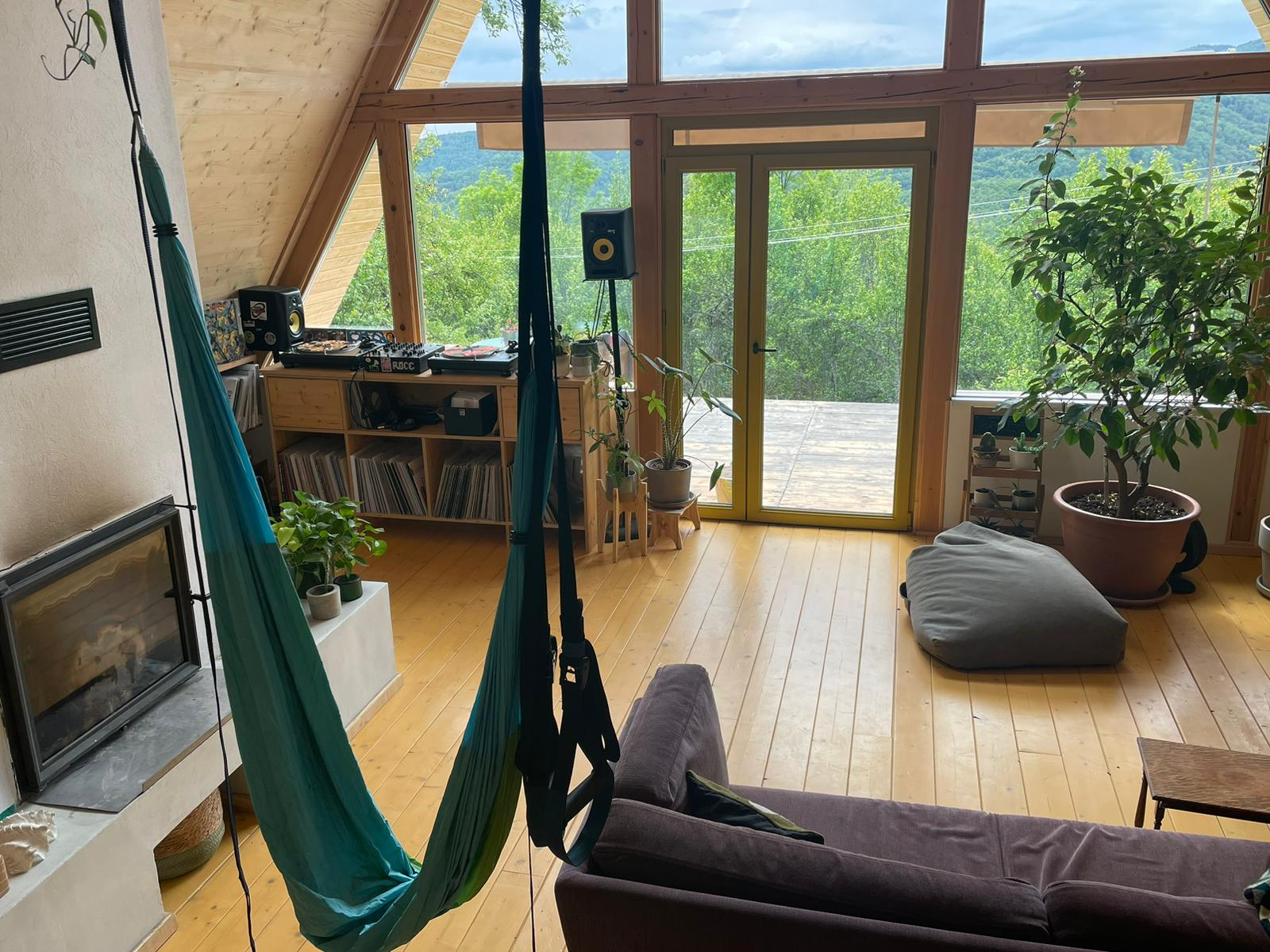 Nous avons une grande cheminée dans la maison que nous utilisons quotidiennement, et beaucoup de bois. Il y a aussi plus de 100 plantes ainsi qu’un excellent système sonore et une collection de disques.