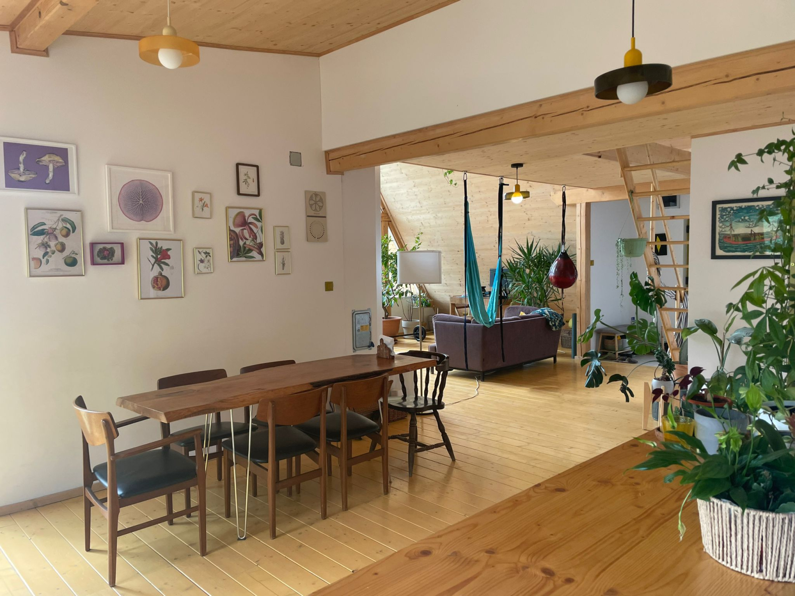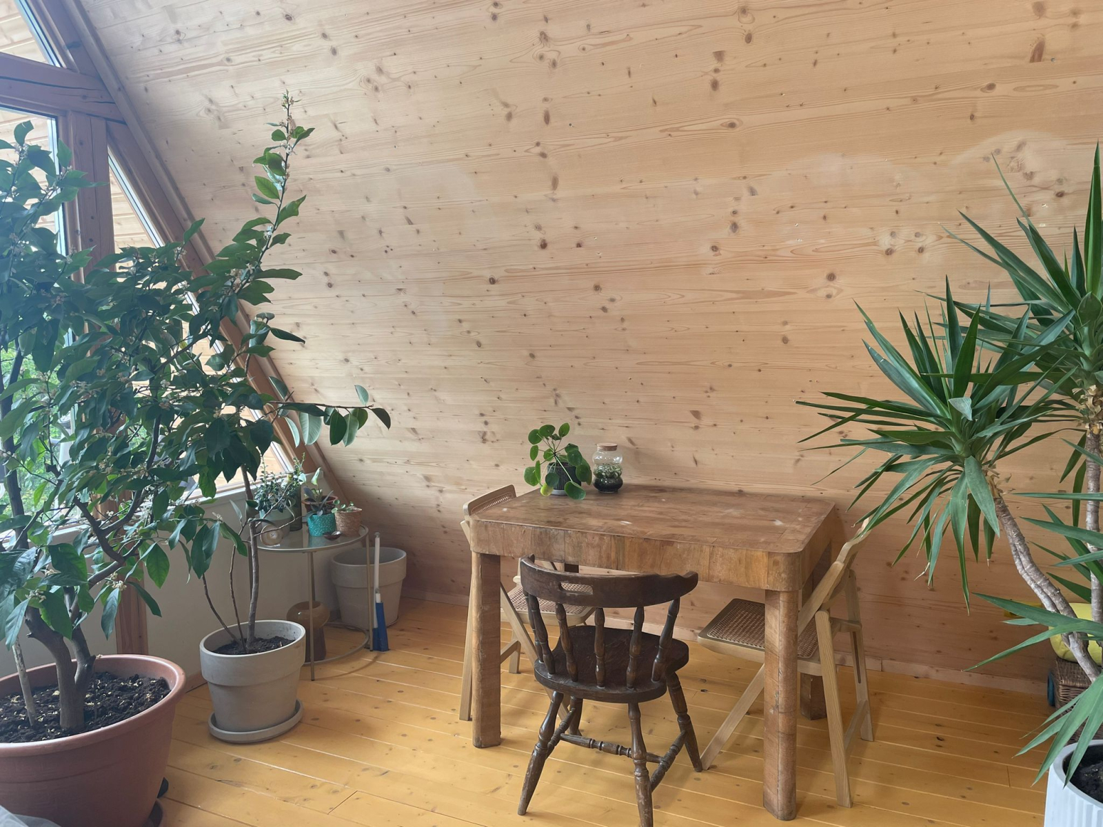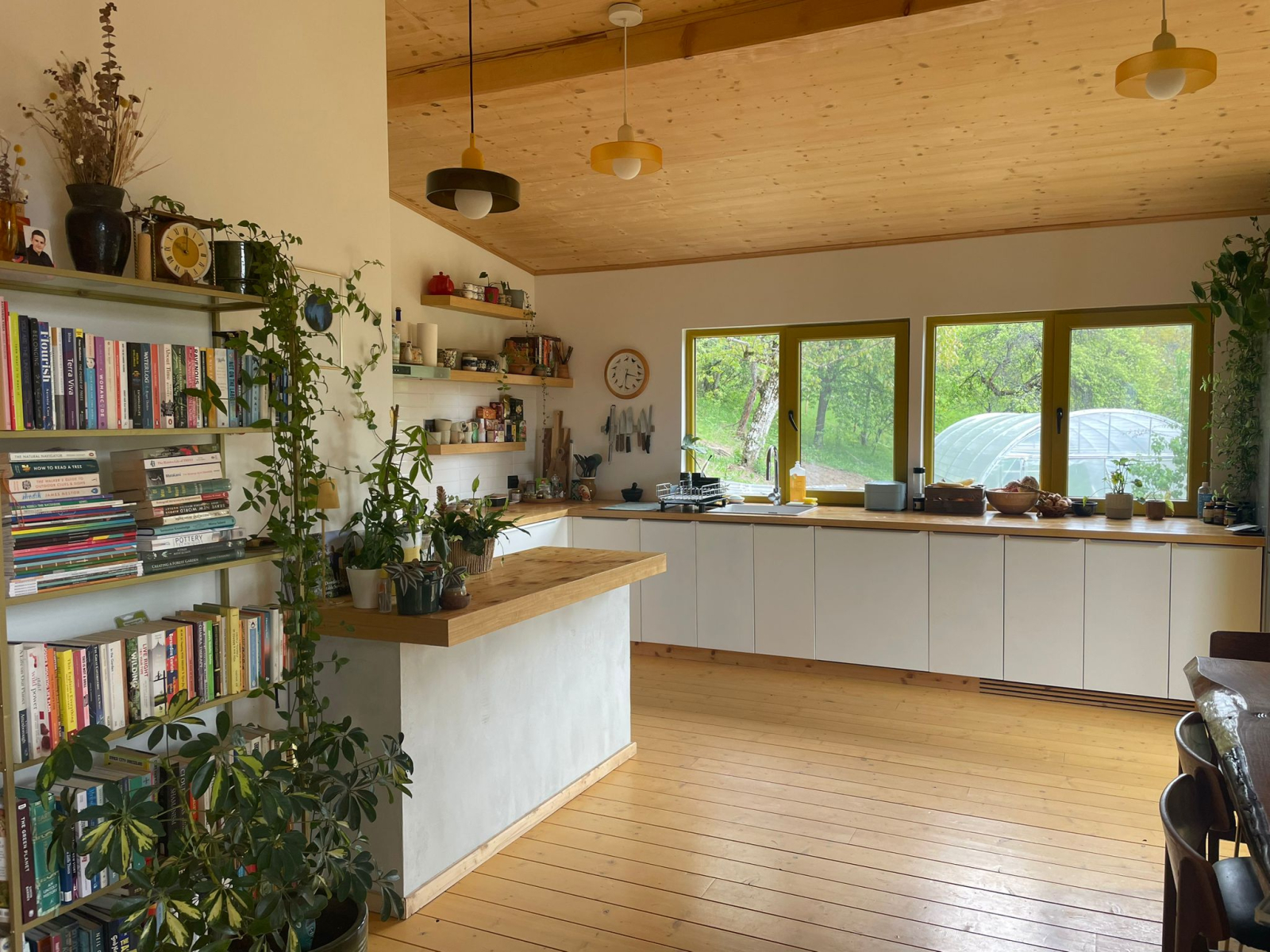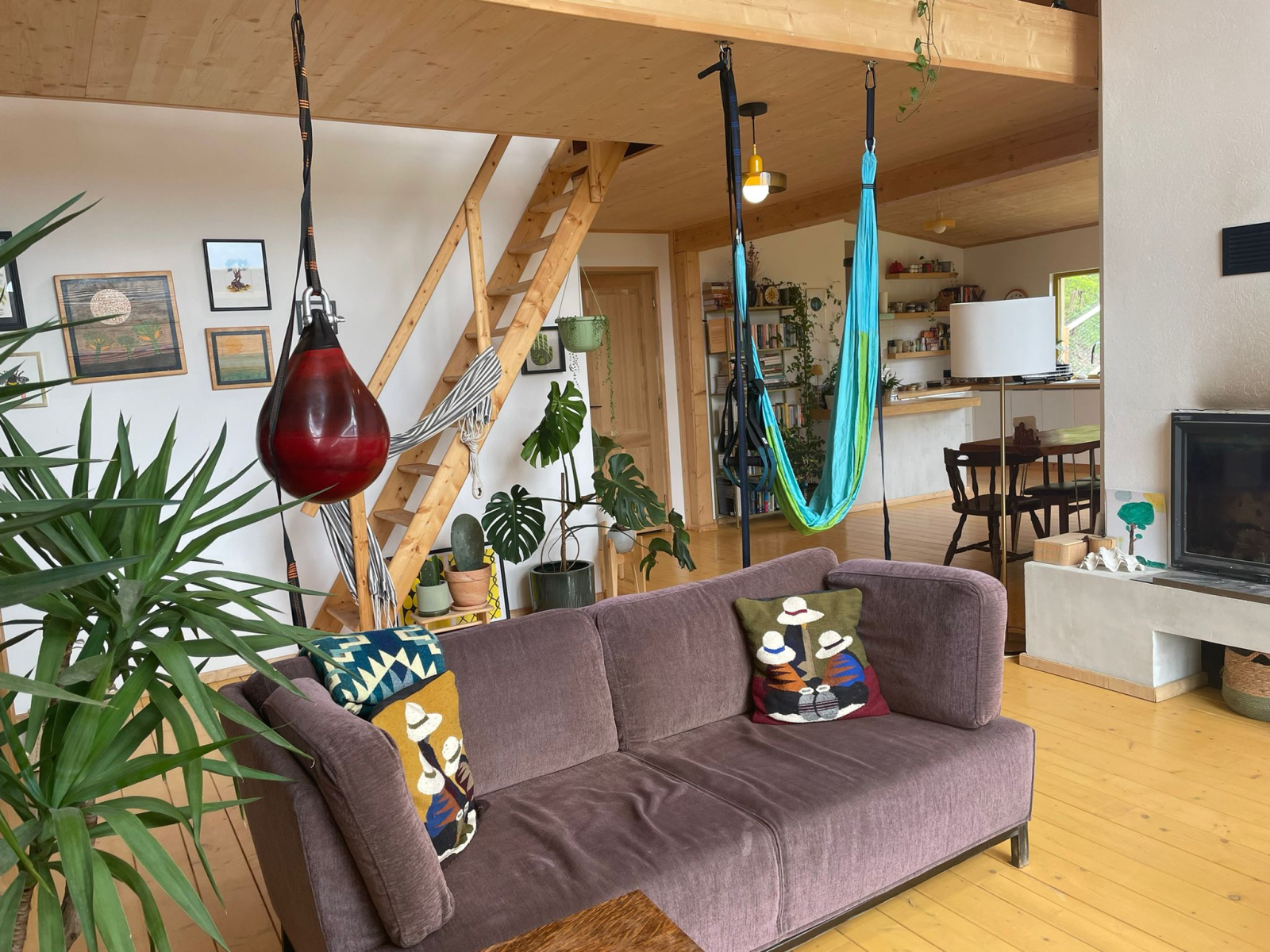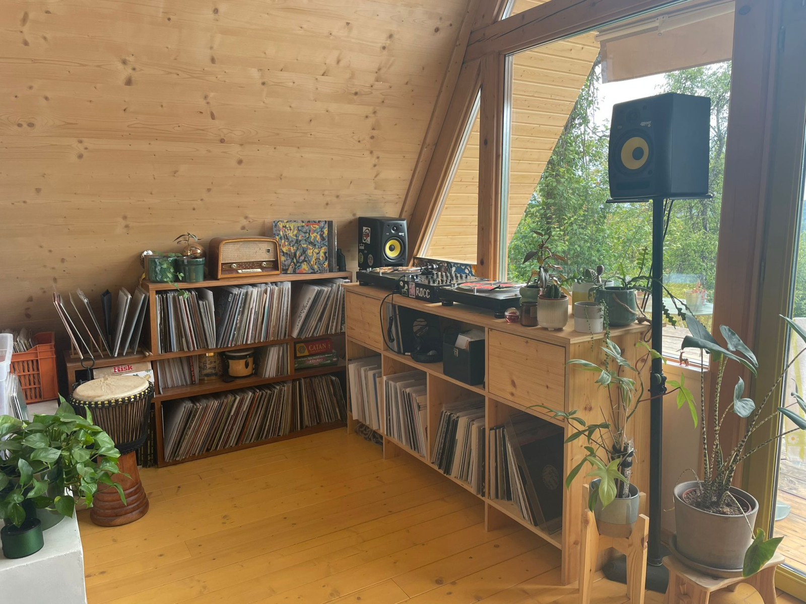 Nous avons une grande cheminée dans la maison que nous utilisons quotidiennement, et beaucoup de bois. Il y a aussi plus de 100 plantes ainsi qu’un excellent système sonore et une collection de disques.