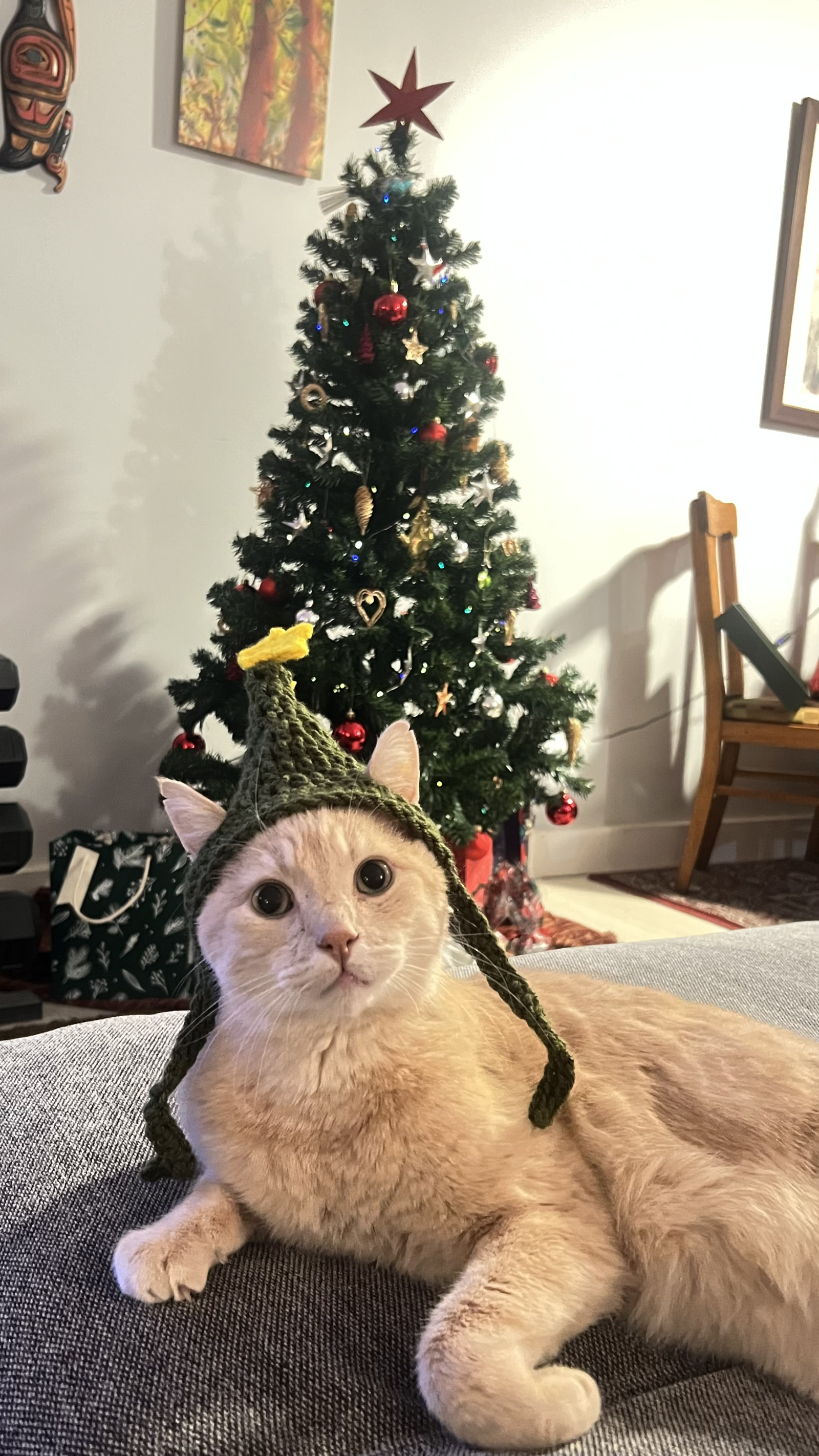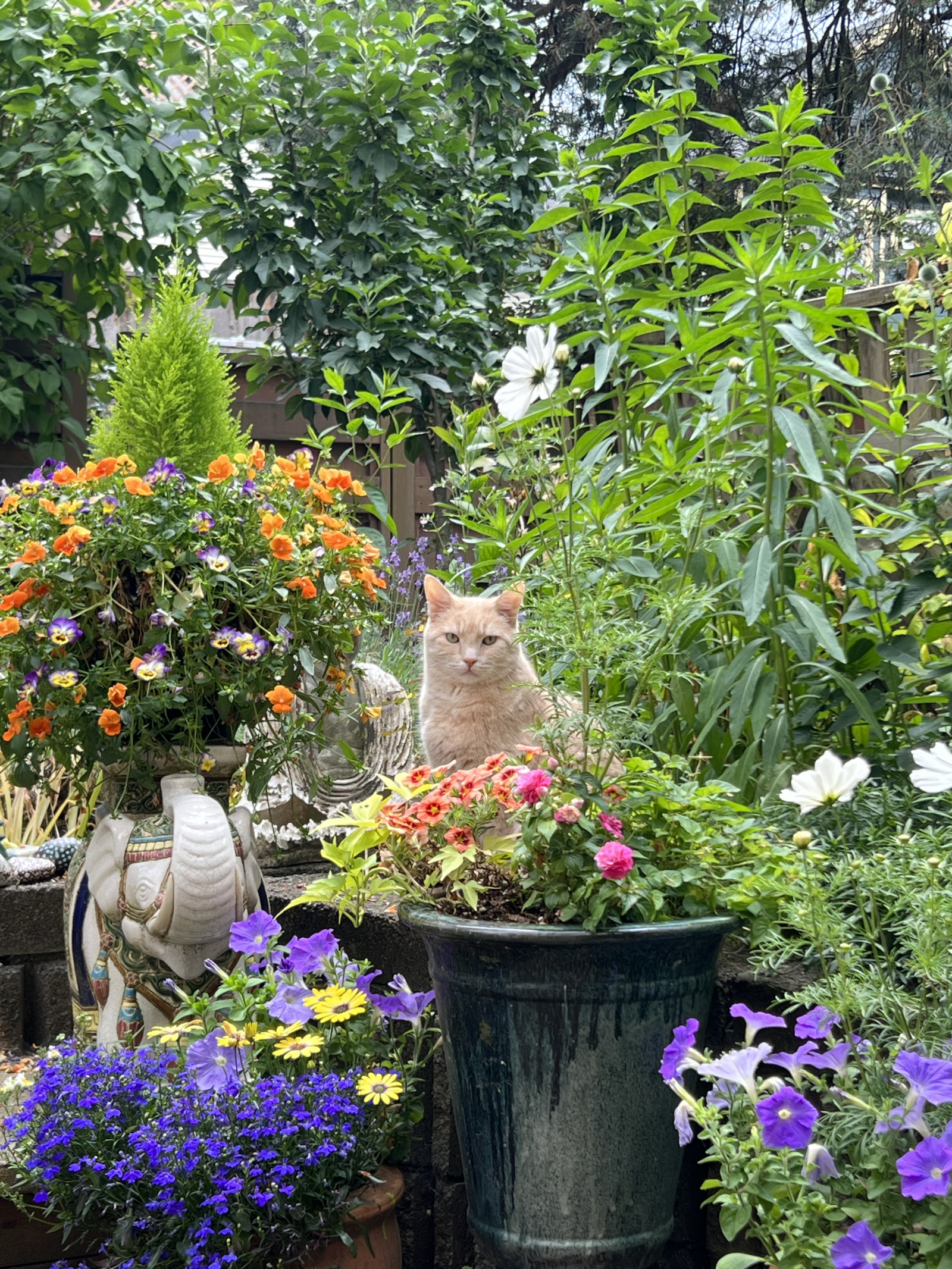 Nous avons un chat roux très sociable et facile à soigner. Et un petit aquarium.