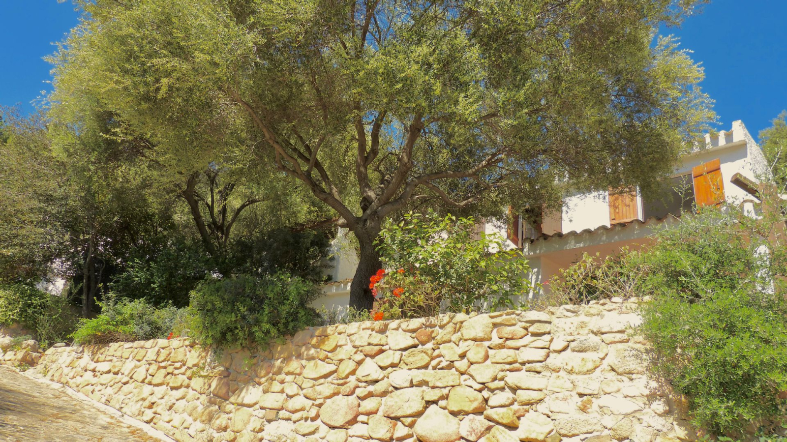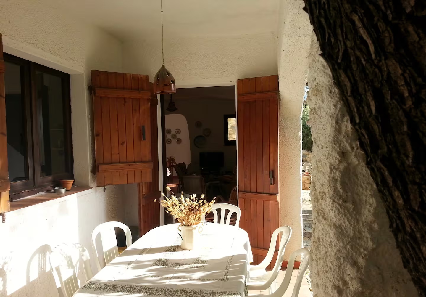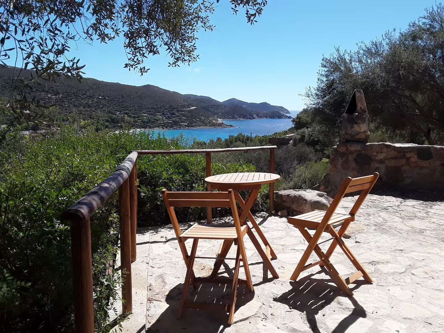 Maison sarde dans la nature méditerranéenne avec vue sur la mer