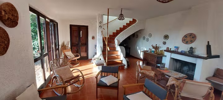 De plus grands supermarchés et plus de boutiques se trouvent à Villasimius (20 minutes en voiture) ou Cagliari (40 minutes). Il est recommandé d’avoir une voiture, bien qu’un bus s’arrête à l’entrée du quartier résidentiel — à environ 20 minutes à pied de la maison.