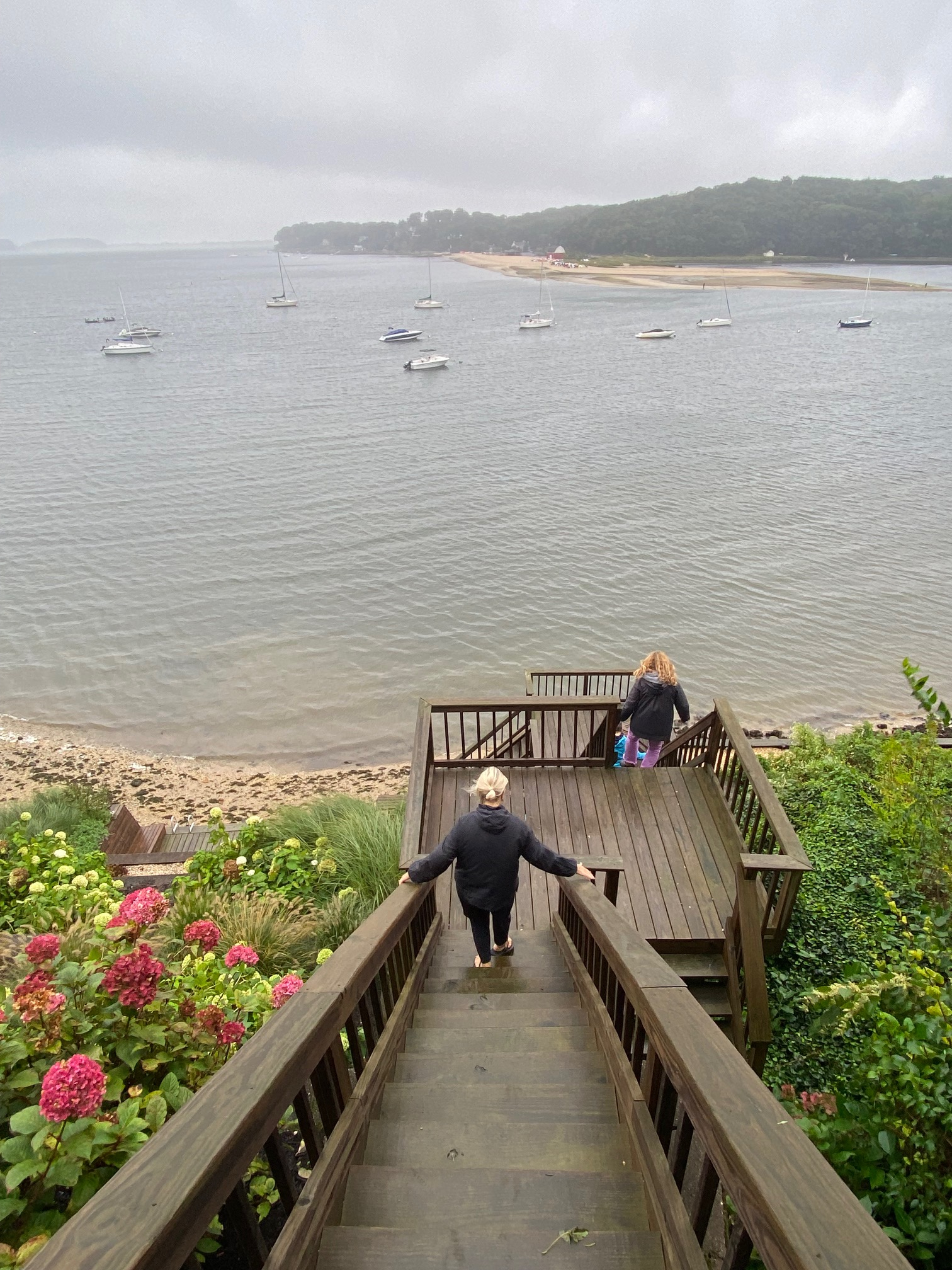 Maison de plage du milieu du siècle construite en 1938 et restaurée avec amour, avec une atmosphère contemporaine et aérée et un aménagement ouvert. La maison de plage est de 1850 pieds carrés et s’étend sur 3 niveaux - 4 chambres et 2,5 salles de bains, elle peut accueillir 6 à 8 personnes. Le niveau principal a un agencement aéré ouvert, 2 espaces de vie reliés par une cheminée double face, une salle à manger et une cuisine. La cuisine, la salle à manger et le salon offrent une vue à 180 degrés sur l’eau et un accès à la terrasse enveloppante. La cuisine est équipée d’un réfrigérateur, d’une cuisinière, d’un lave-vaisselle et d’un micro-ondes. Planchers de bois franc partout, sauf le carrelage dans la cuisine et la salle à manger.