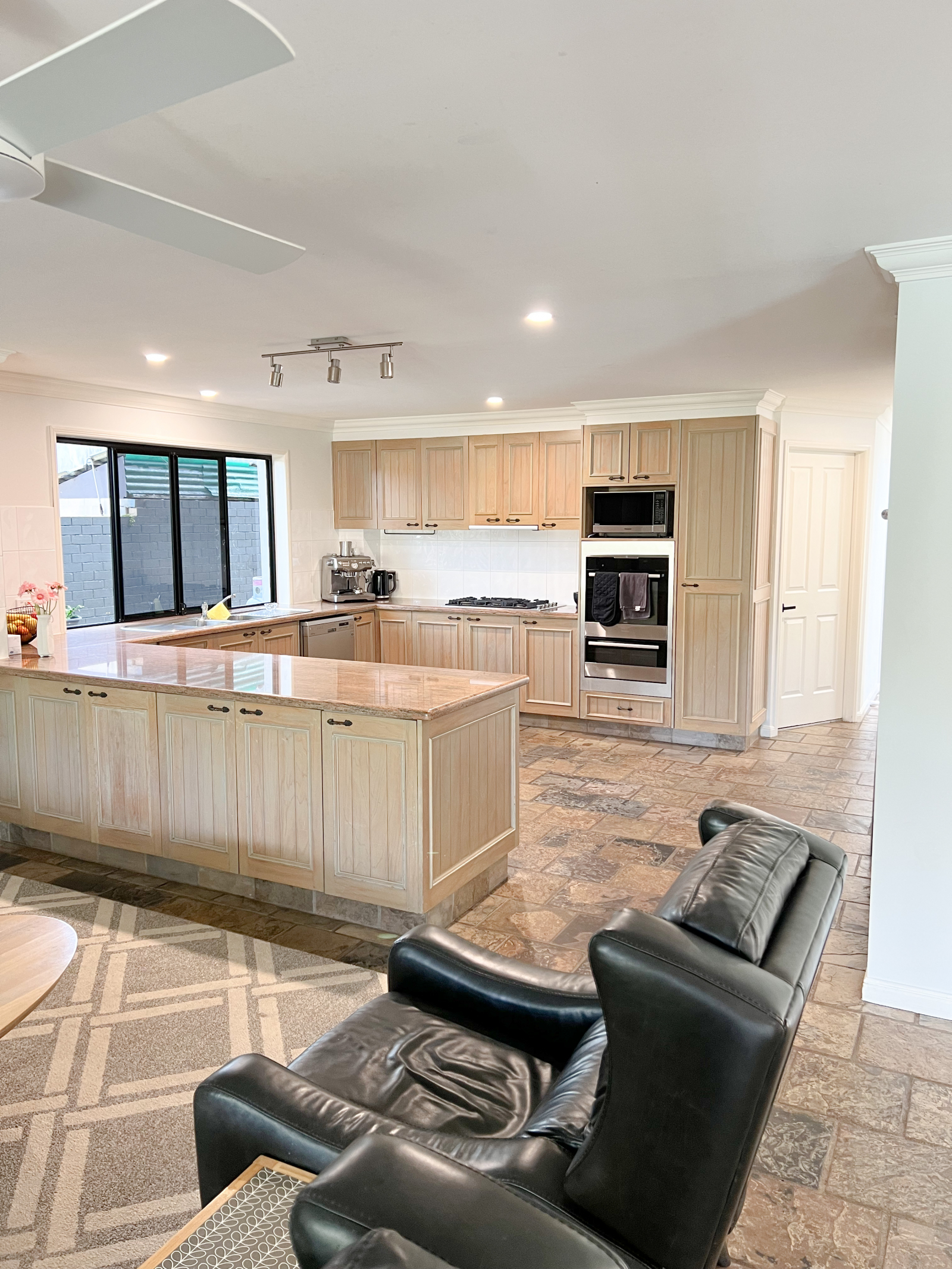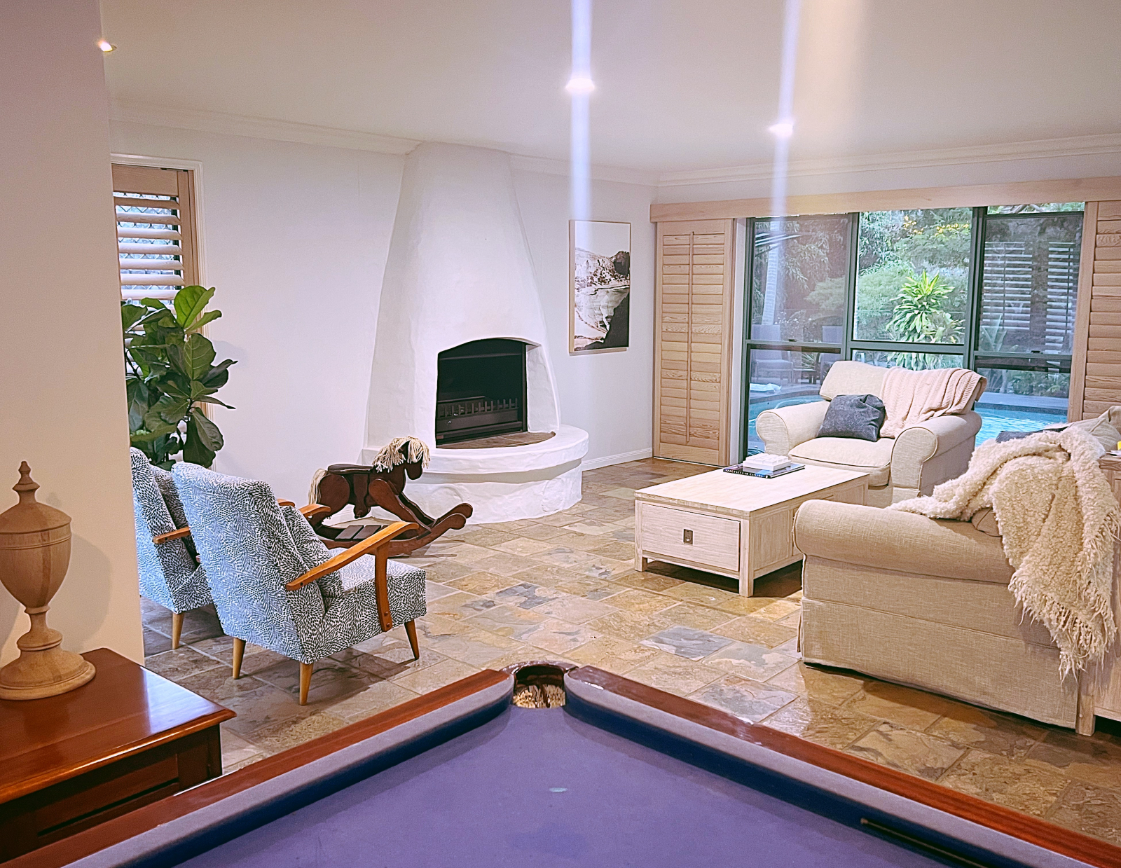 La nostra casa è perfetta per intrattenere gli ospiti. Abbiamo una grande cucina open space, che si affaccia sul nostro salotto informale e sulla zona di intrattenimento all'aperto. Abbiamo una cucina esterna coperta con vista su una grande piscina di acqua salata. All'interno abbiamo un tavolo da biliardo e un camino al piano inferiore, oltre a una camera da letto matrimoniale e un bagno. Il nostro tavolo da pranzo si estende per ospitare comodamente 8 persone. Tre camere da letto con aria condizionata sono al piano superiore, insieme a due bagni. Tutte le camere da letto sono dotate di tende oscuranti. La camera padronale ha un letto king size e la seconda camera ha un letto matrimoniale. Si prega di notare che la terza camera ha due letti per bambini che non sono adatti agli adulti. Abbiamo anche un letto a rotelle per bambini nella stanza dei bambini. Pertanto possiamo ospitare comodamente fino a 5 adulti e 3 bambini.