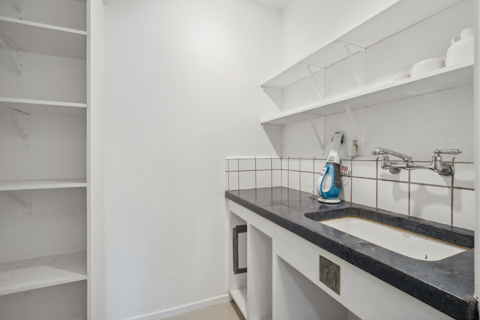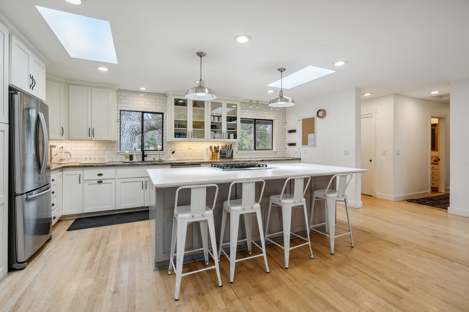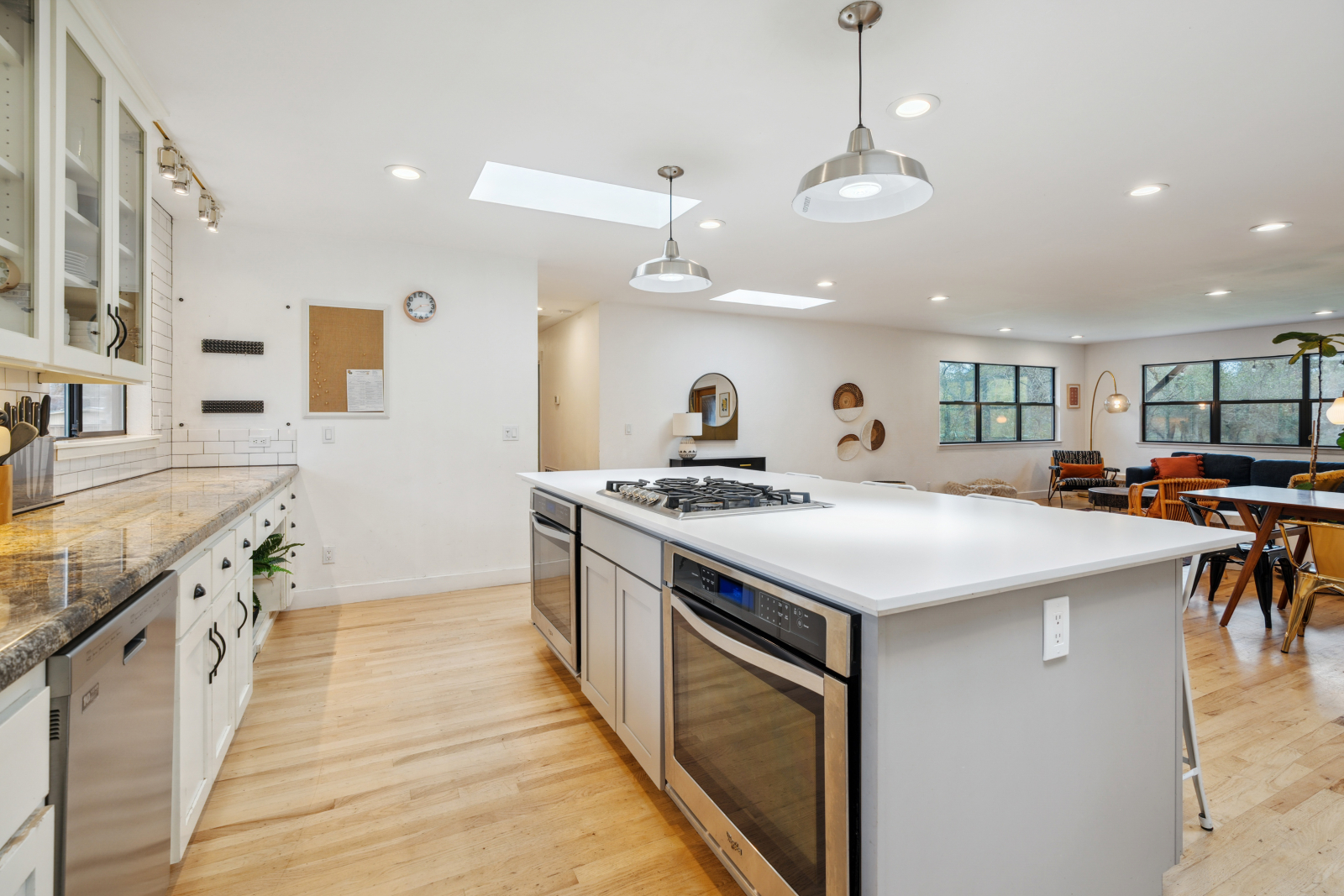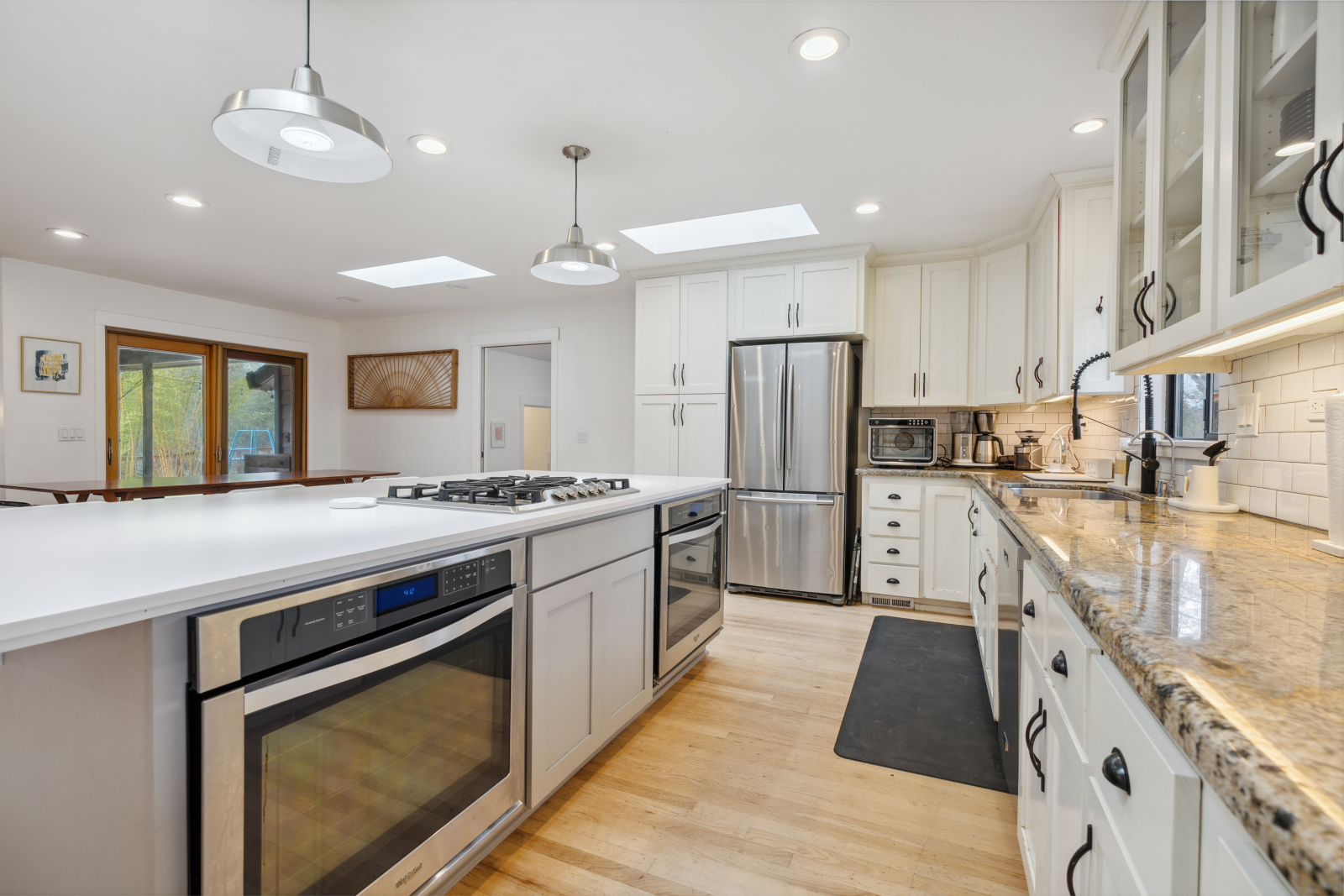 Cucina con frigorifero, doppio forno, piano cottura e filtrazione dell'acqua ristrutturata.