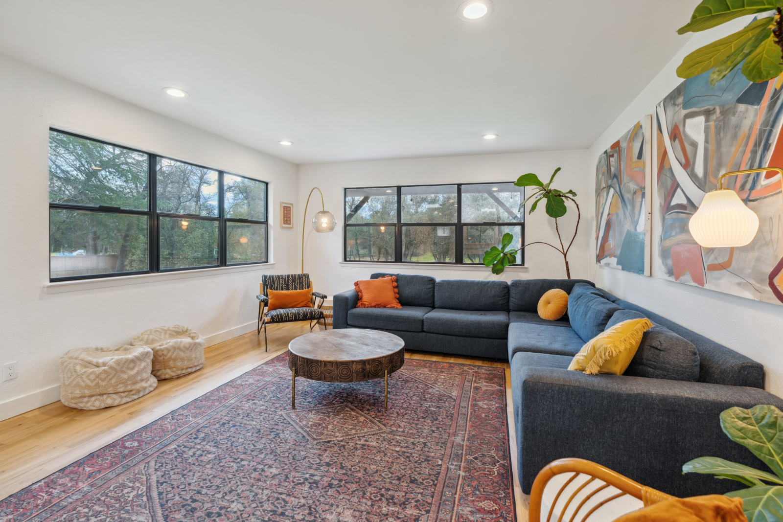 Veranda anteriore con comodi posti a sedere per gustare una tazza di caffè mattutina, ascoltare i picchi e il canto degli uccelli.