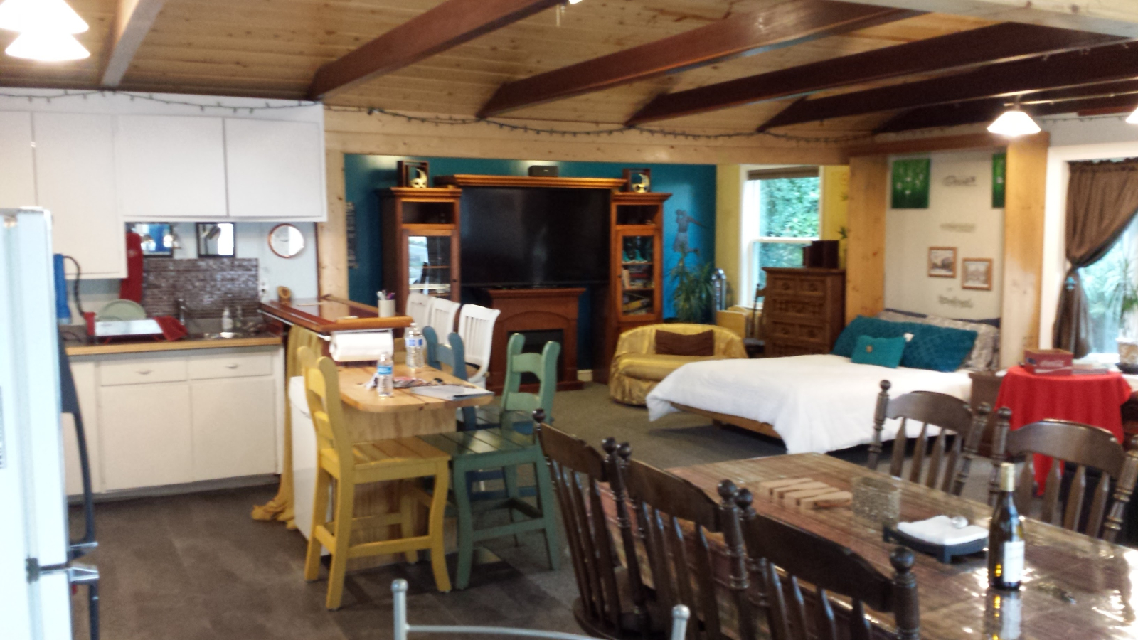 Il nostro cottage è un monolocale aperto di 800 piedi quadrati con un letto queen-size a scomparsa, un divano letto queen-size, cucina completa, bagno: doccia, wc e lavandino (senza vasca), tavolo da pranzo che può ospitare 10 persone e una TV da 70 pollici con impianto stereo collegato. Non c'è aria condizionata, poiché le temperature raramente superano gli 80 ° F, in genere solo per una o tre settimane all'inizio dell'anno.