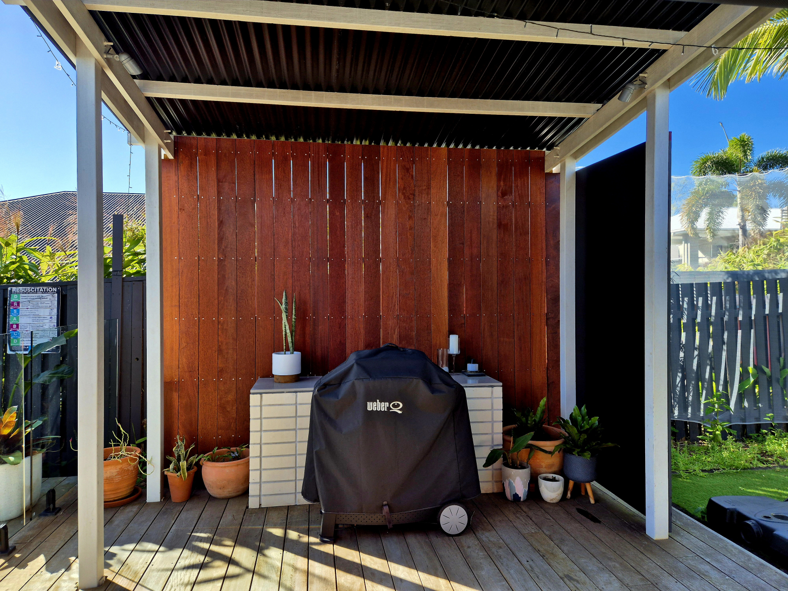 L'area esterna è incantevole per sedersi e gustare un caffè, un vino o i pasti mentre ci si rilassa a bordo piscina. Nelle notti più fresche (non che ne abbiamo molte) puoi chiudere le persiane ed è tutto coperto.