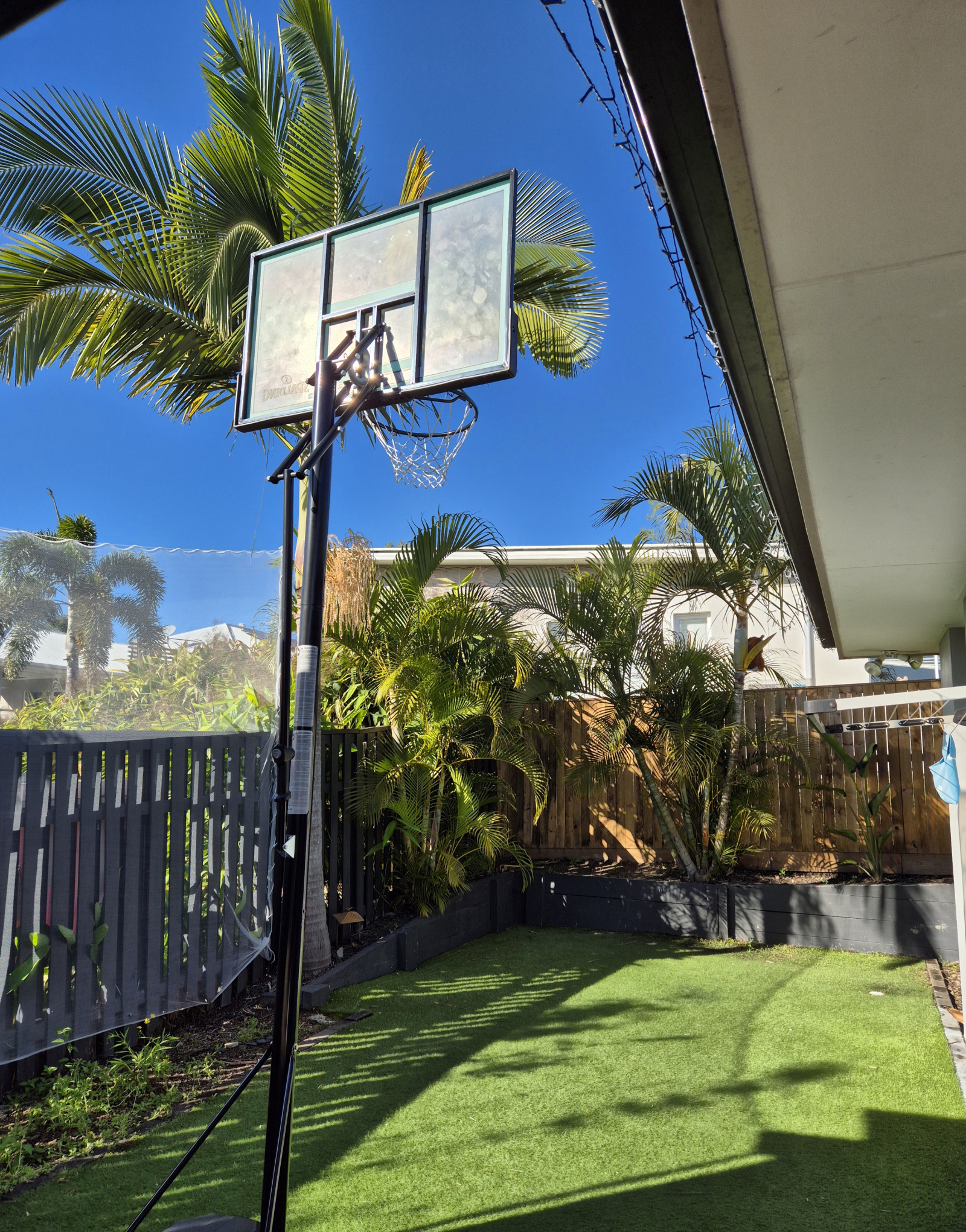 C'è spazio per i bambini per giocare a basket nel cortile o a solo 1 minuto a piedi alla fine della nostra strada c'è un grande campo da basket con campi da tennis, situato in una piccola riserva naturale.